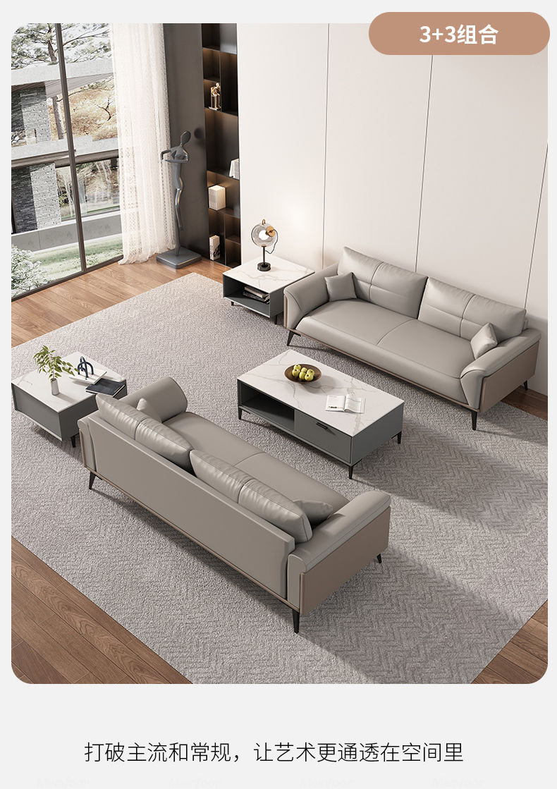 사무실 소파 가죽 현대 간단한 비즈니스 리셉션 보스 사무실 리셉션 지역 3 인 커피 테이블 조합