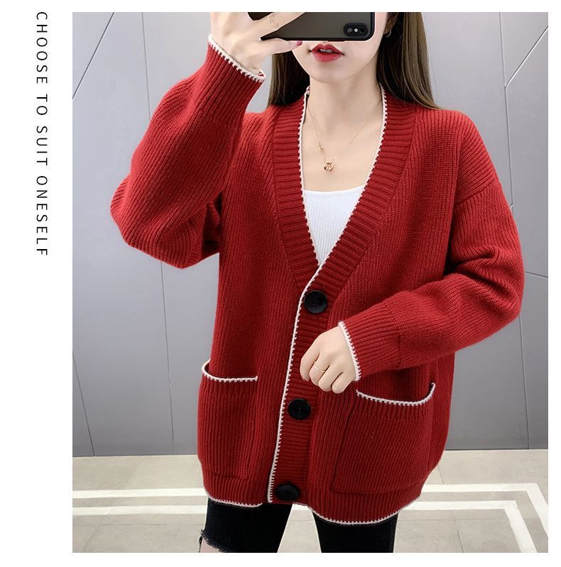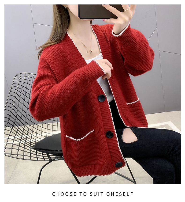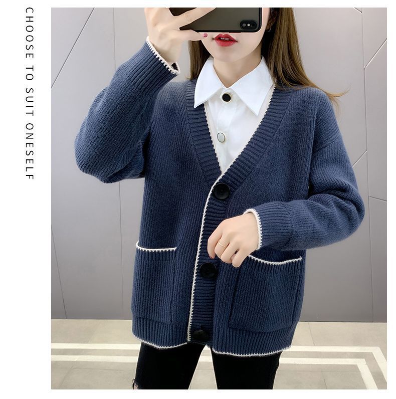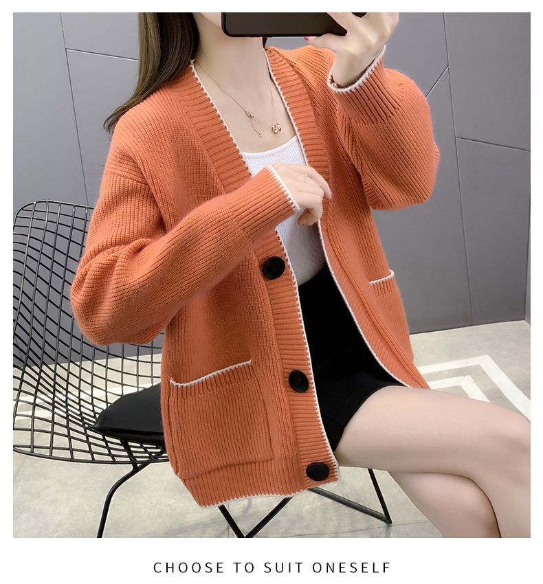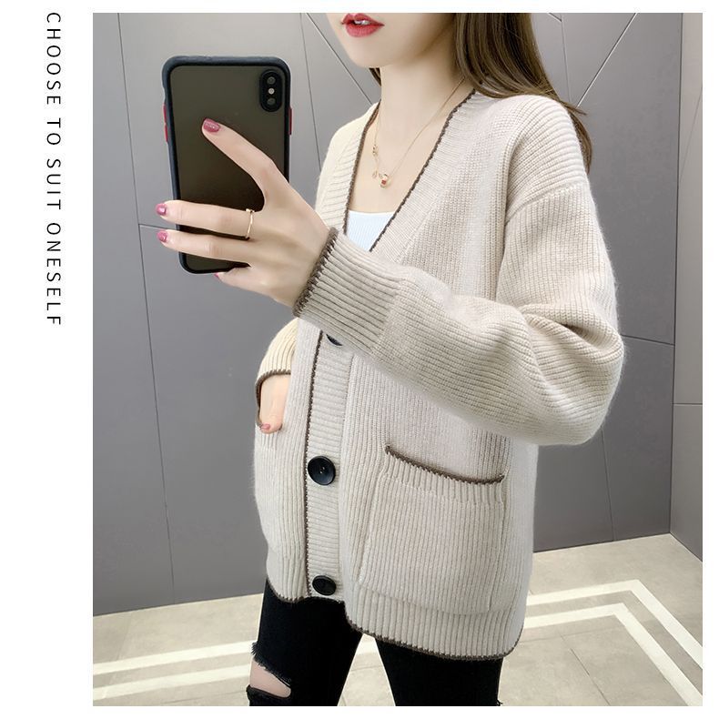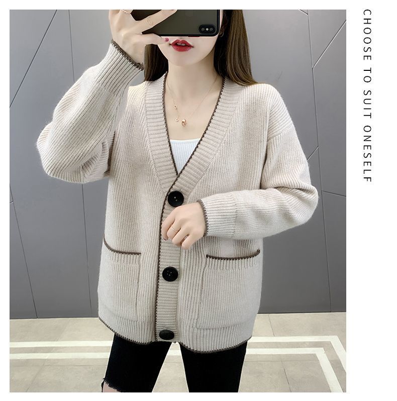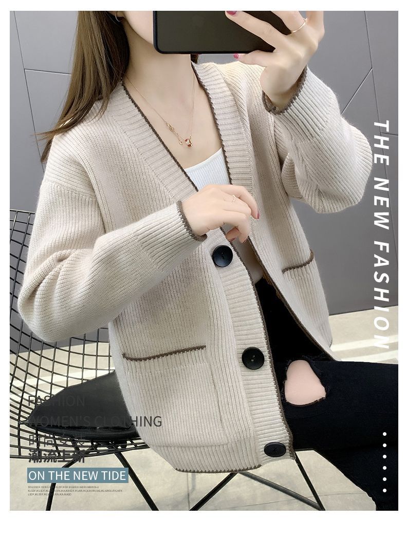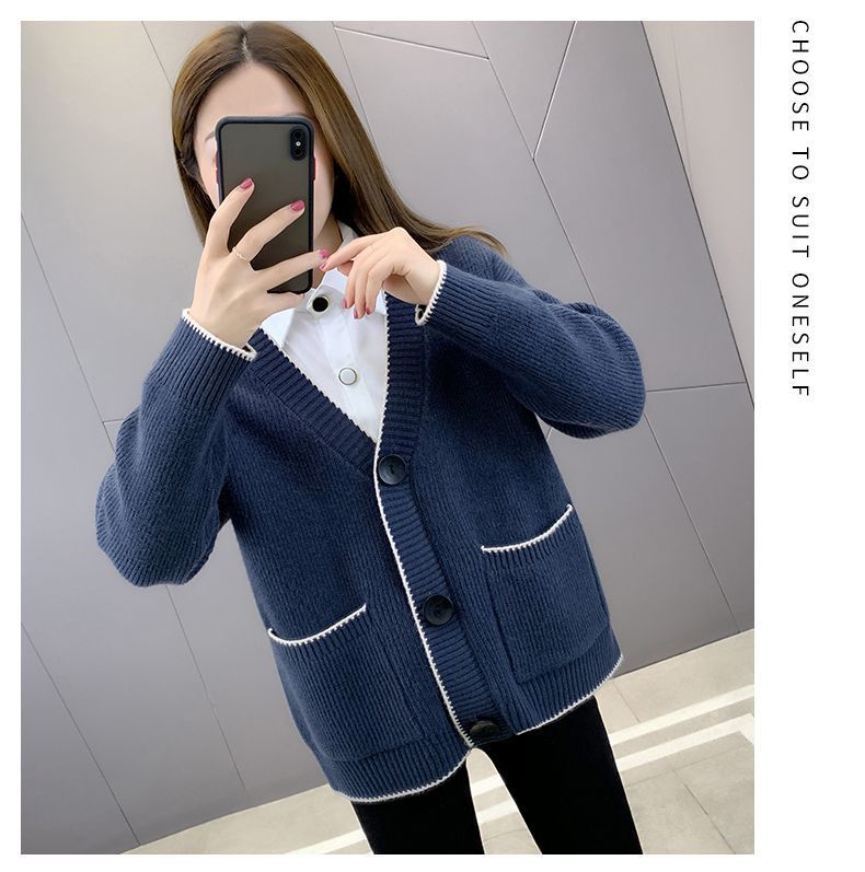 가을 겨울 새로운 한국 스웨터 카디건 스타일 니트 루즈 탑 두꺼운 샤넬 스타일 코트