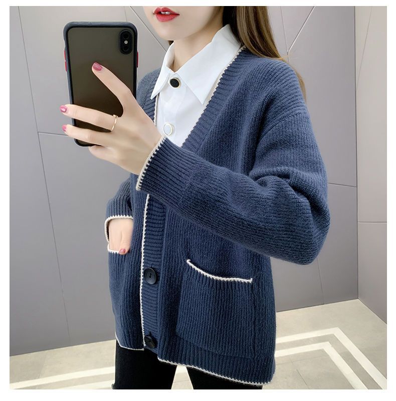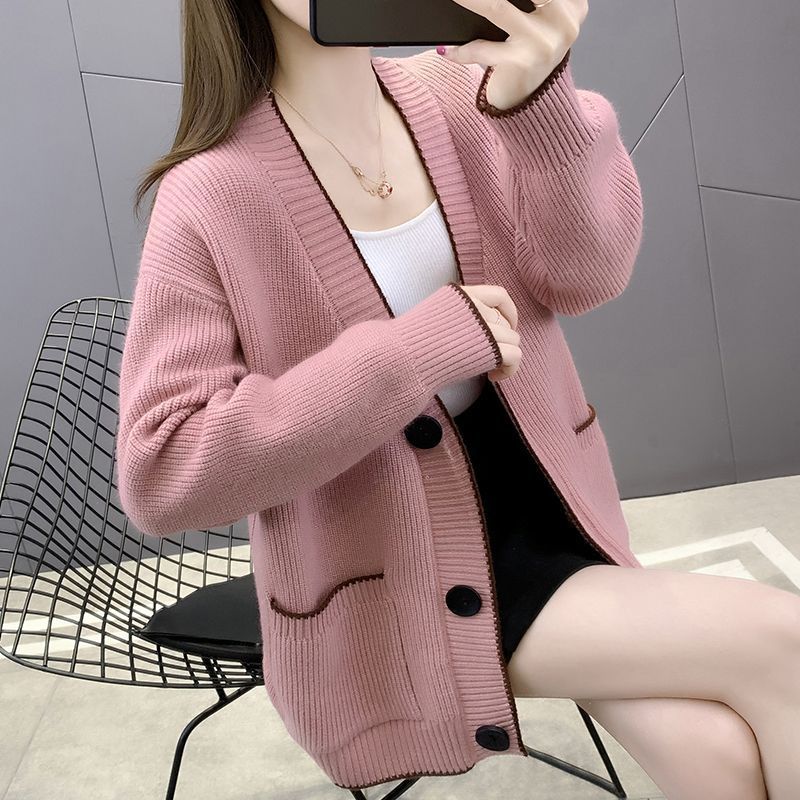 가을 겨울 새로운 한국 스웨터 카디건 스타일 니트 루즈 탑 두꺼운 샤넬 스타일 코트스토어 가기