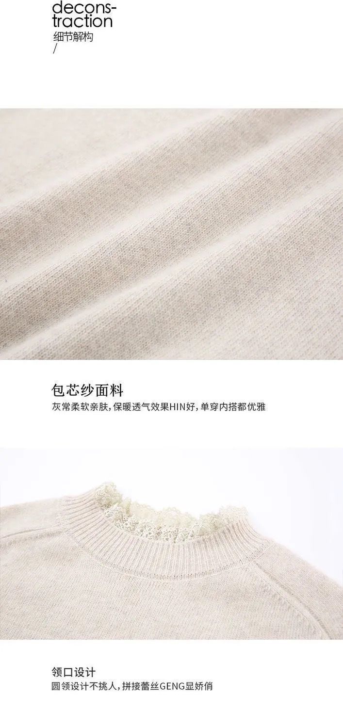 여성용 아우터웨어 스웨터 가을과 겨울 새로운 하프 터틀넥 레이스 바느질 니트베이스 셔츠 여성용 내부 패션