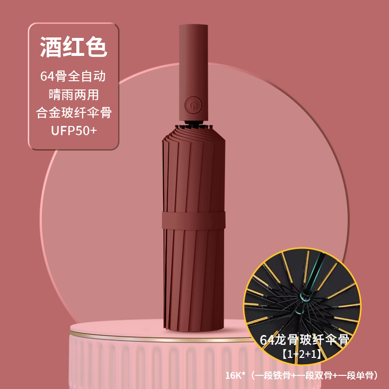 • 16개의 메인 우산 꽂이/버건디/자동 비닐 방풍