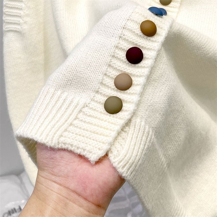 독특한 외국 스타일의 레인보우 버클 니트 라운드 넥 조끼 여성 봄과 가을 느슨한 패셔너블 스태킹 스웨터 웨이스트 코트