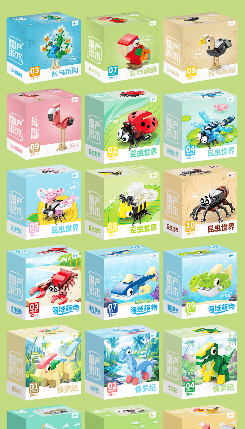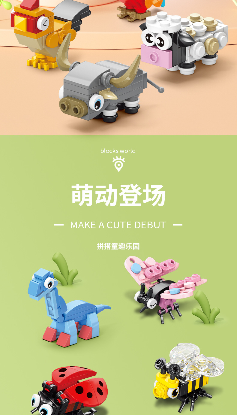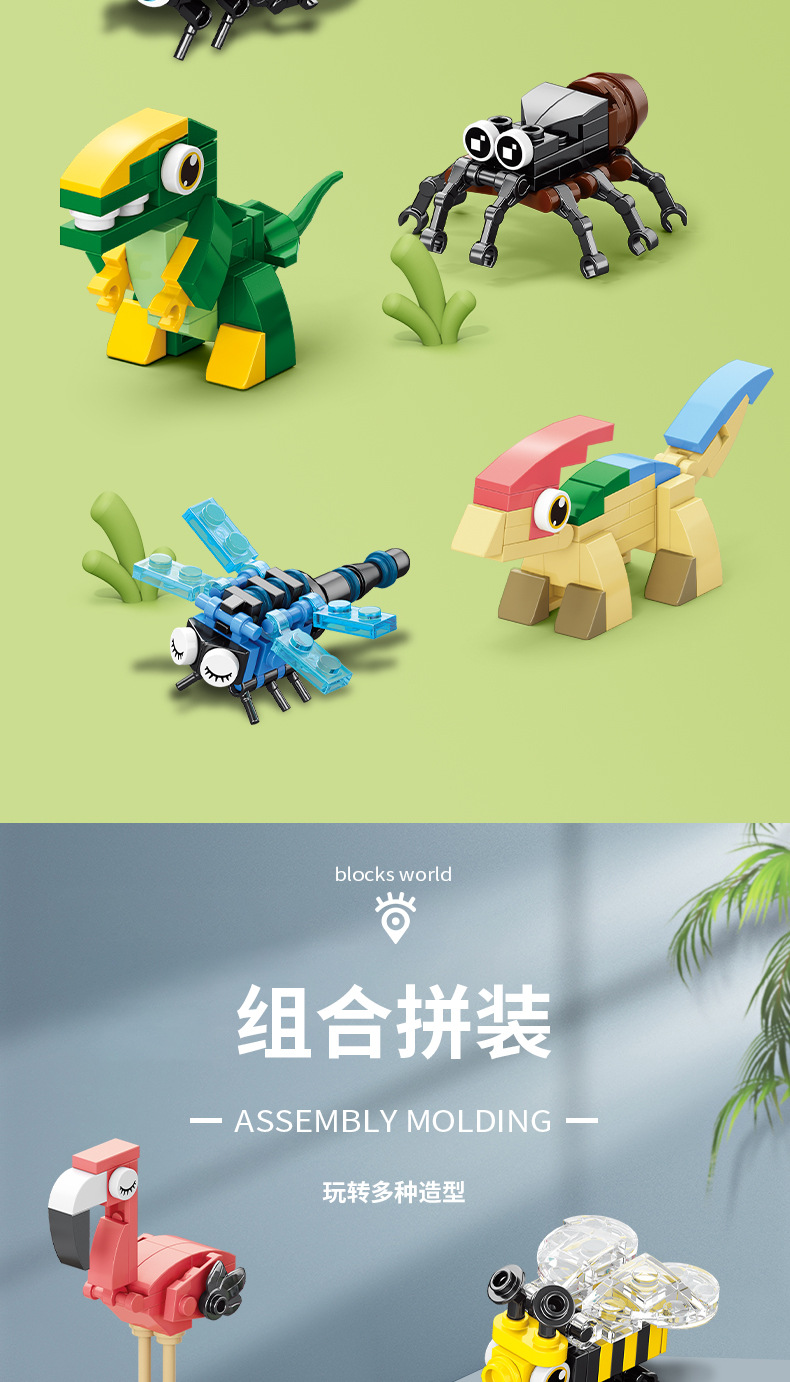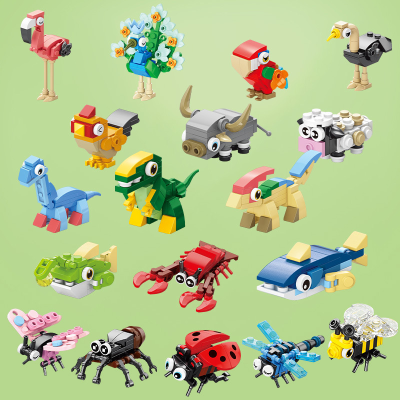 작은 입자 조립 건물 블록 어린이 퍼즐 조립 곤충 쥬라기 해양 동물 호환 건물 블록 작은 상자 장난감스토어 가기