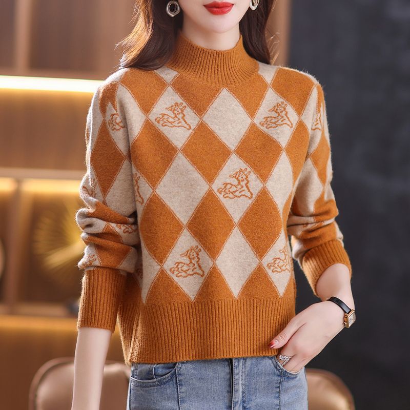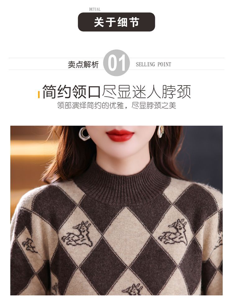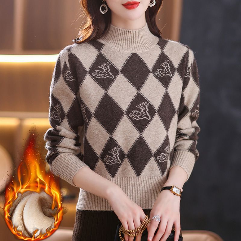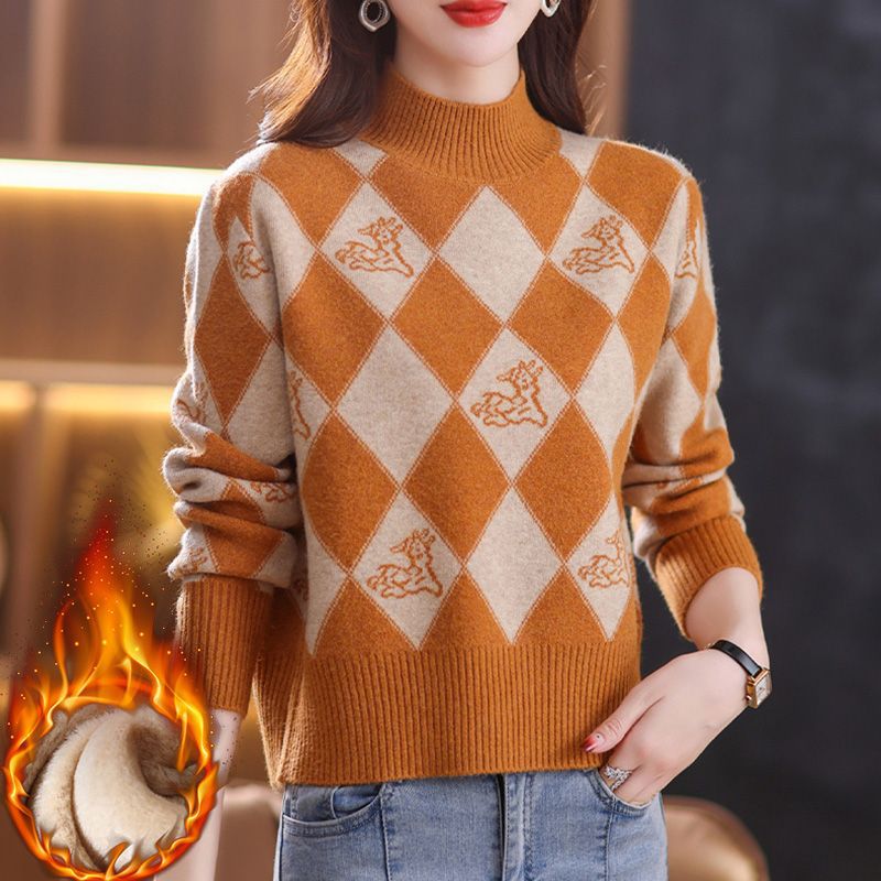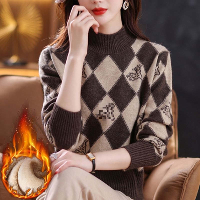 기모 두꺼운 반 터틀넥 스웨터 여성의 가을과 겨울 새로운 느슨한 서양식 니트 베이스 셔츠 쇼트 탑
