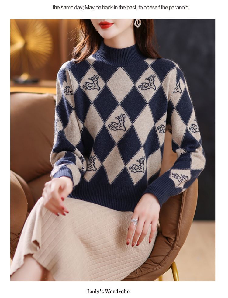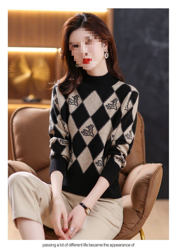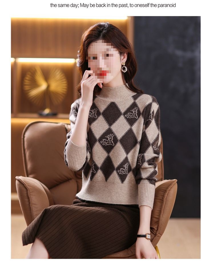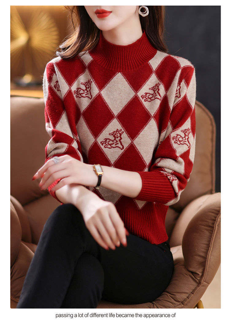 기모 두꺼운 반 터틀넥 스웨터 여성의 가을과 겨울 새로운 느슨한 서양식 니트 베이스 셔츠 쇼트 탑