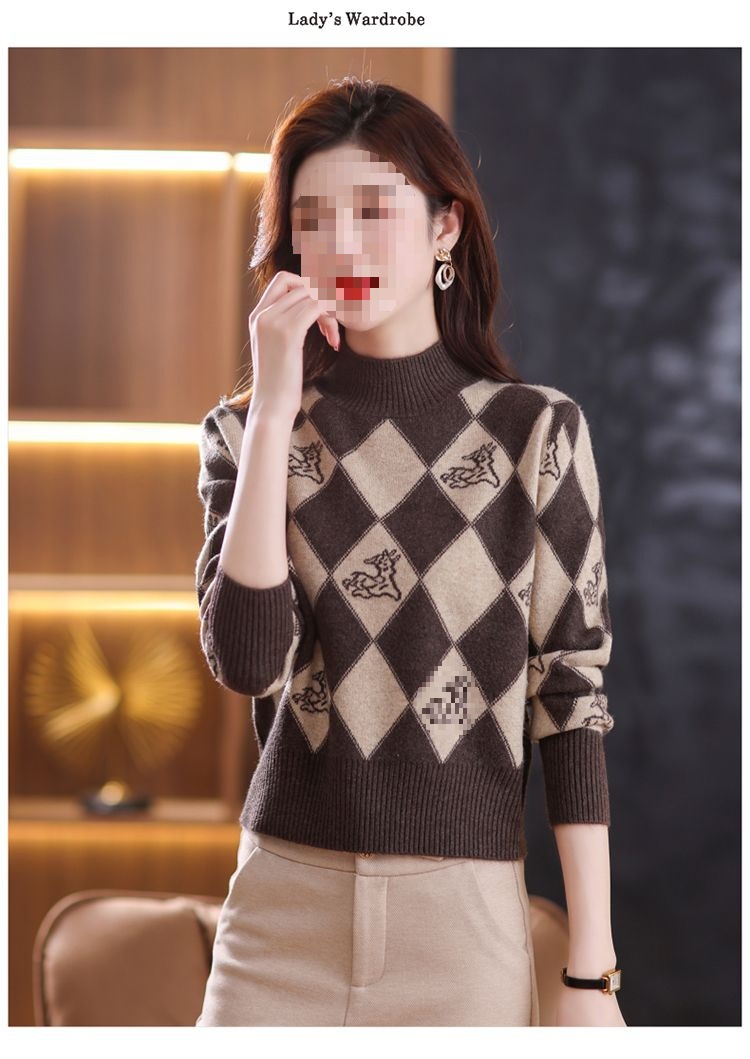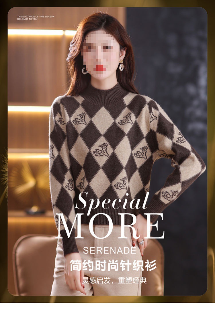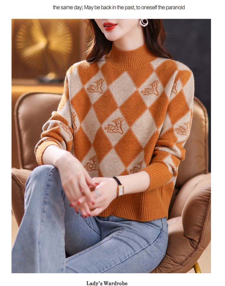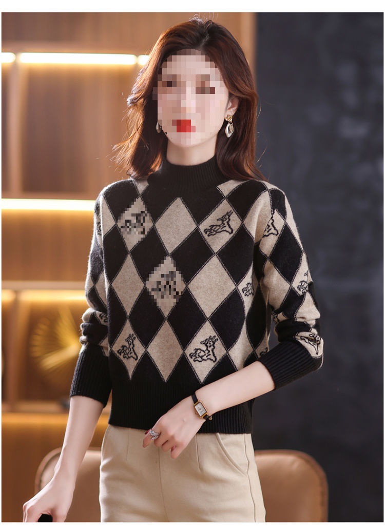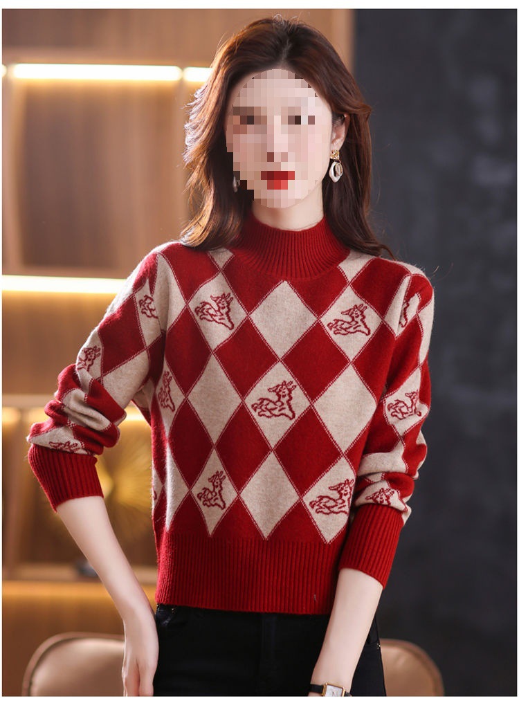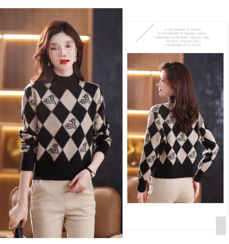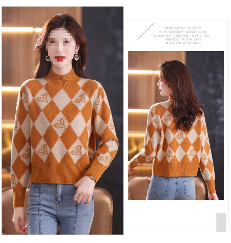 기모 두꺼운 반 터틀넥 스웨터 여성의 가을과 겨울 새로운 느슨한 서양식 니트 베이스 셔츠 쇼트 탑스토어 가기