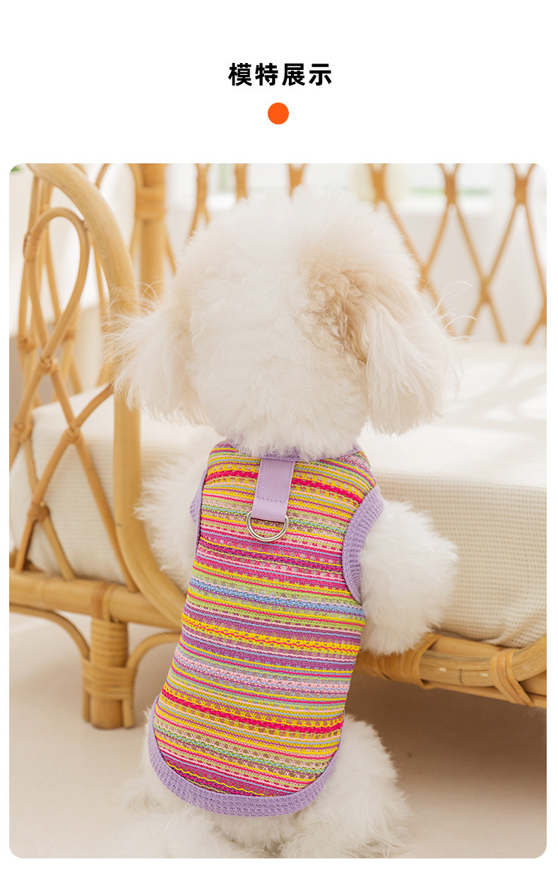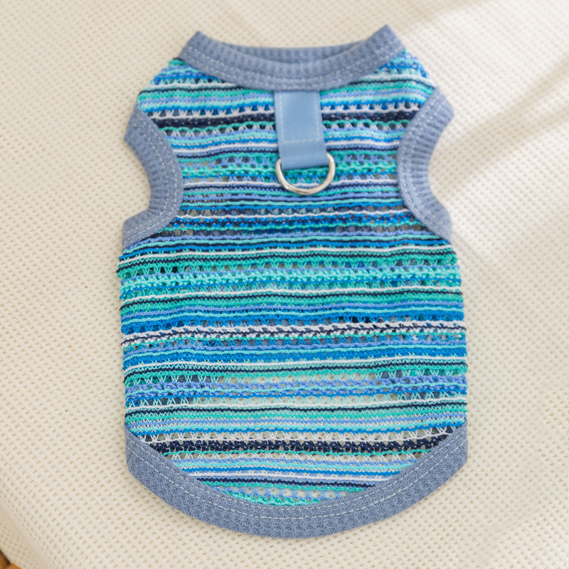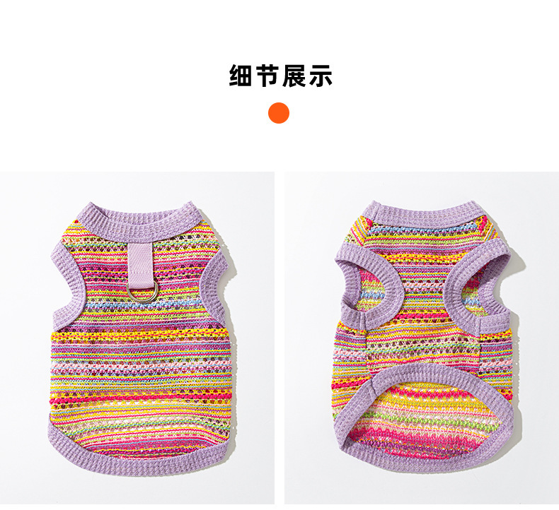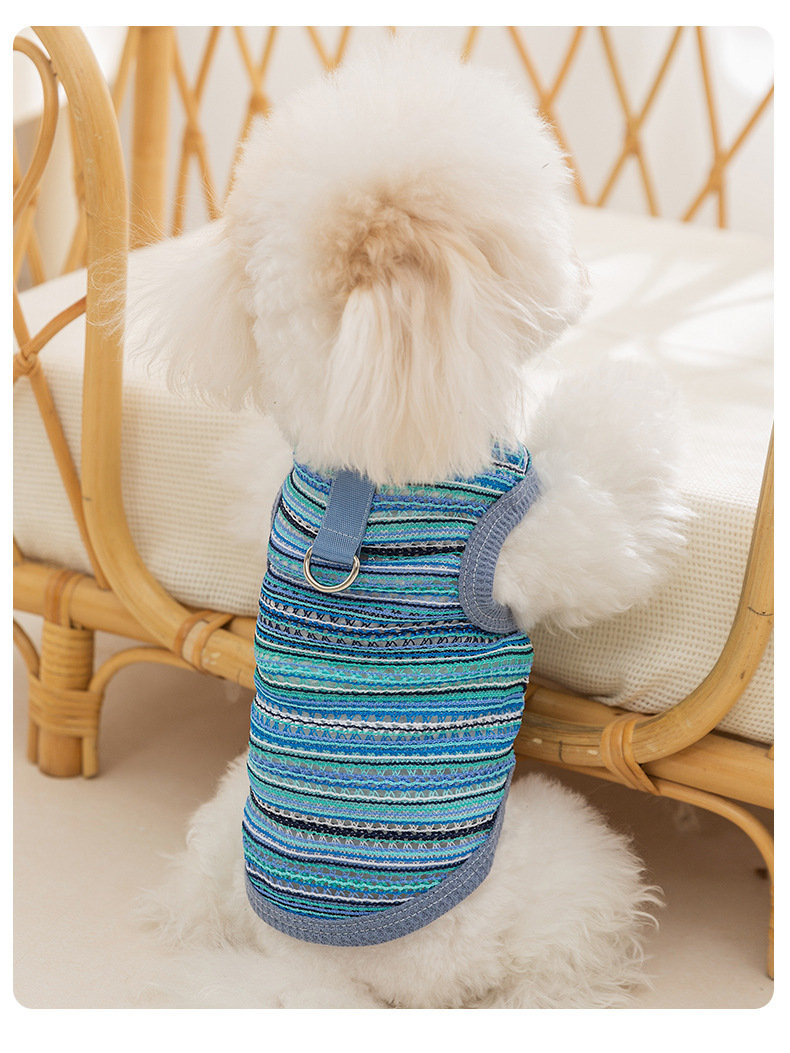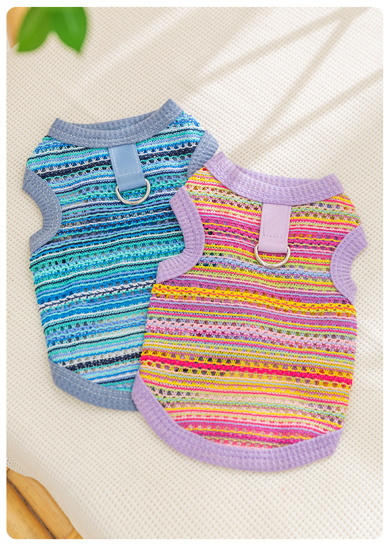 봄과 여름 개 중공 보헤미안 스타일 멀티 컬러 짠 조끼 고양이 테디 비숑 양족 애완 동물 옷스토어 가기