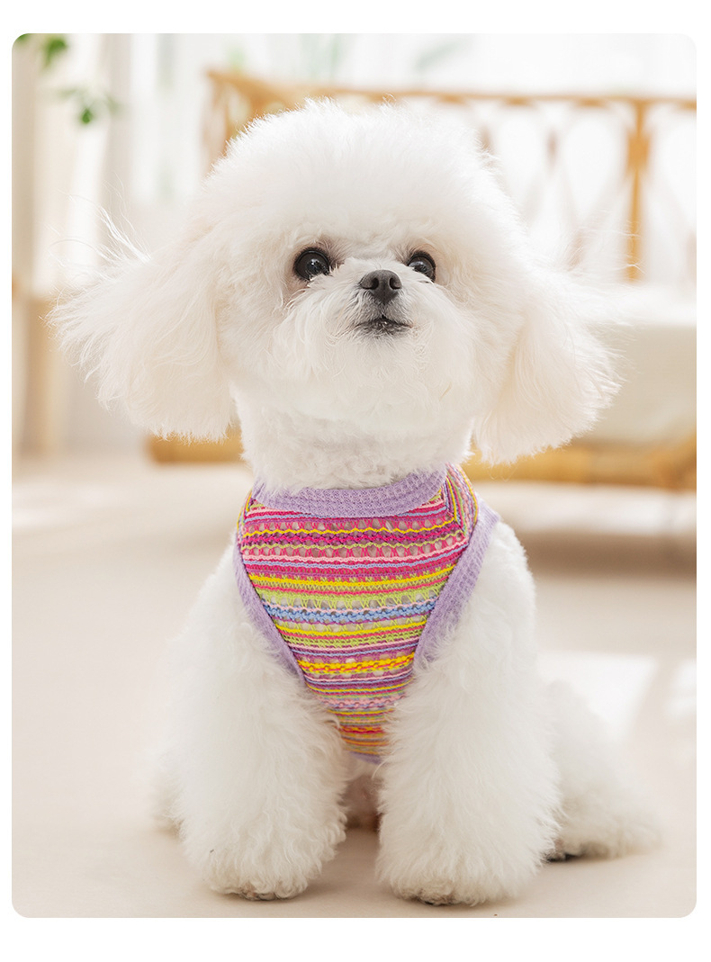 봄과 여름 개 중공 보헤미안 스타일 멀티 컬러 짠 조끼 고양이 테디 비숑 양족 애완 동물 옷
