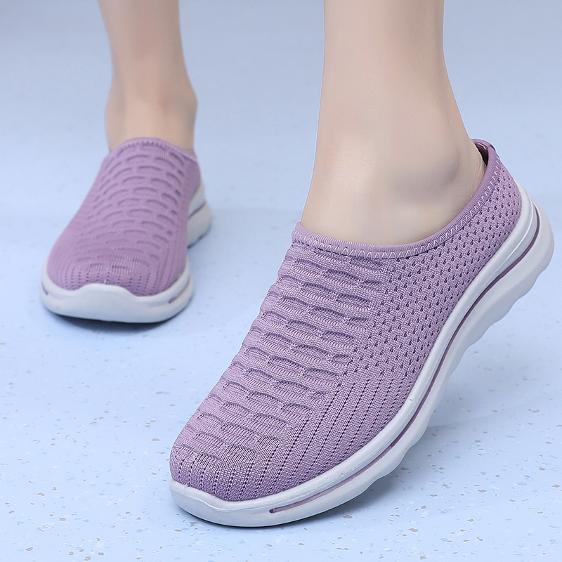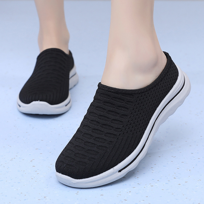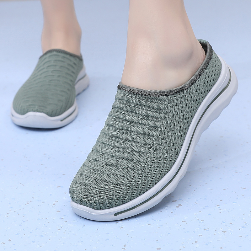 2025 년 여름 새로운 두꺼운 밑창 메시 신발 여성용 외부 편안한 올매치 경량 통기성 슬립 온 메쉬 하프 슬리퍼스토어 가기