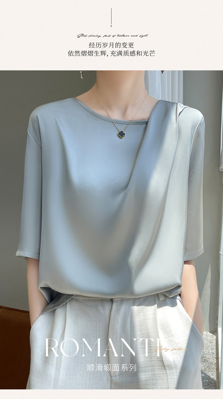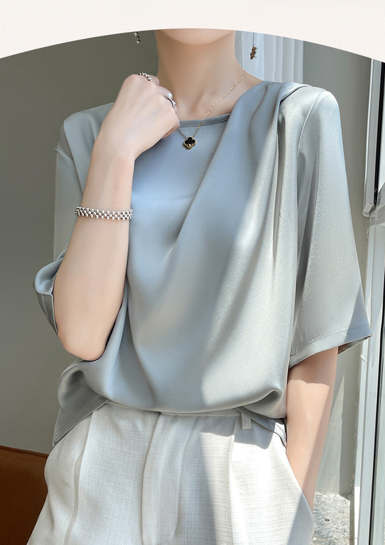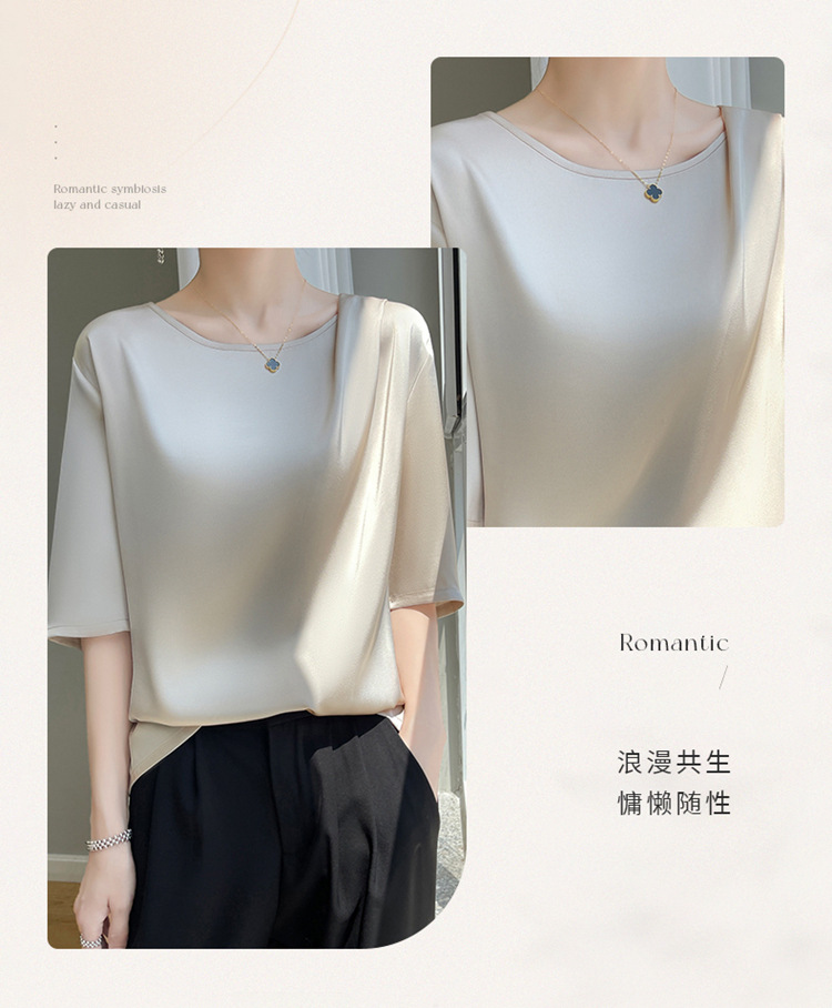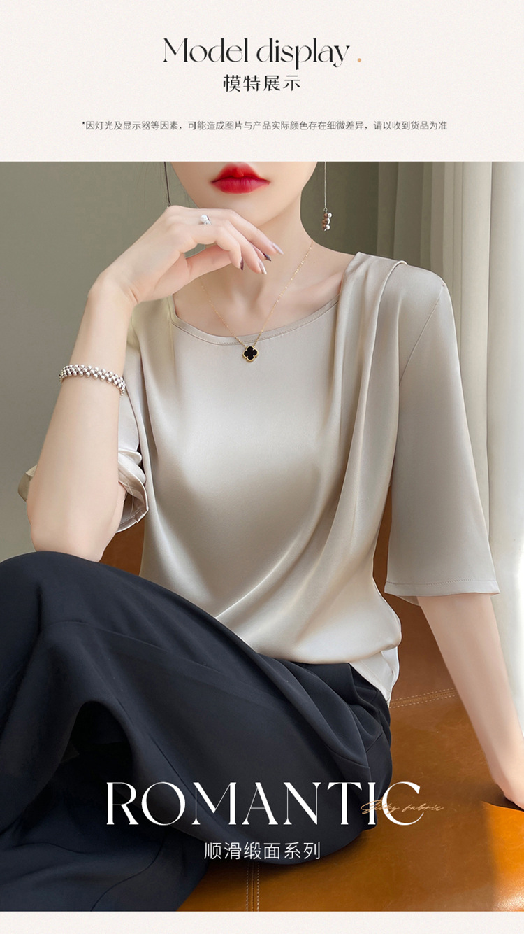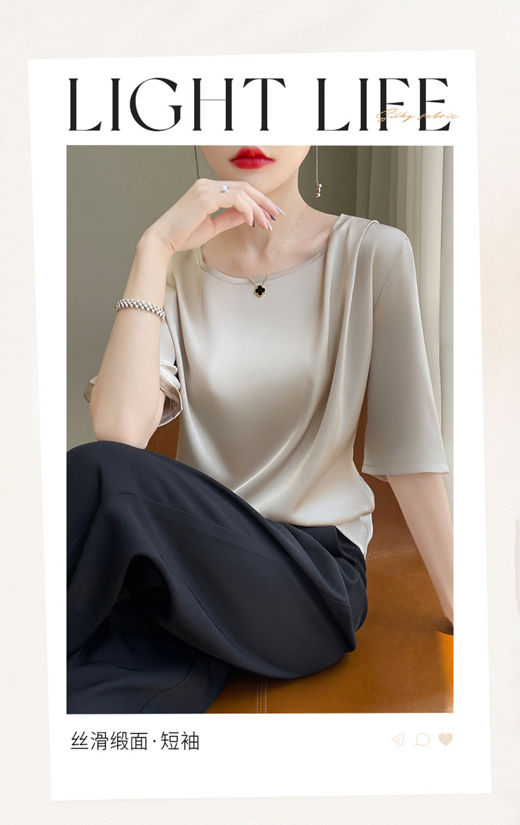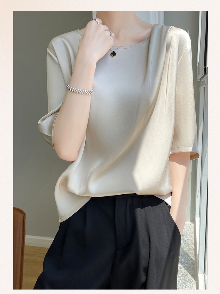 반팔 여성 티셔츠 디자인 비 실크 새틴 반팔 탑 여성 여름 하이 엔드 실크 반팔 티셔츠 여성 t스토어 가기
