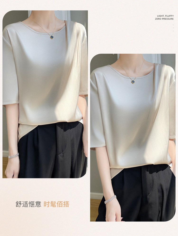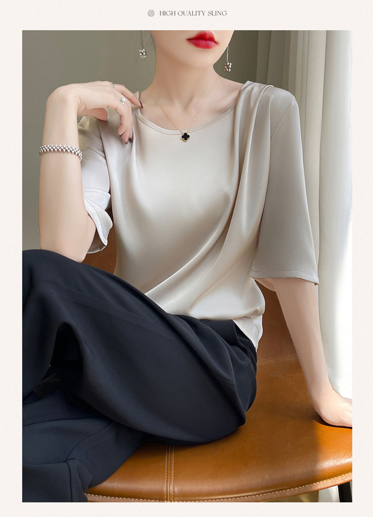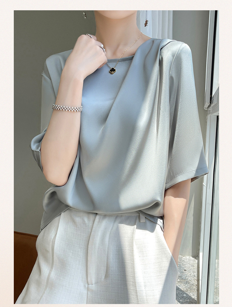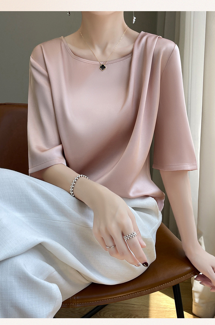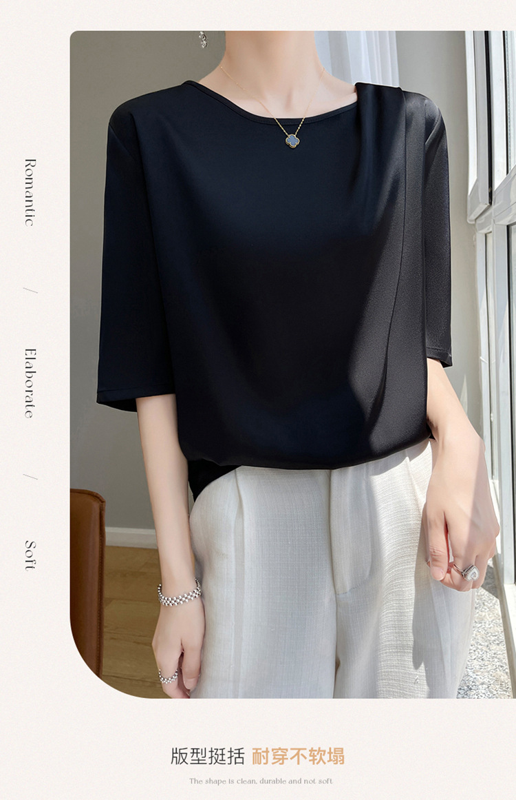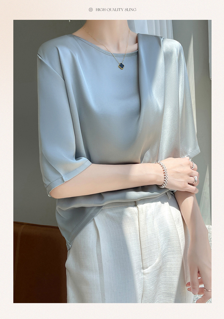 반팔 여성 티셔츠 디자인 비 실크 새틴 반팔 탑 여성 여름 하이 엔드 실크 반팔 티셔츠 여성 t스토어 가기
