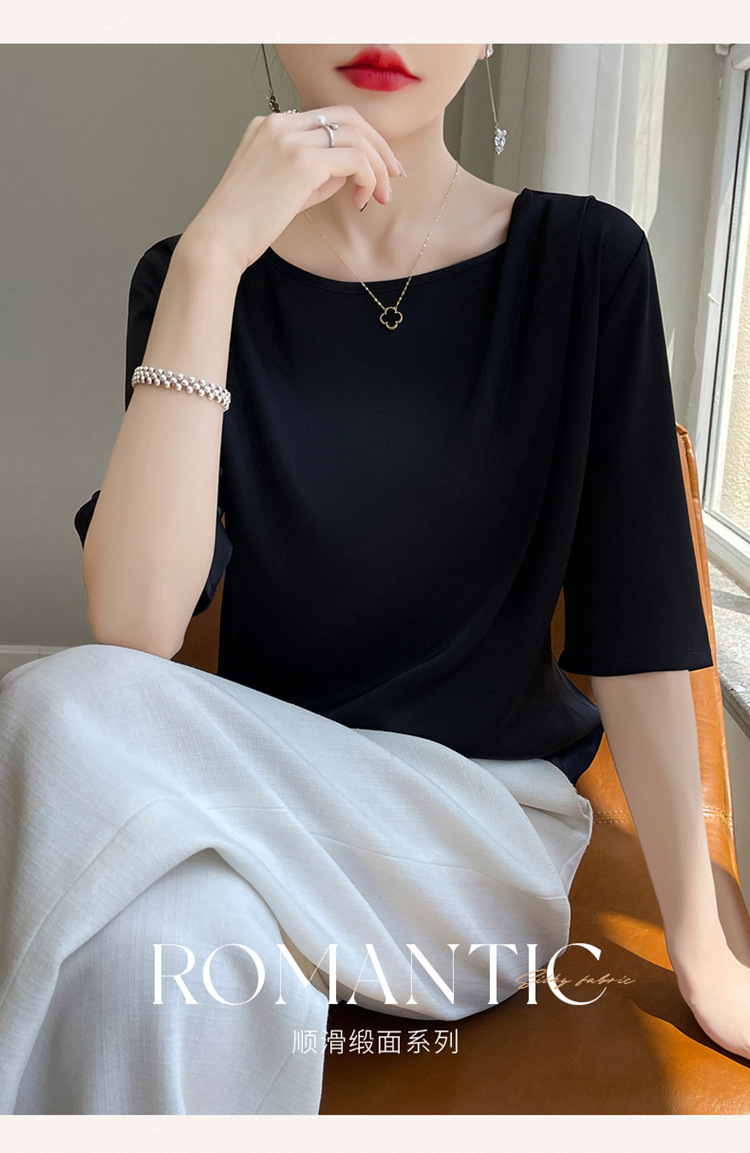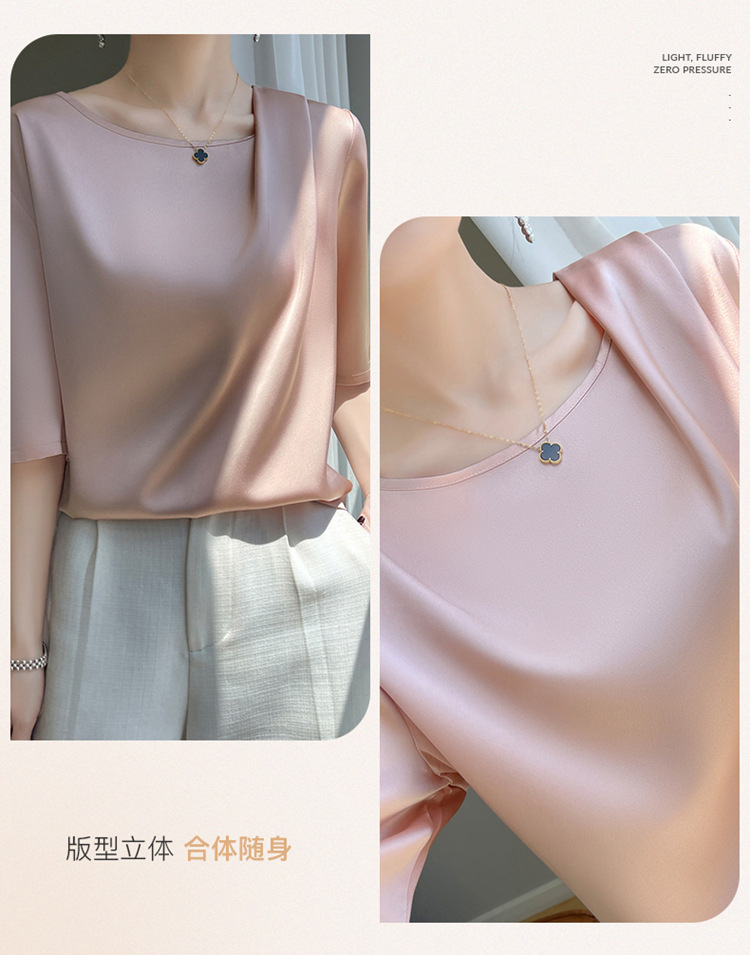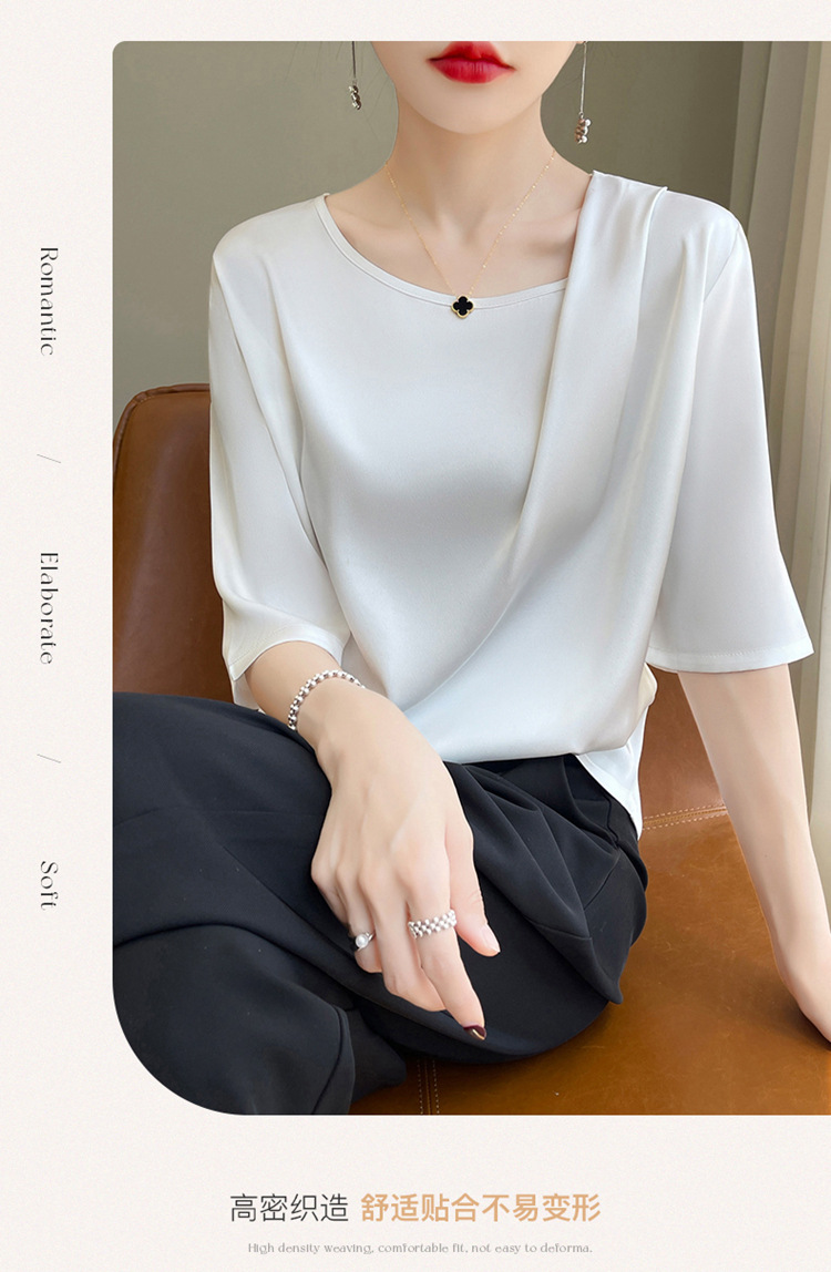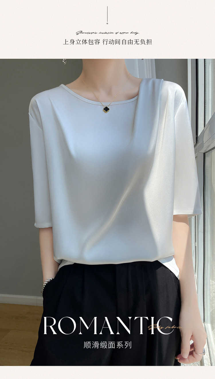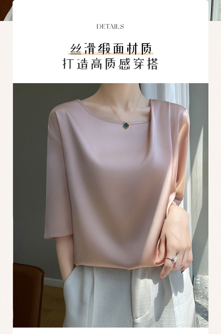 반팔 여성 티셔츠 디자인 비 실크 새틴 반팔 탑 여성 여름 하이 엔드 실크 반팔 티셔츠 여성 t스토어 가기