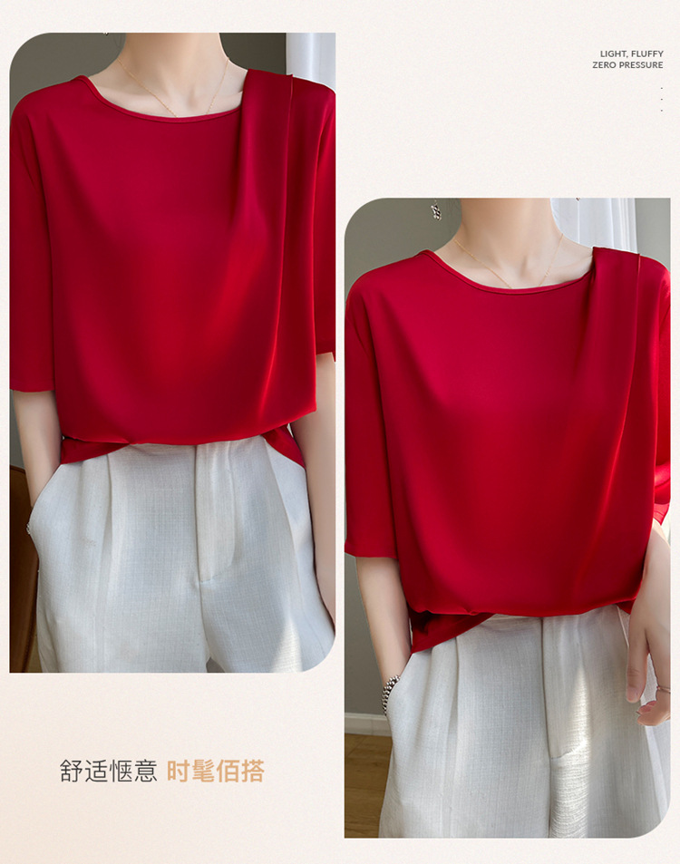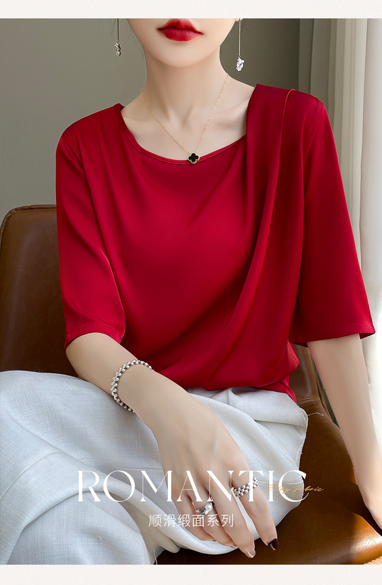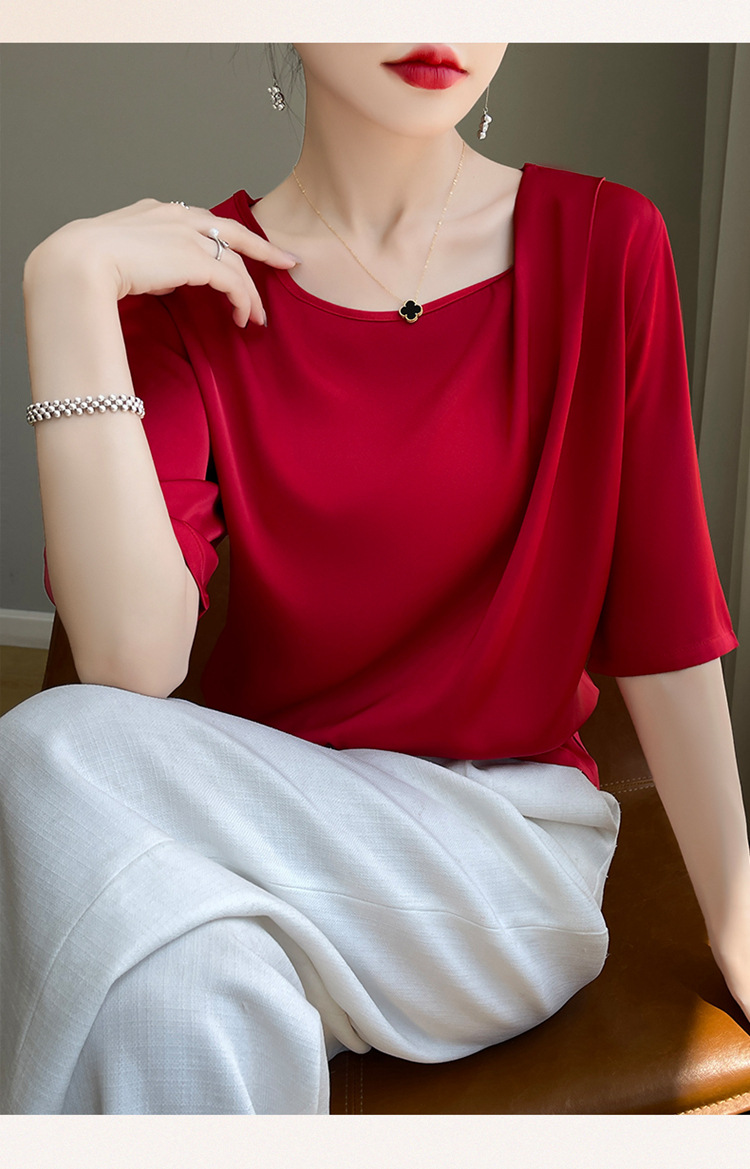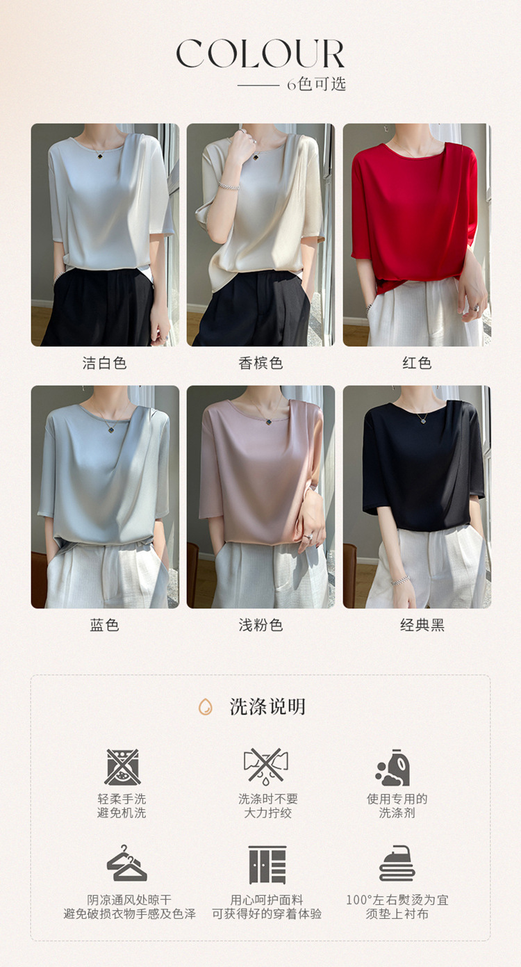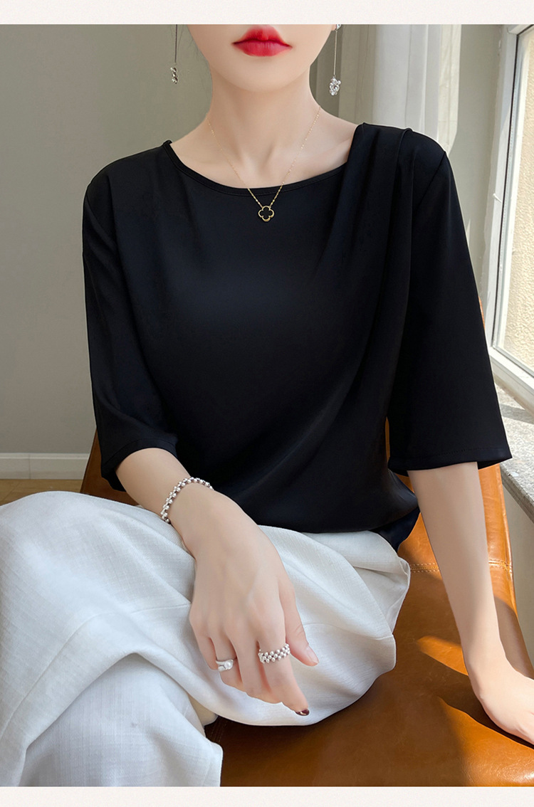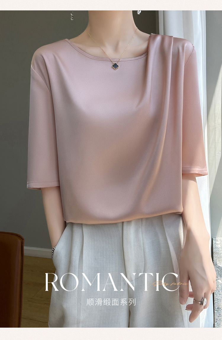 반팔 여성 티셔츠 디자인 비 실크 새틴 반팔 탑 여성 여름 하이 엔드 실크 반팔 티셔츠 여성 t스토어 가기