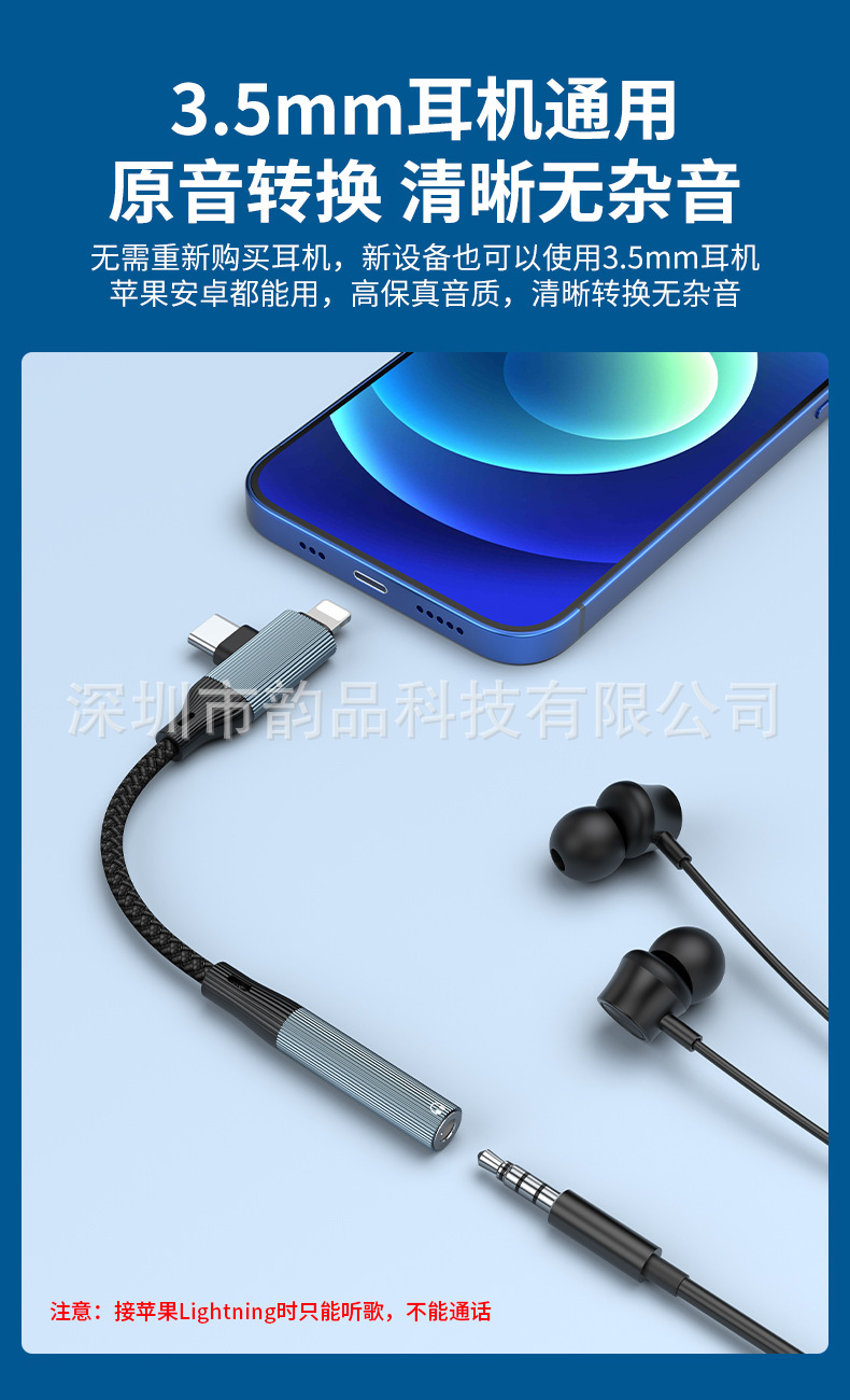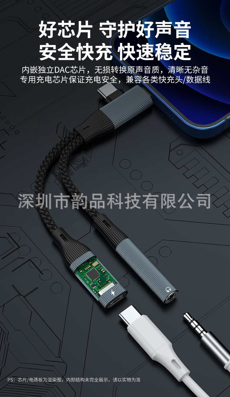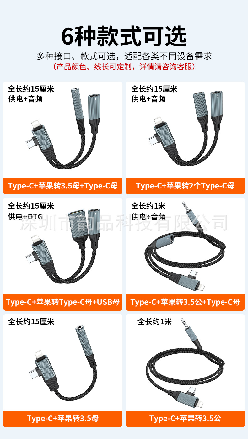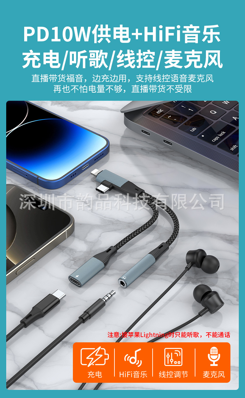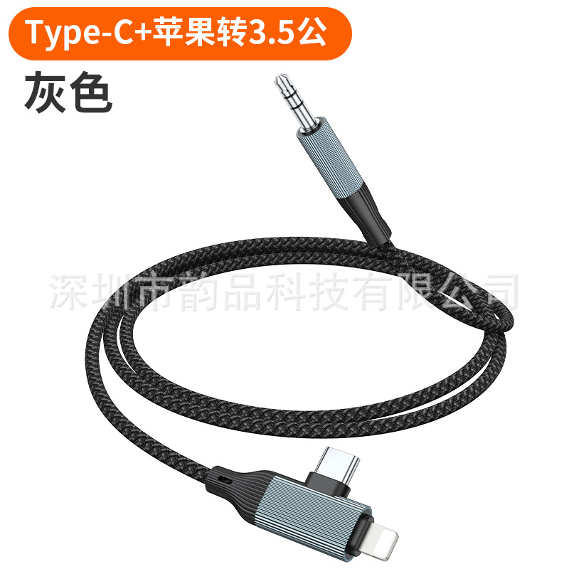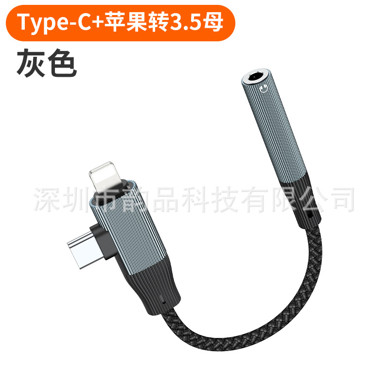 유형-C+애플에서 3.5mm로 변환하는 오디오 케이블, 음악 감상 및 휴대폰 라이브 방송에 적합, 10W 고속 충전 어댑터