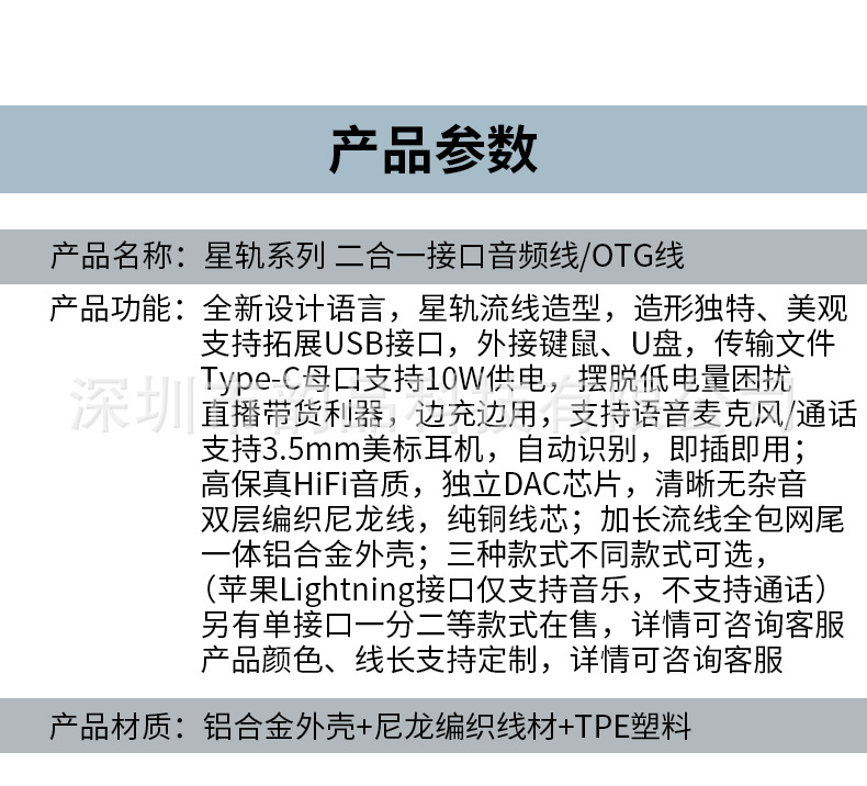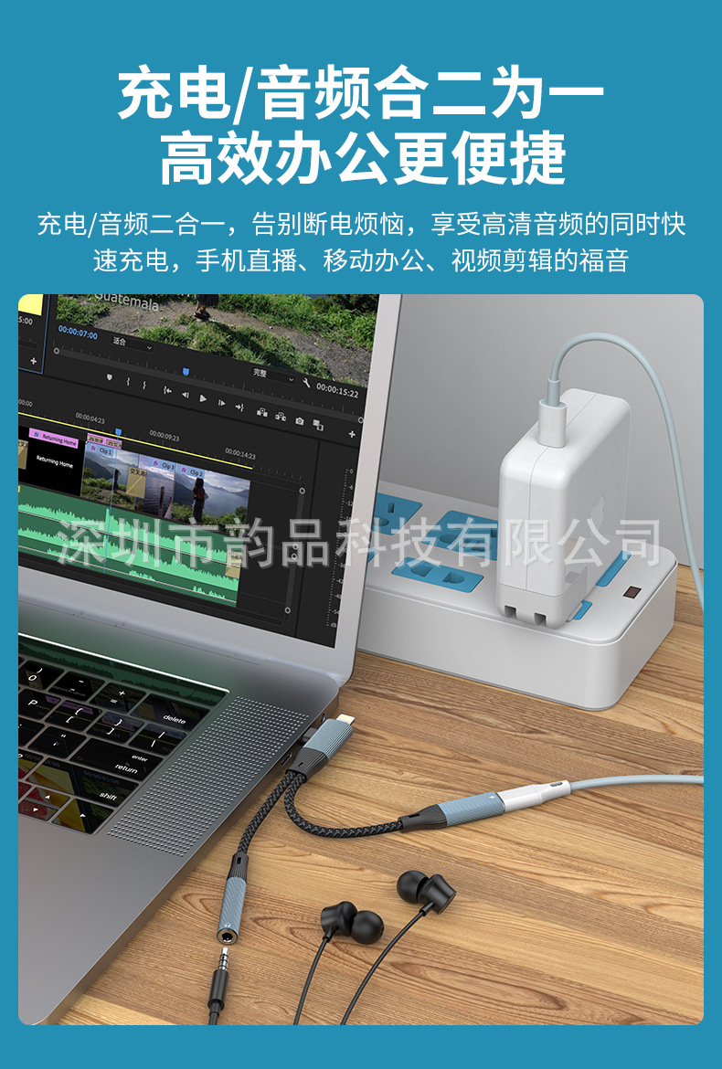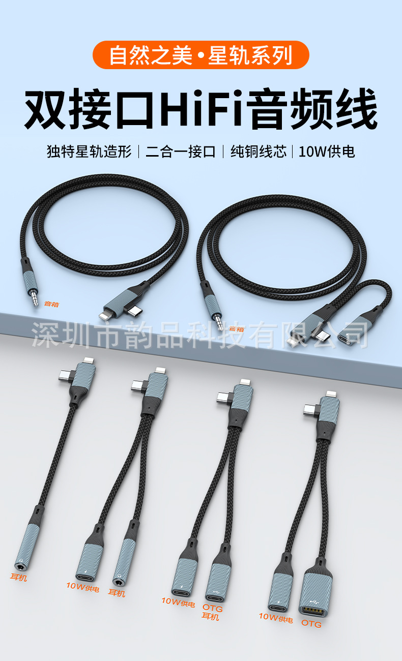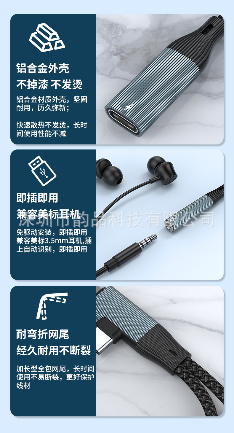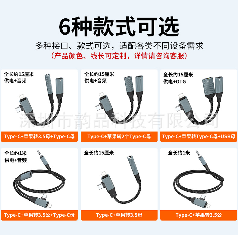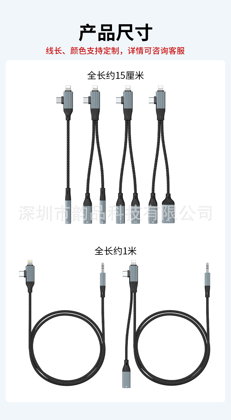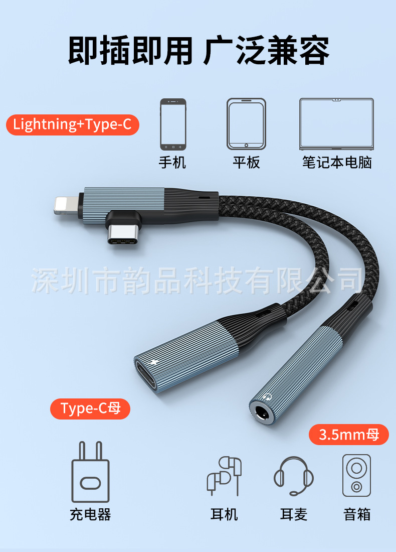 유형-C+애플에서 3.5mm로 변환하는 오디오 케이블, 음악 감상 및 휴대폰 라이브 방송에 적합, 10W 고속 충전 어댑터
