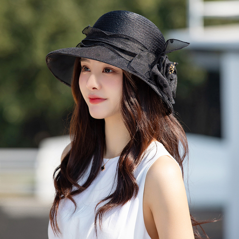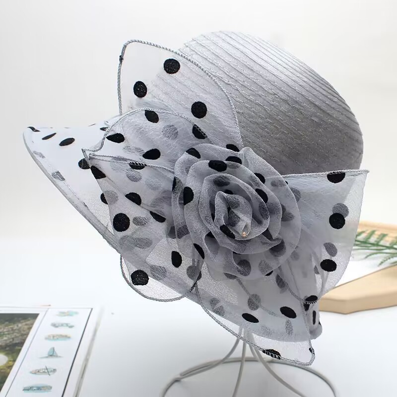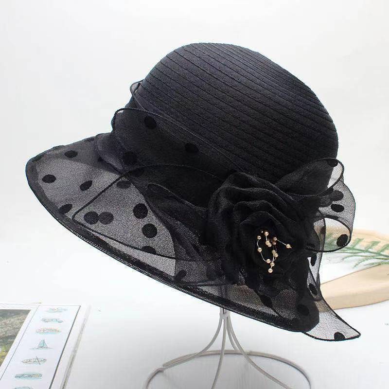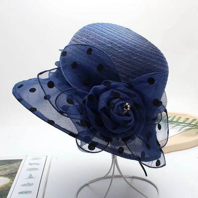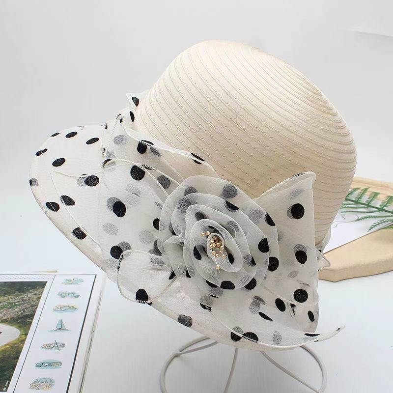 Organza Hat 여성의 유행 봄과 여름 그물 모자 짧은 챙이 모자 유럽과 미국 스타일 도트 모자 선 스크린 햇빛 모자스토어 가기