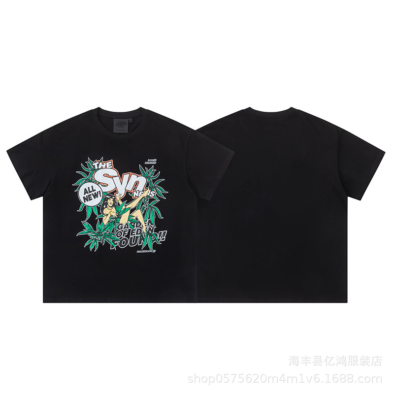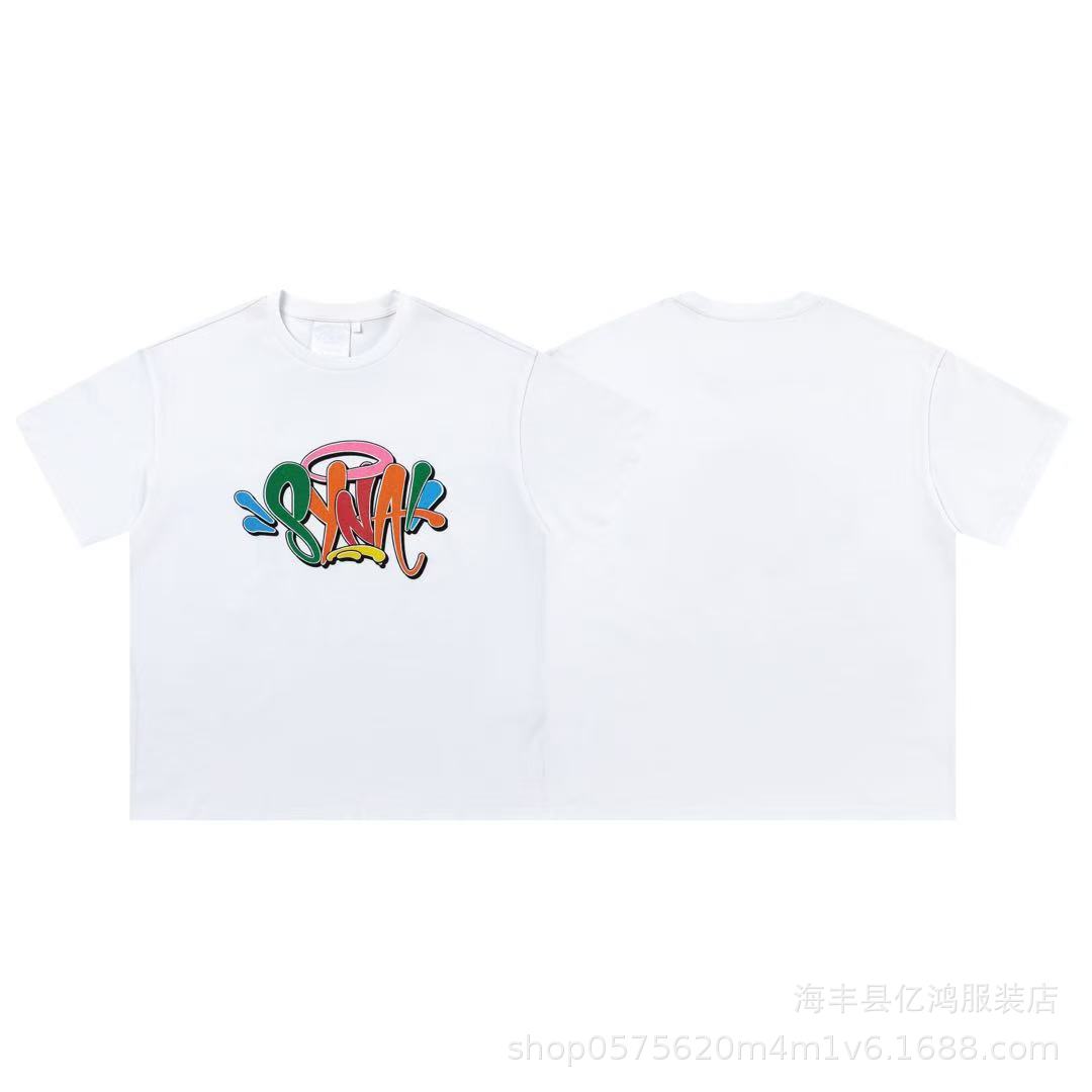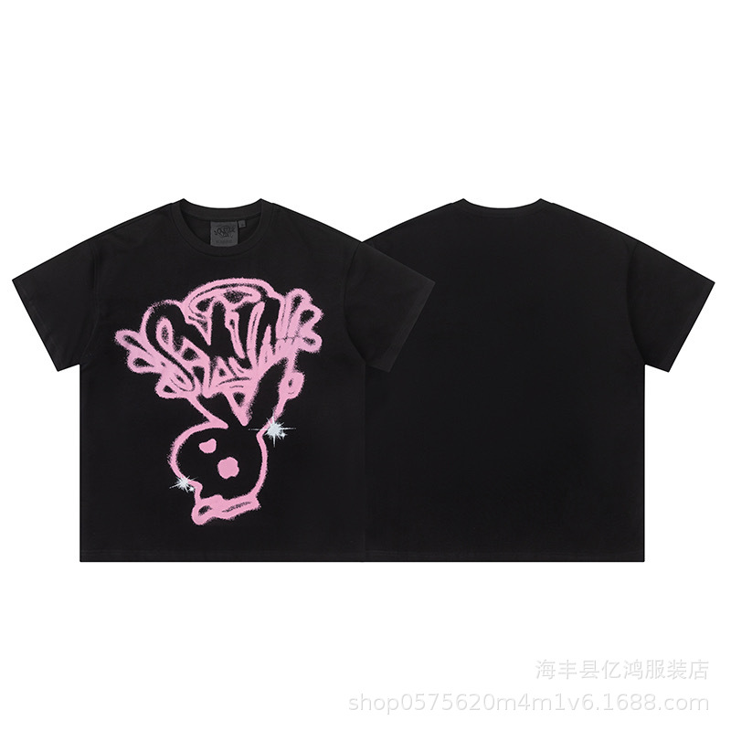 국경 간 대외 무역 유럽과 미국 패션 브랜드 새로운 편지 인쇄 반팔 티셔츠 남성용 느슨한 둥근 목베이스 셔츠 남녀 커플
