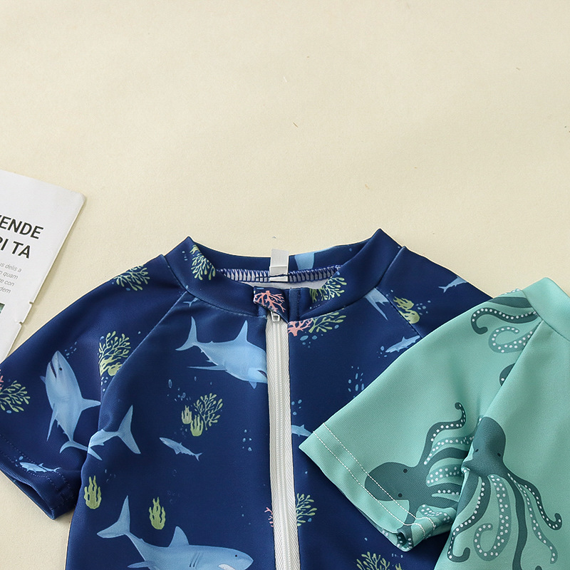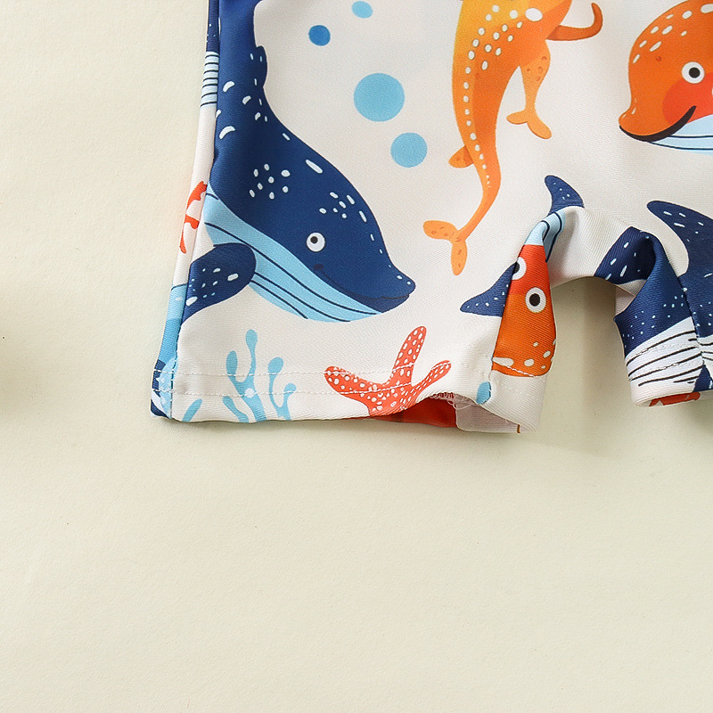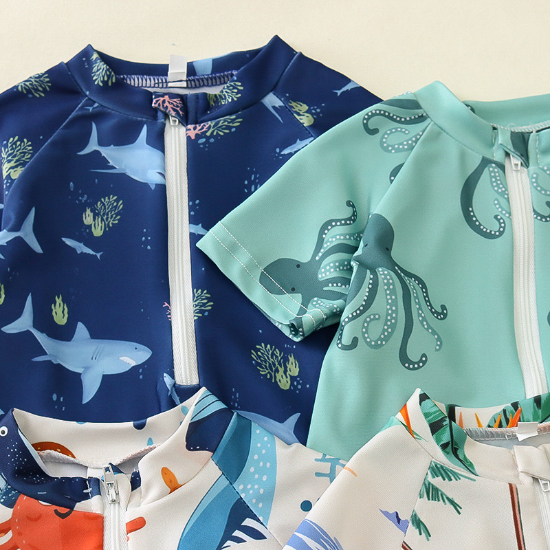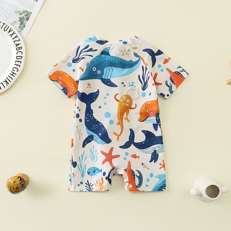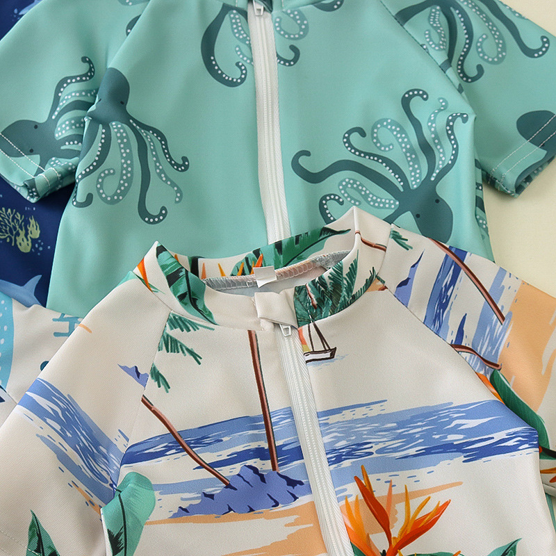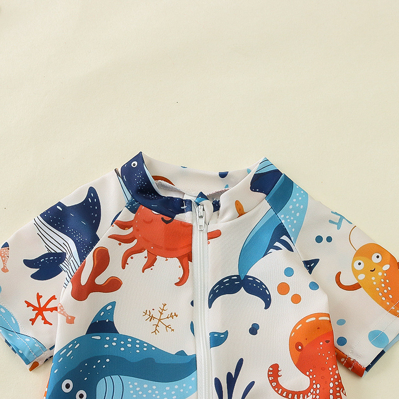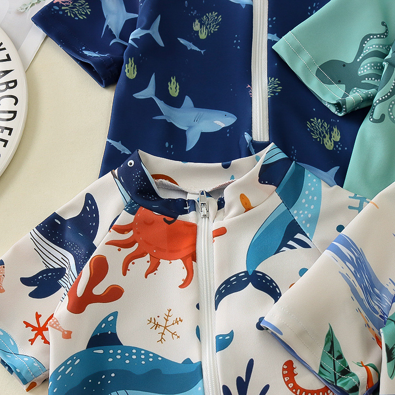 국경 간 아동복 소년 바다 테마 전체 인쇄 원피스 수영복 소년 아기 반 오픈 원피스 수영복 어린이 수영복 0-