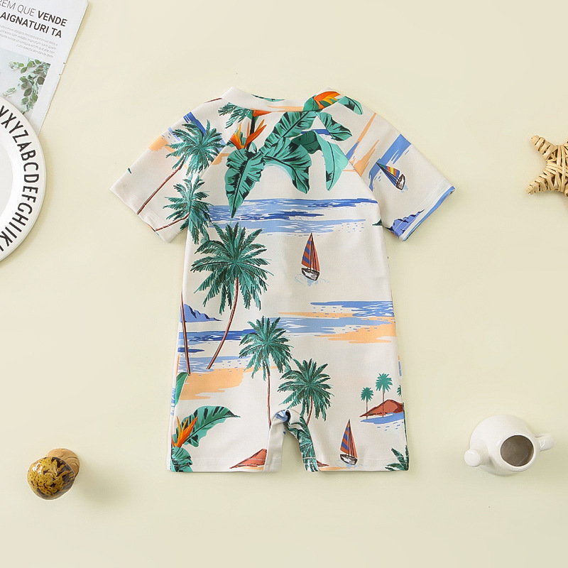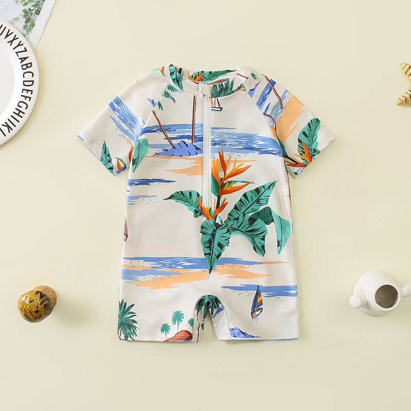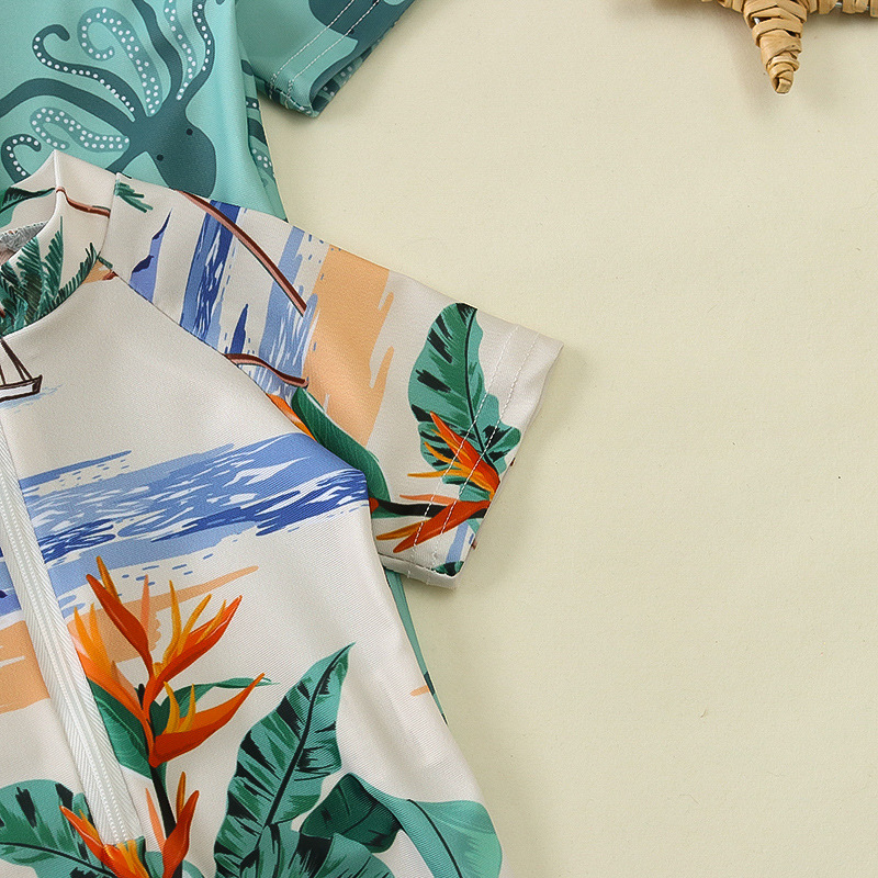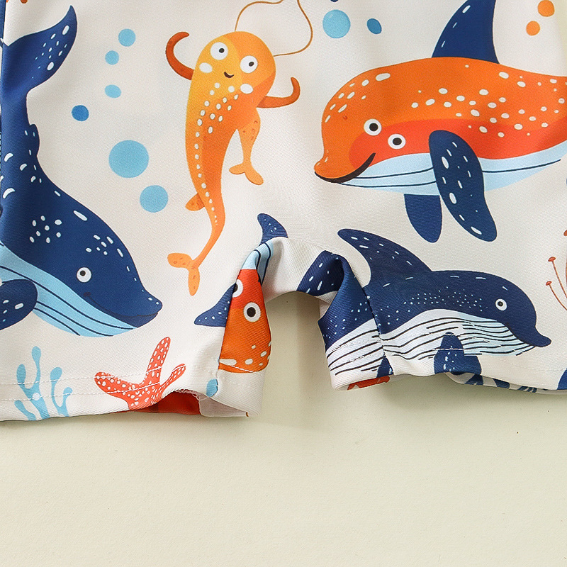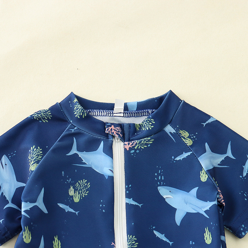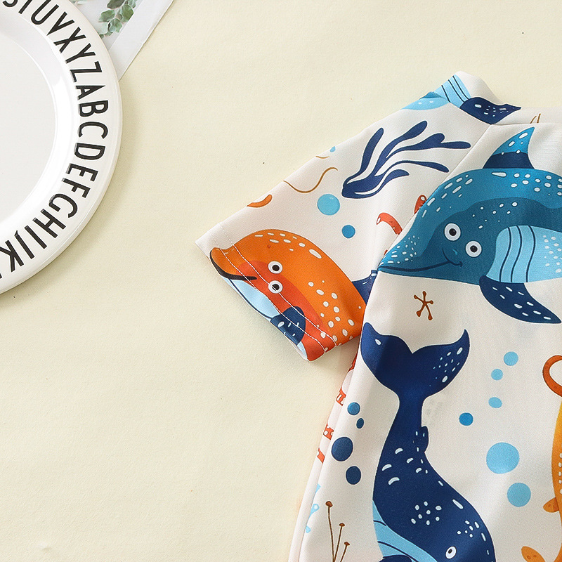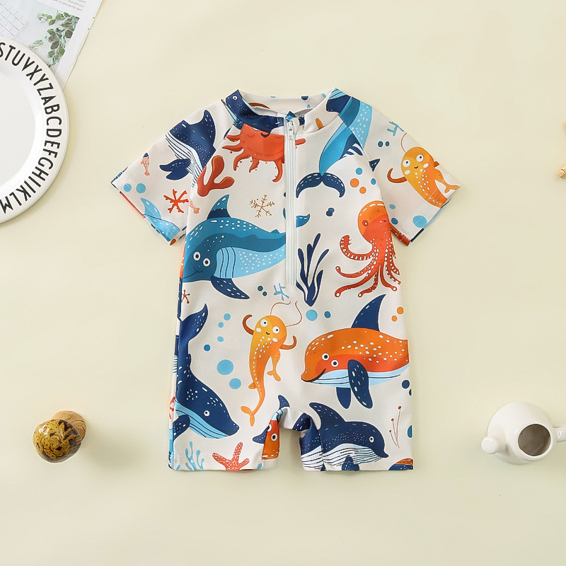 국경 간 아동복 소년 바다 테마 전체 인쇄 원피스 수영복 소년 아기 반 오픈 원피스 수영복 어린이 수영복 0-