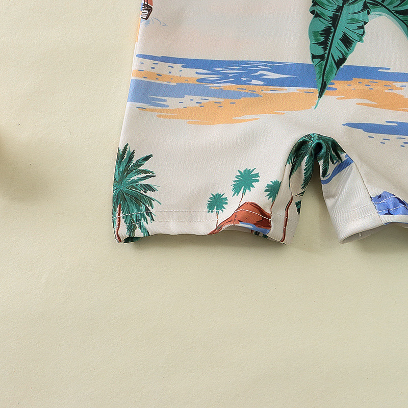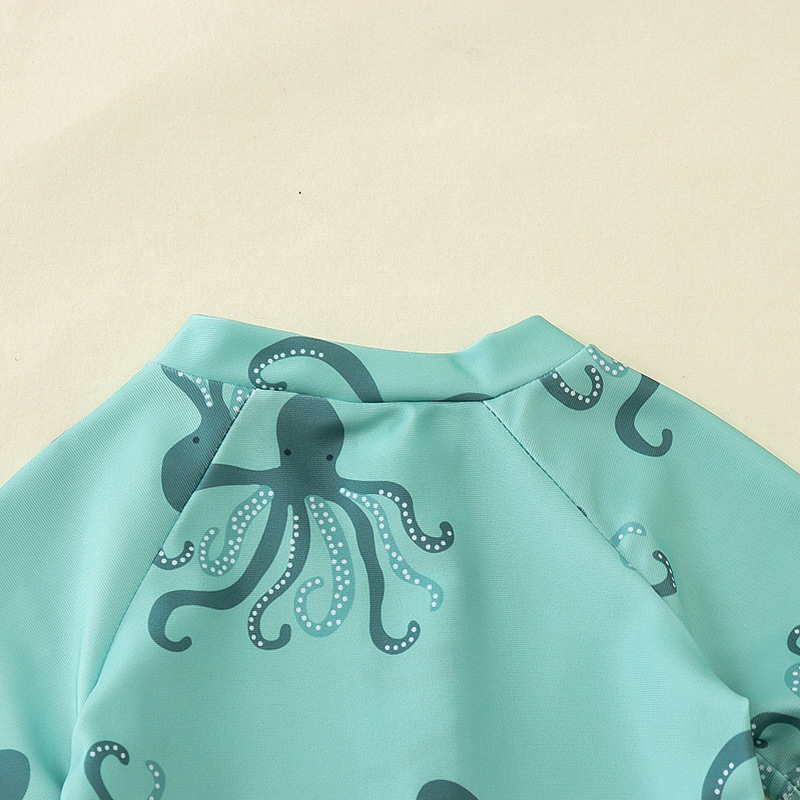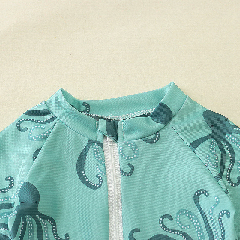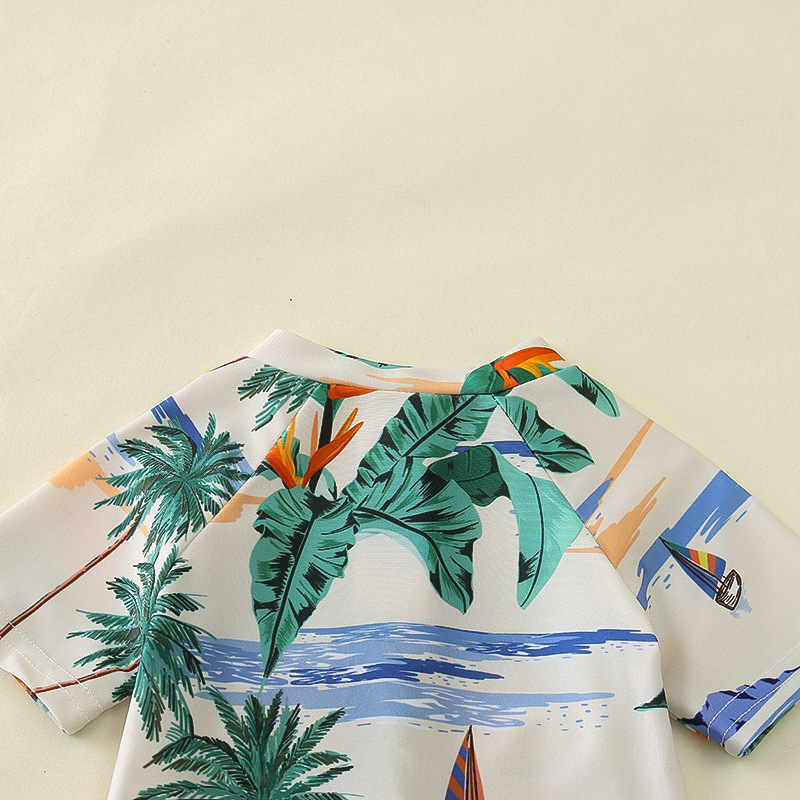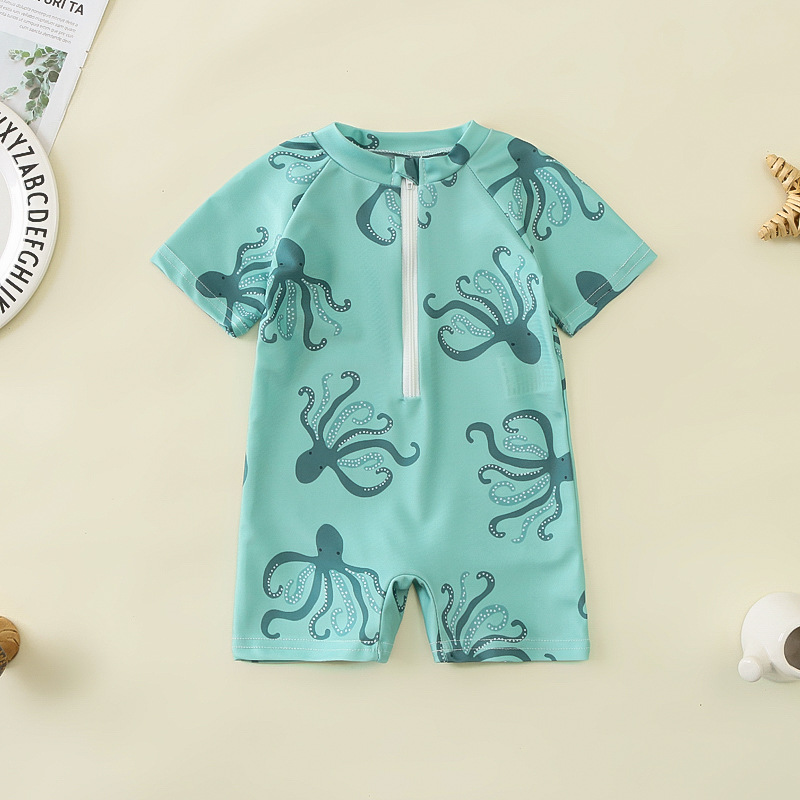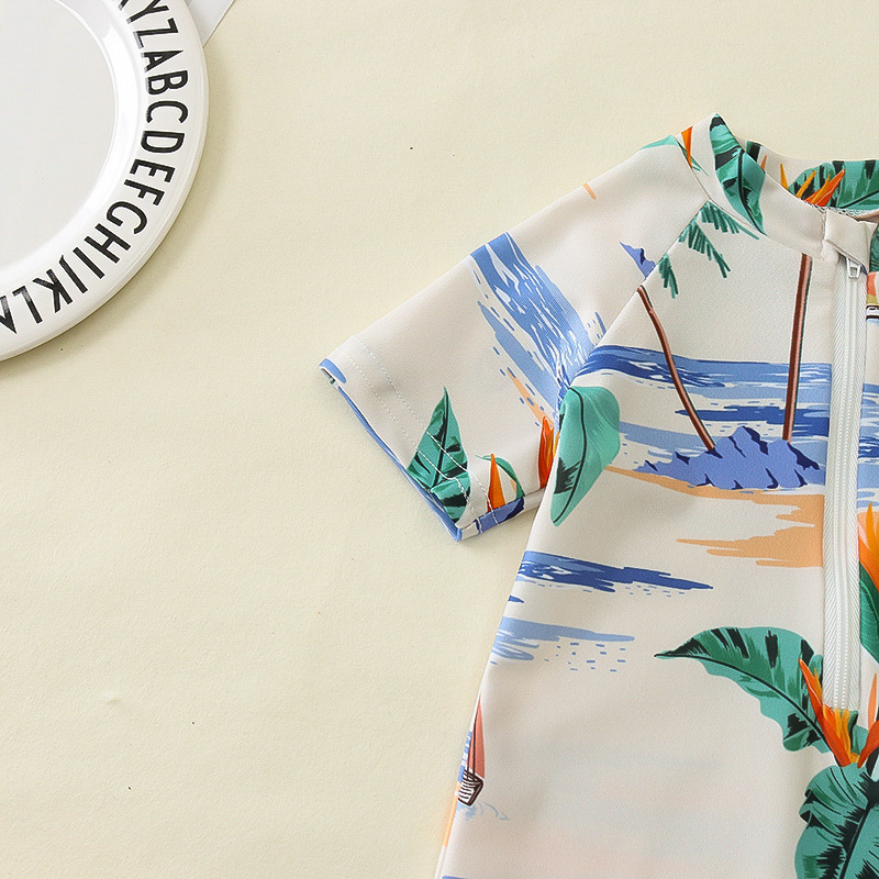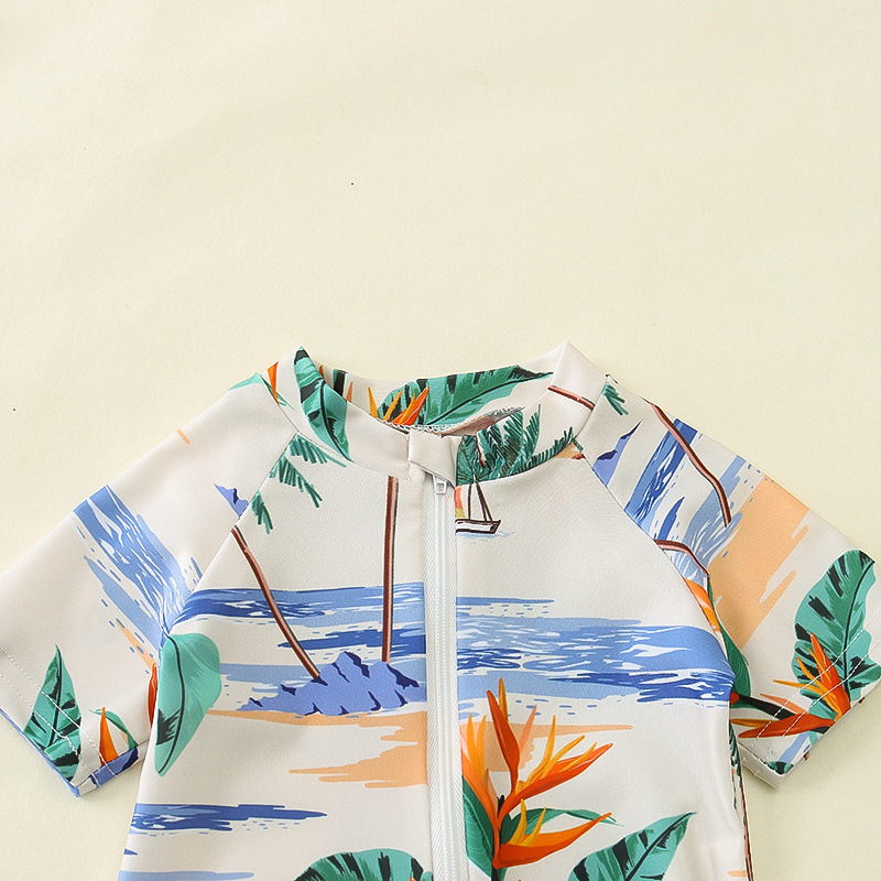 국경 간 아동복 소년 바다 테마 전체 인쇄 원피스 수영복 소년 아기 반 오픈 원피스 수영복 어린이 수영복 0-