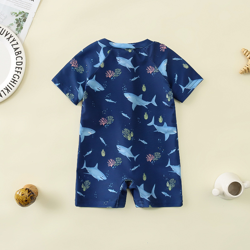국경 간 아동복 소년 바다 테마 전체 인쇄 원피스 수영복 소년 아기 반 오픈 원피스 수영복 어린이 수영복 0-스토어 가기