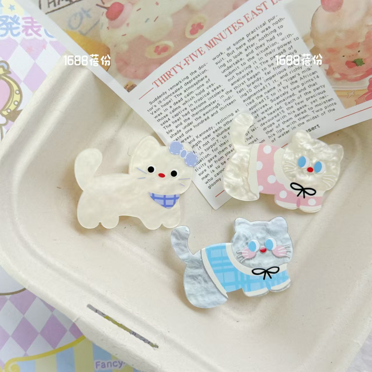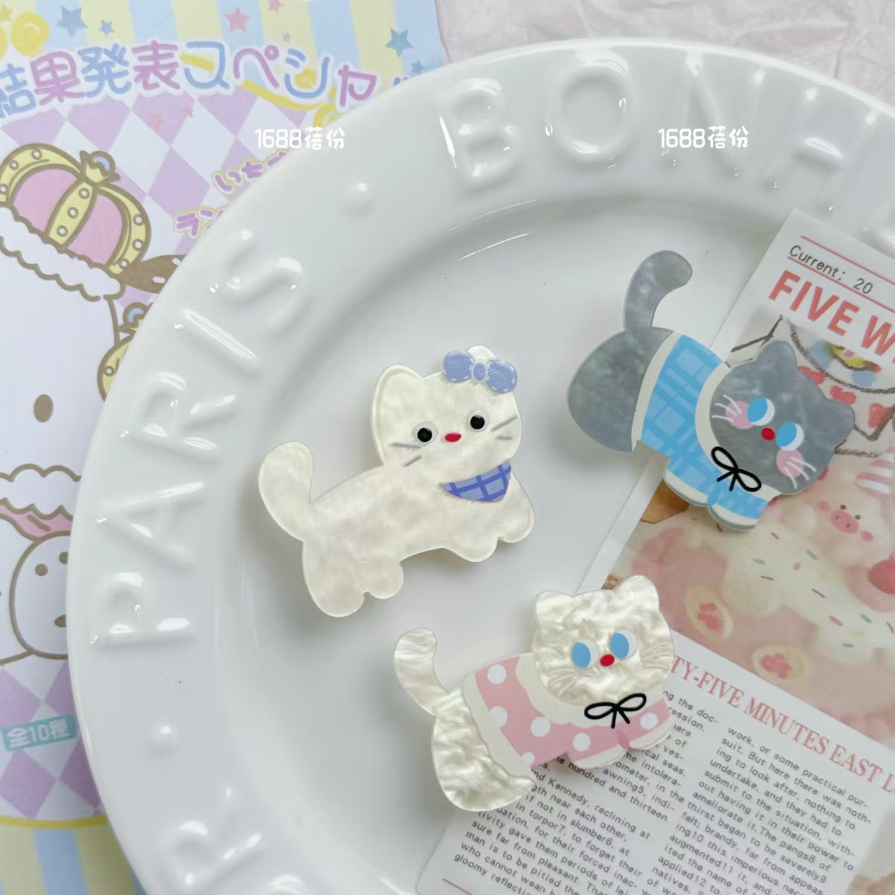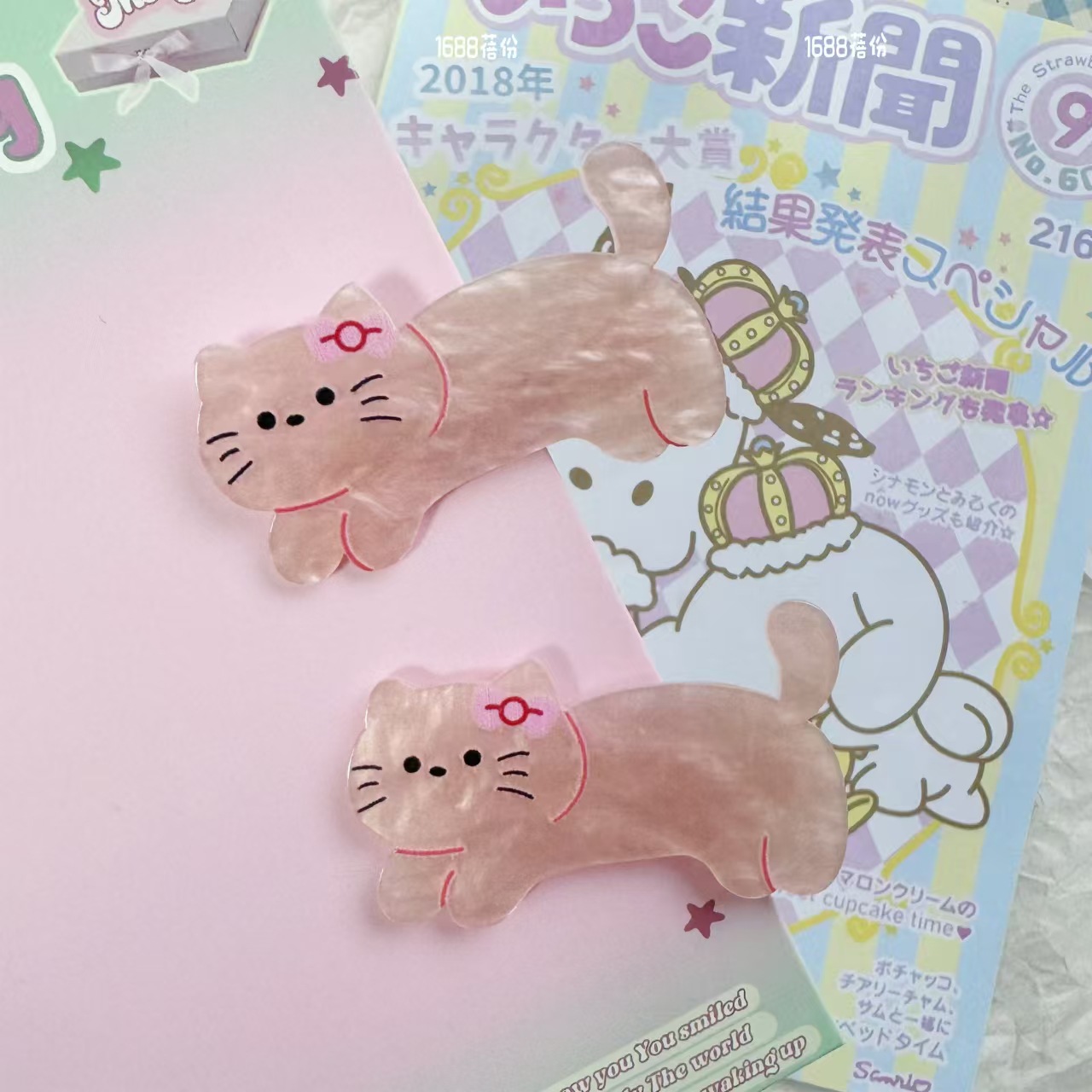 만화 귀여운 아크릴 새끼 고양이 헤어핀 달콤한 소녀의 깨진 머리 프린지 프린지 사이드 클립 어린이 학생 헤어 액세서리