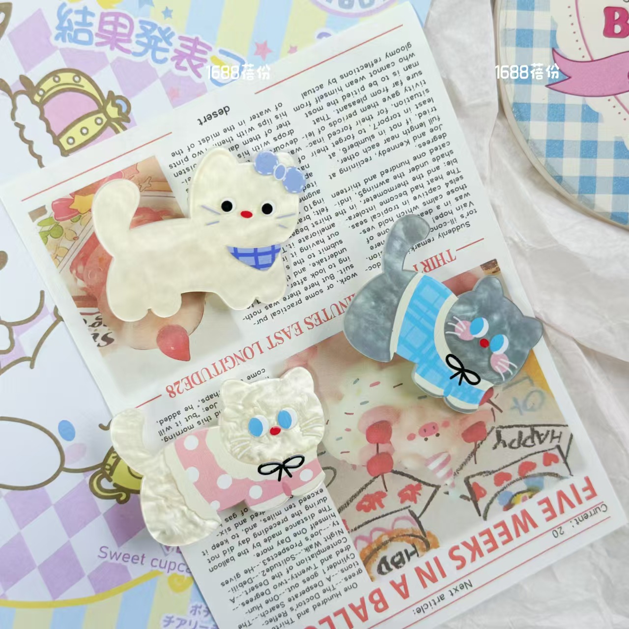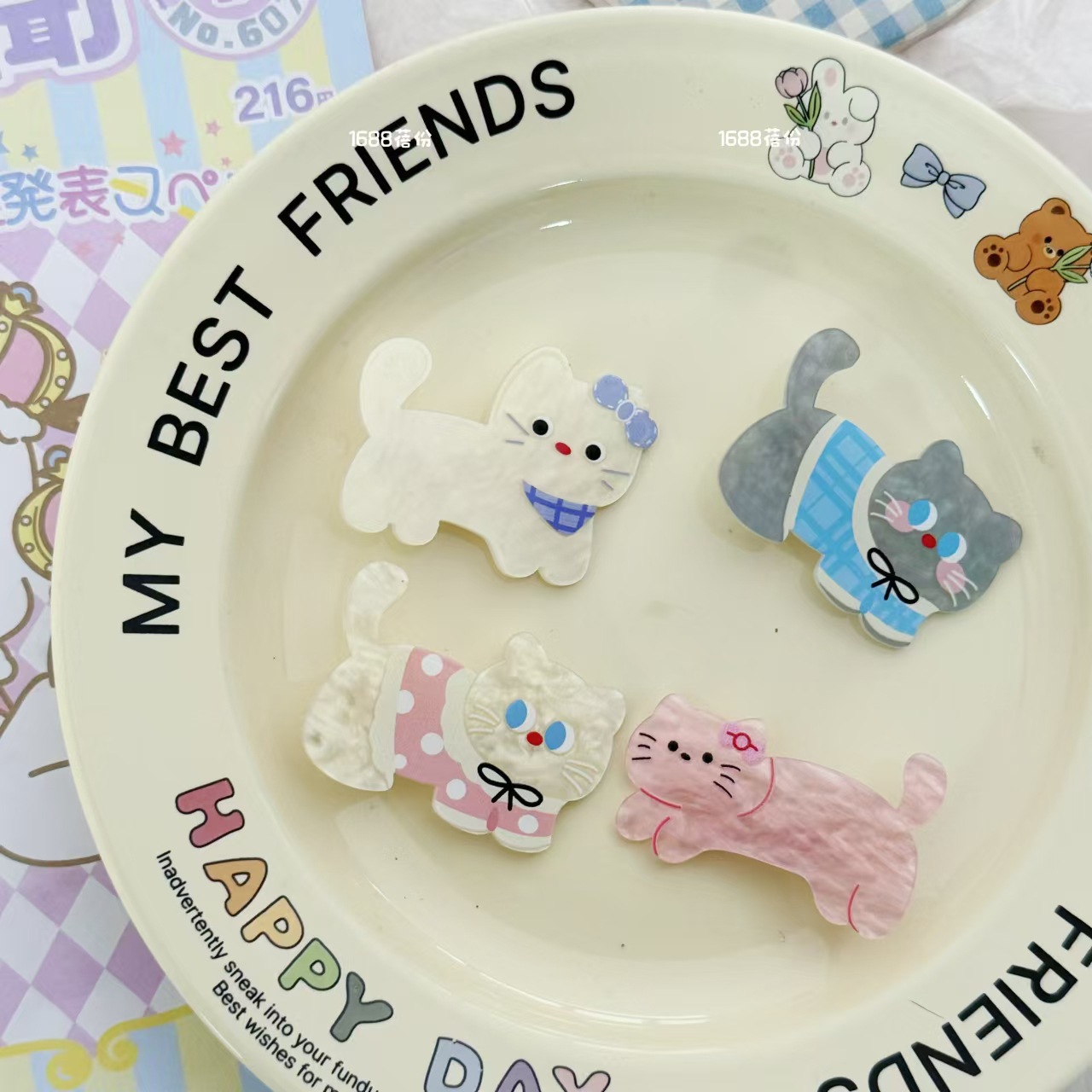 만화 귀여운 아크릴 새끼 고양이 헤어핀 달콤한 소녀의 깨진 머리 프린지 프린지 사이드 클립 어린이 학생 헤어 액세서리스토어 가기