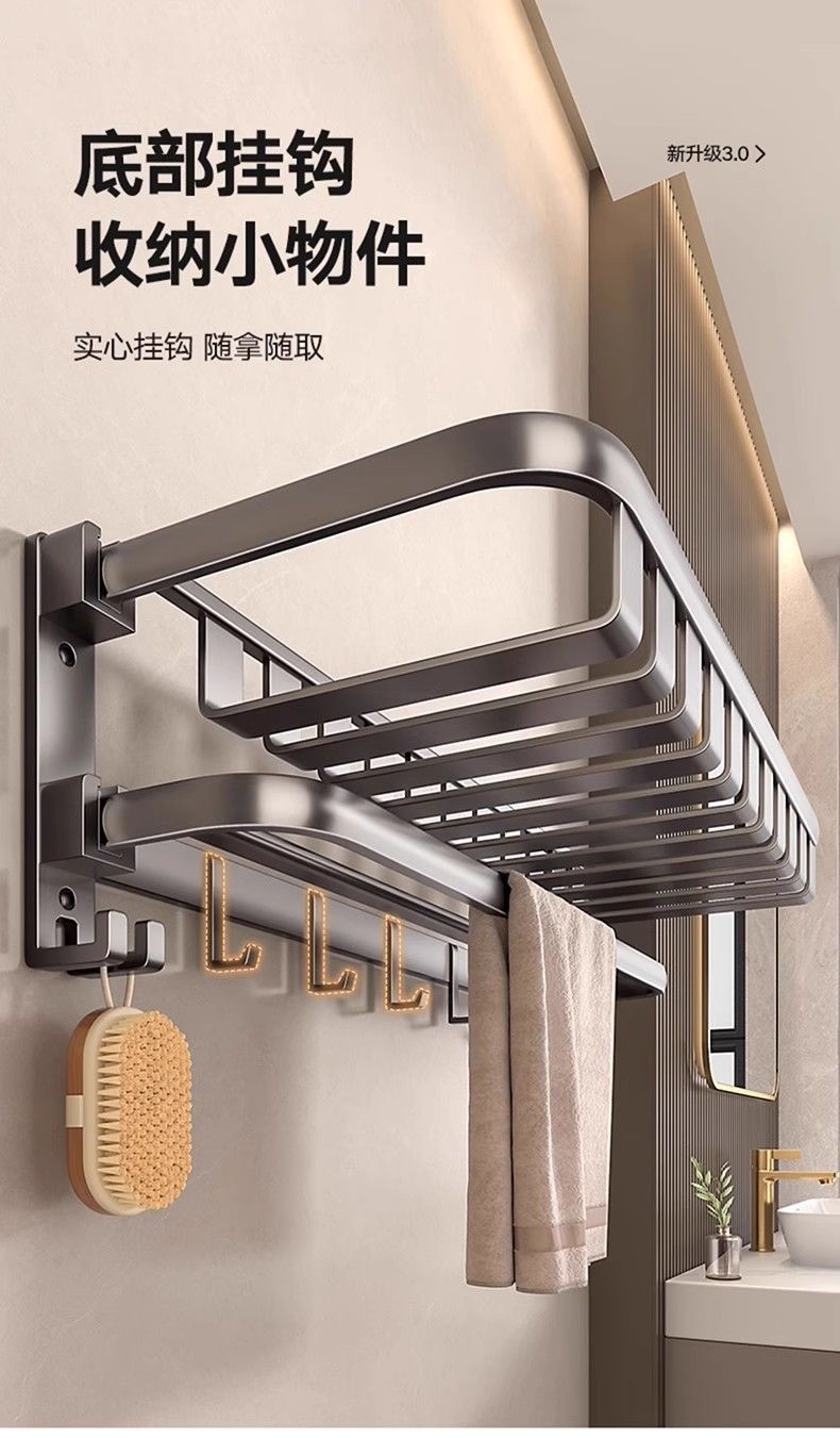 총 회색 펀치없는 공간 알루미늄 욕실 그물 바구니 랙 욕실 옷 인공물 접이식 목욕 타월 랙