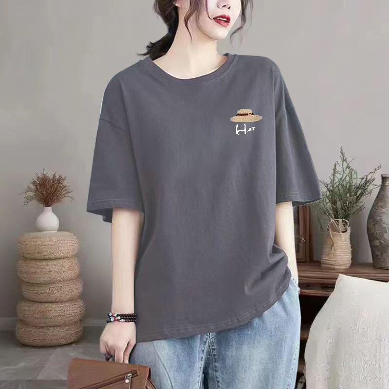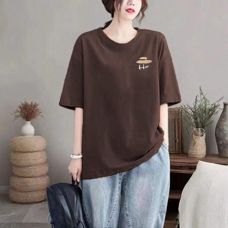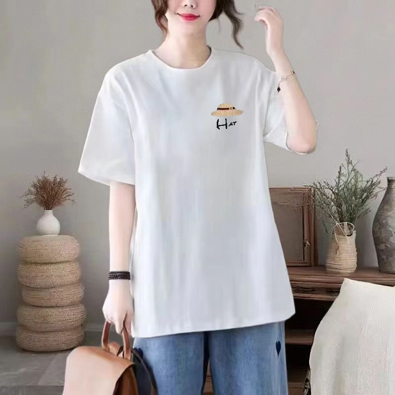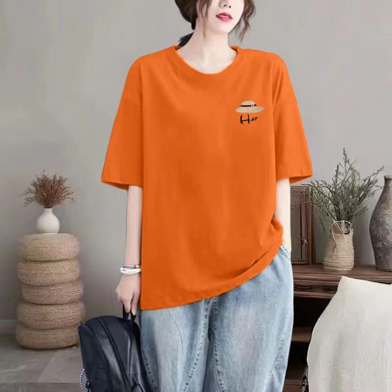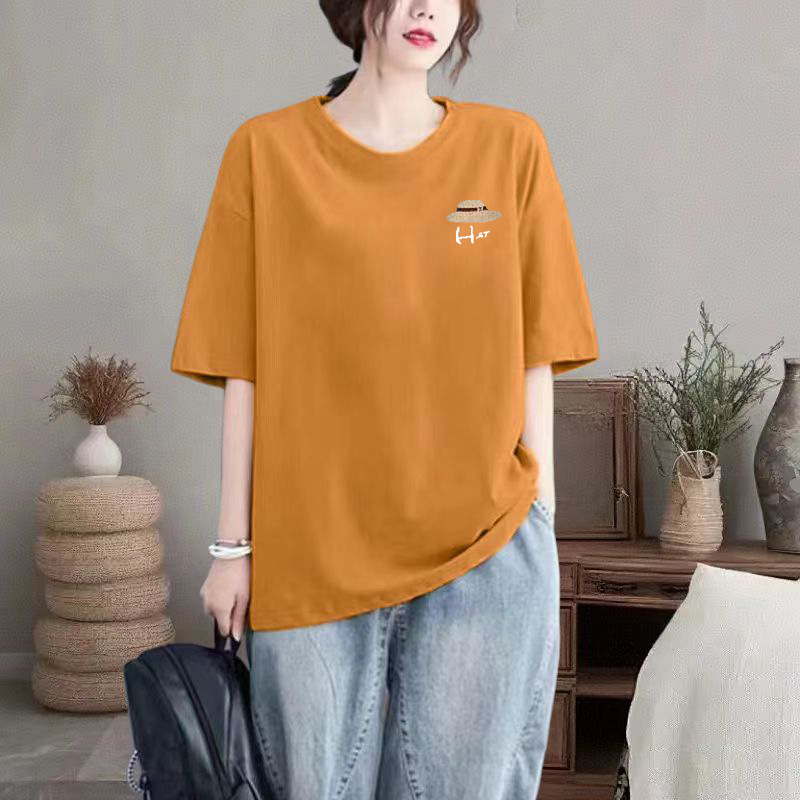 중간 길이의 배를 가려주는 상의 2026년 신상 100% 반팔 티셔츠 여성 여름용 큰 사이즈 루즈핏 니치 캐주얼 반팔스토어 가기