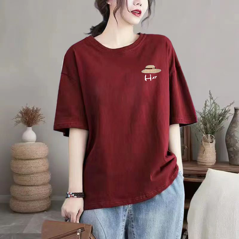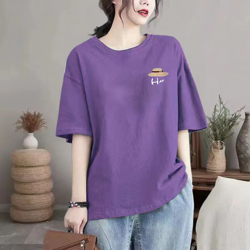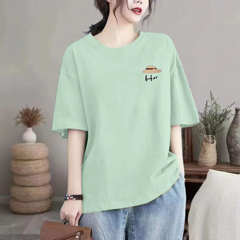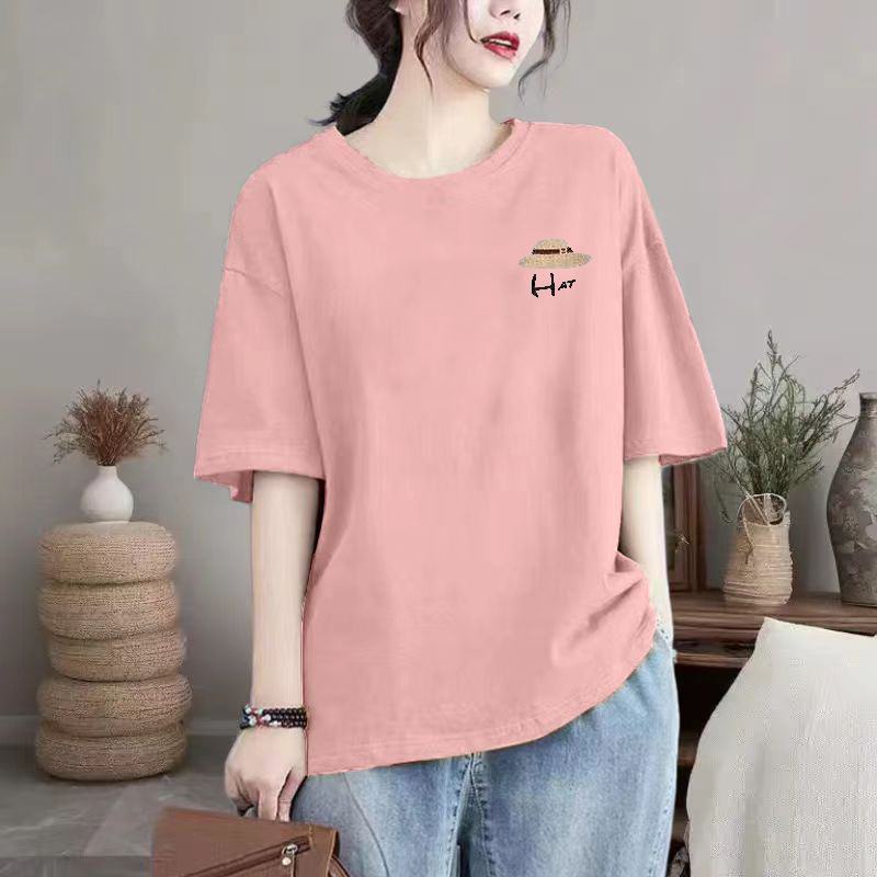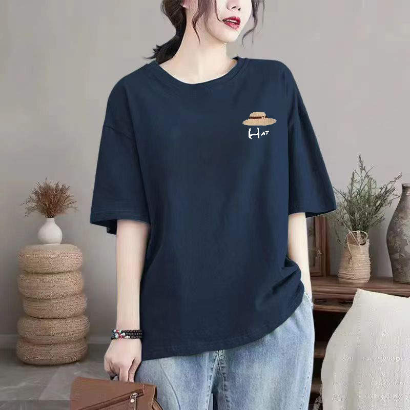 중간 길이의 배를 가려주는 상의 2026년 신상 100% 반팔 티셔츠 여성 여름용 큰 사이즈 루즈핏 니치 캐주얼 반팔스토어 가기