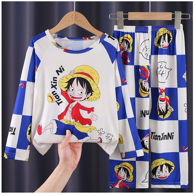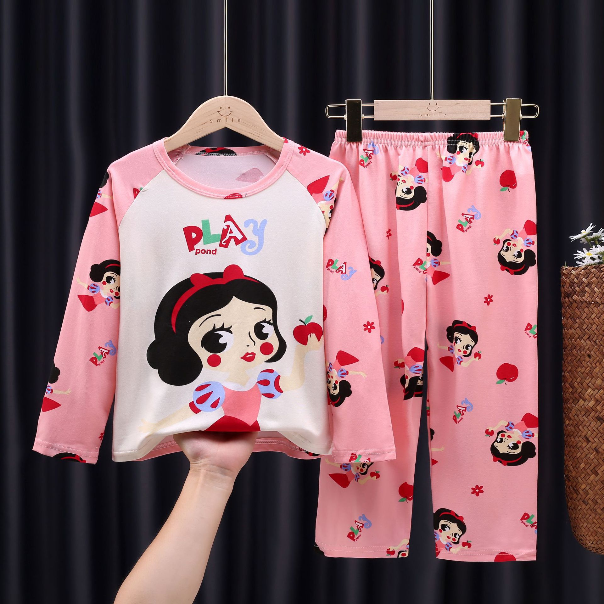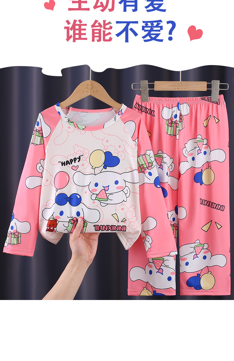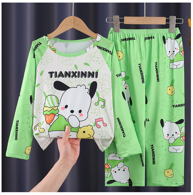 소년 소녀를위한 봄과 가을 어린이 잠옷 얇은 소년과 소녀 에어컨 옷 만화 긴 소매 중 큰 어린이 가정 옷
