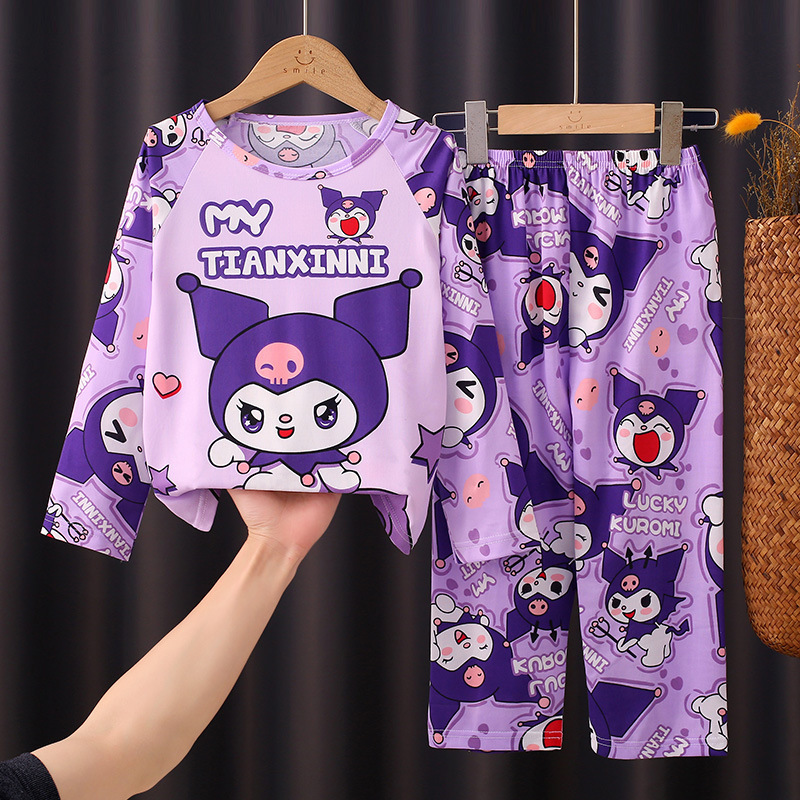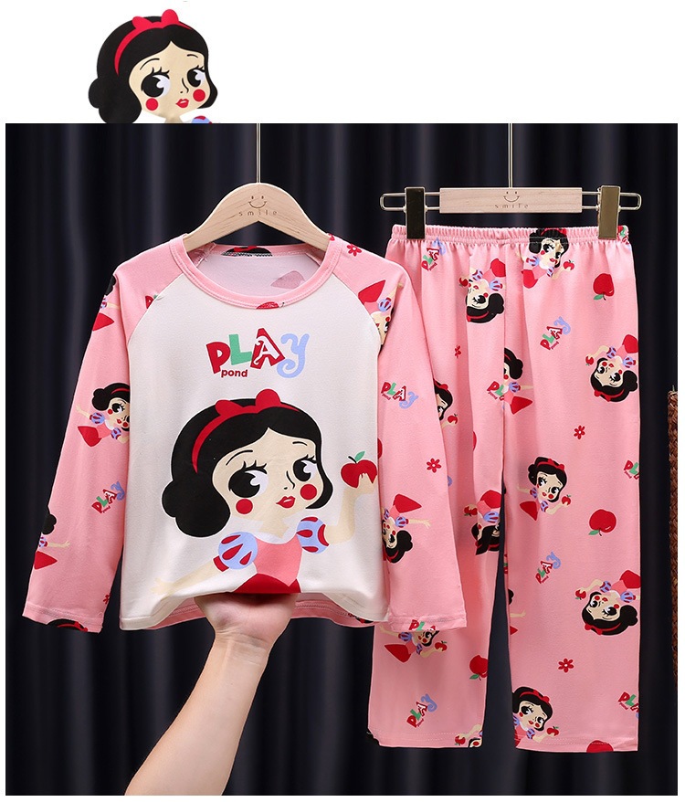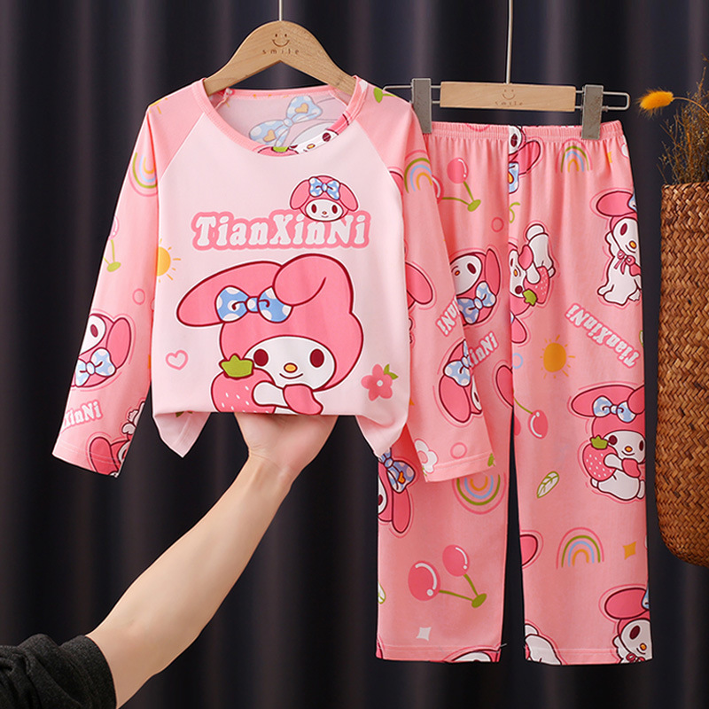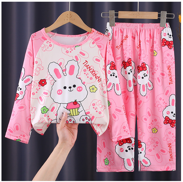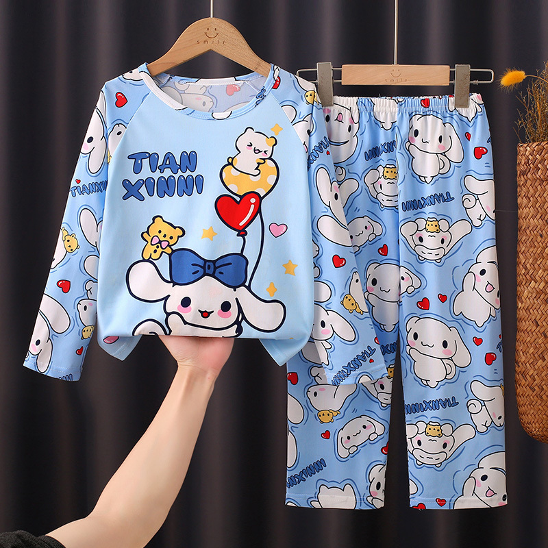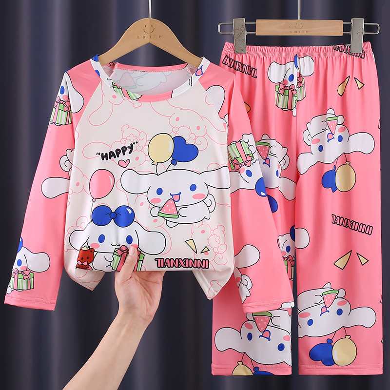 소년 소녀를위한 봄과 가을 어린이 잠옷 얇은 소년과 소녀 에어컨 옷 만화 긴 소매 중 큰 어린이 가정 옷