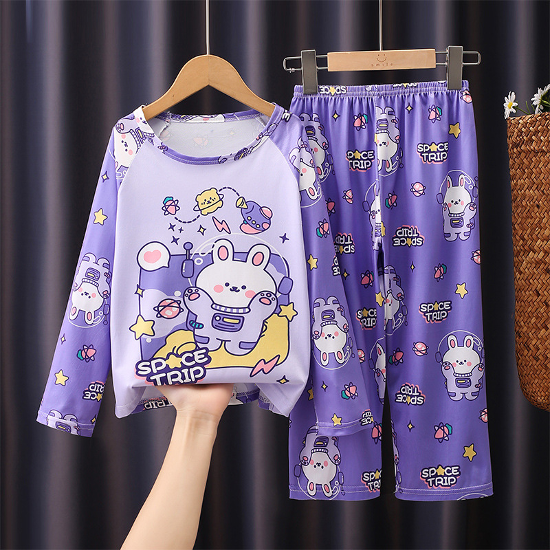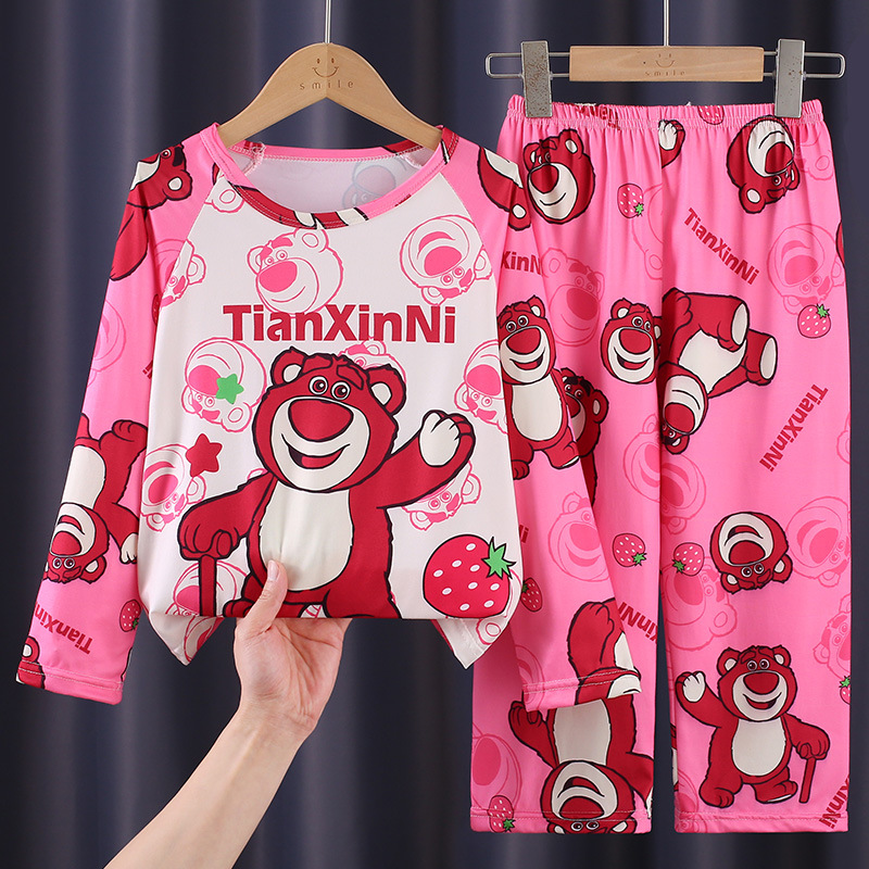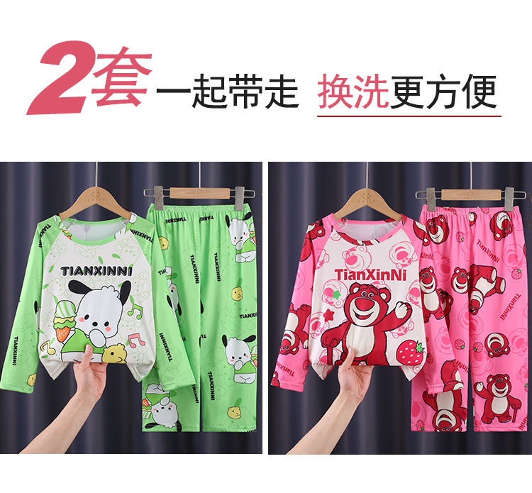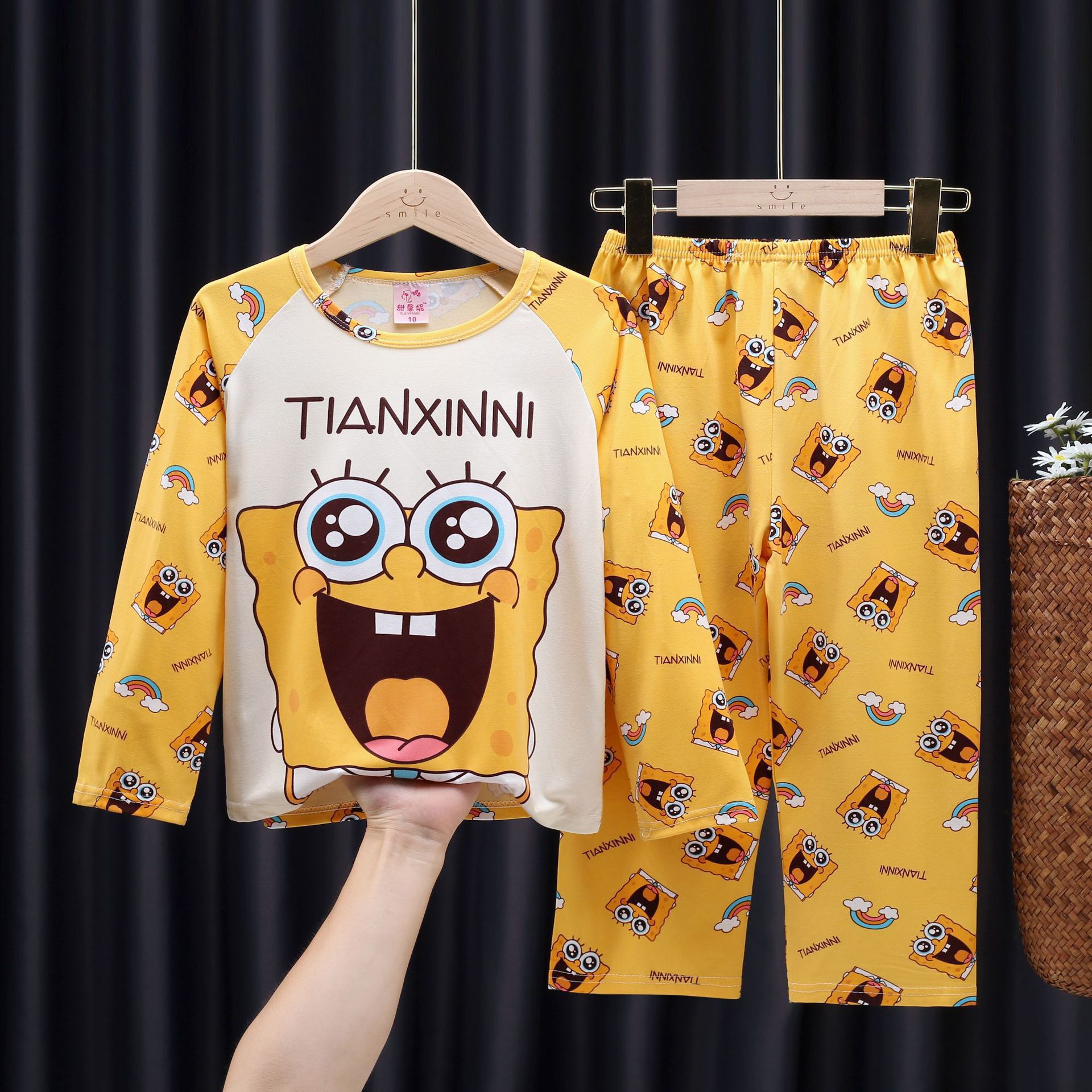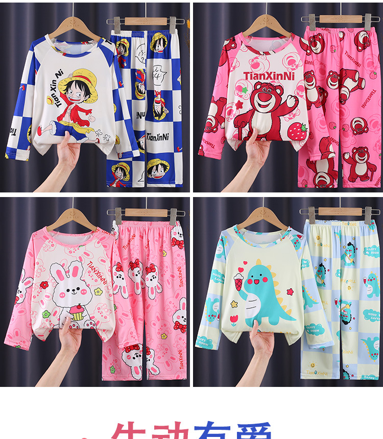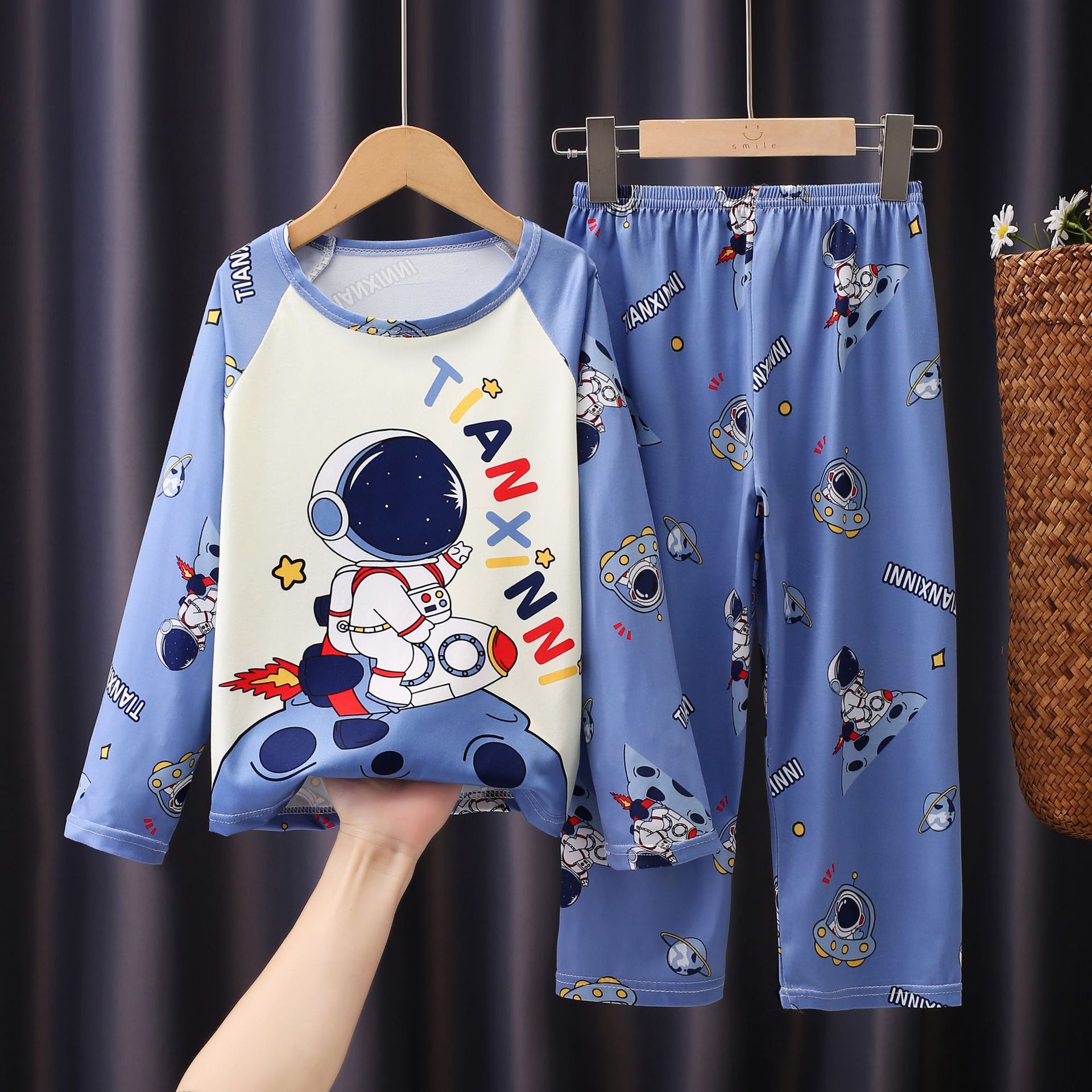 소년 소녀를위한 봄과 가을 어린이 잠옷 얇은 소년과 소녀 에어컨 옷 만화 긴 소매 중 큰 어린이 가정 옷스토어 가기