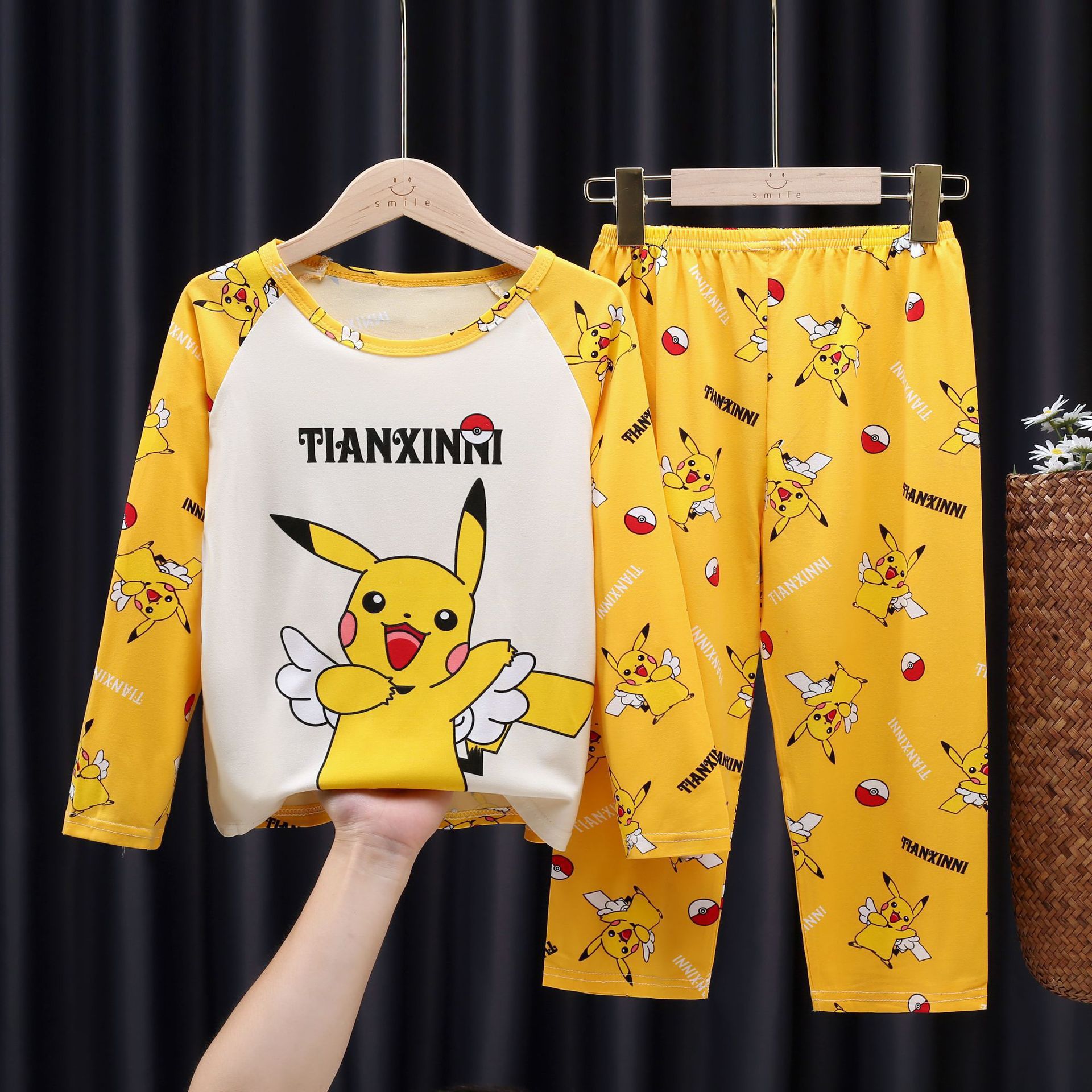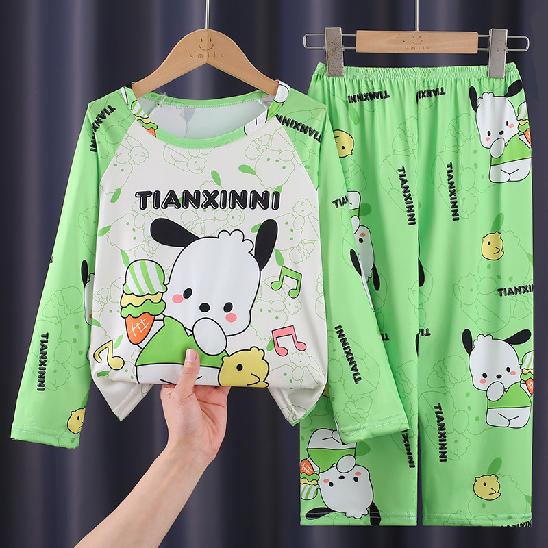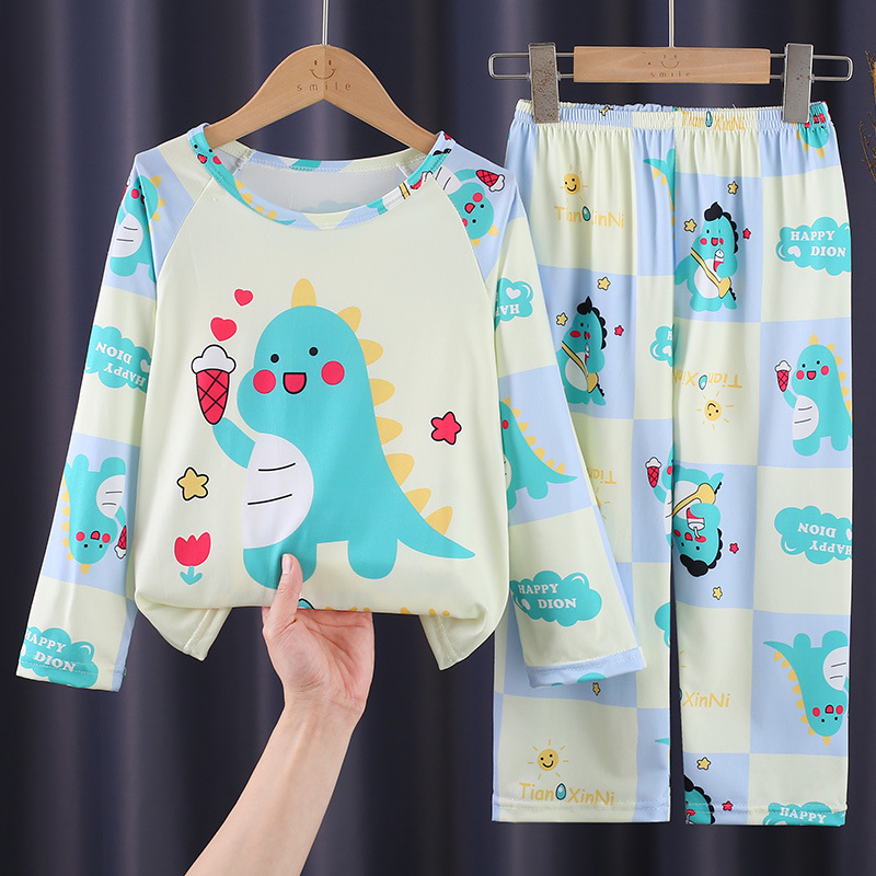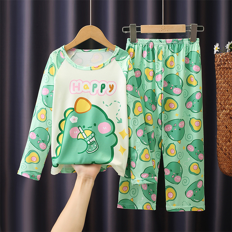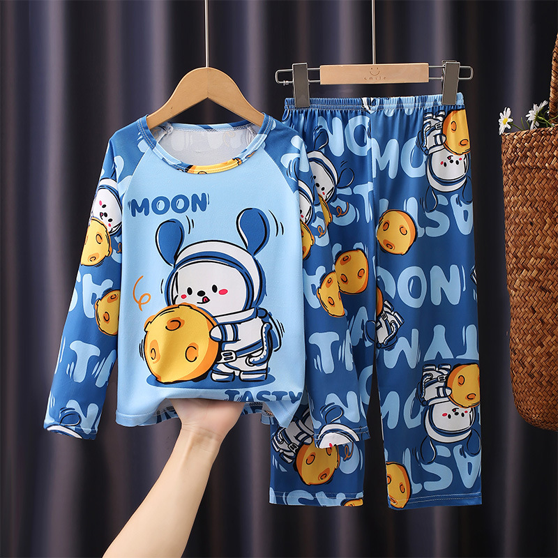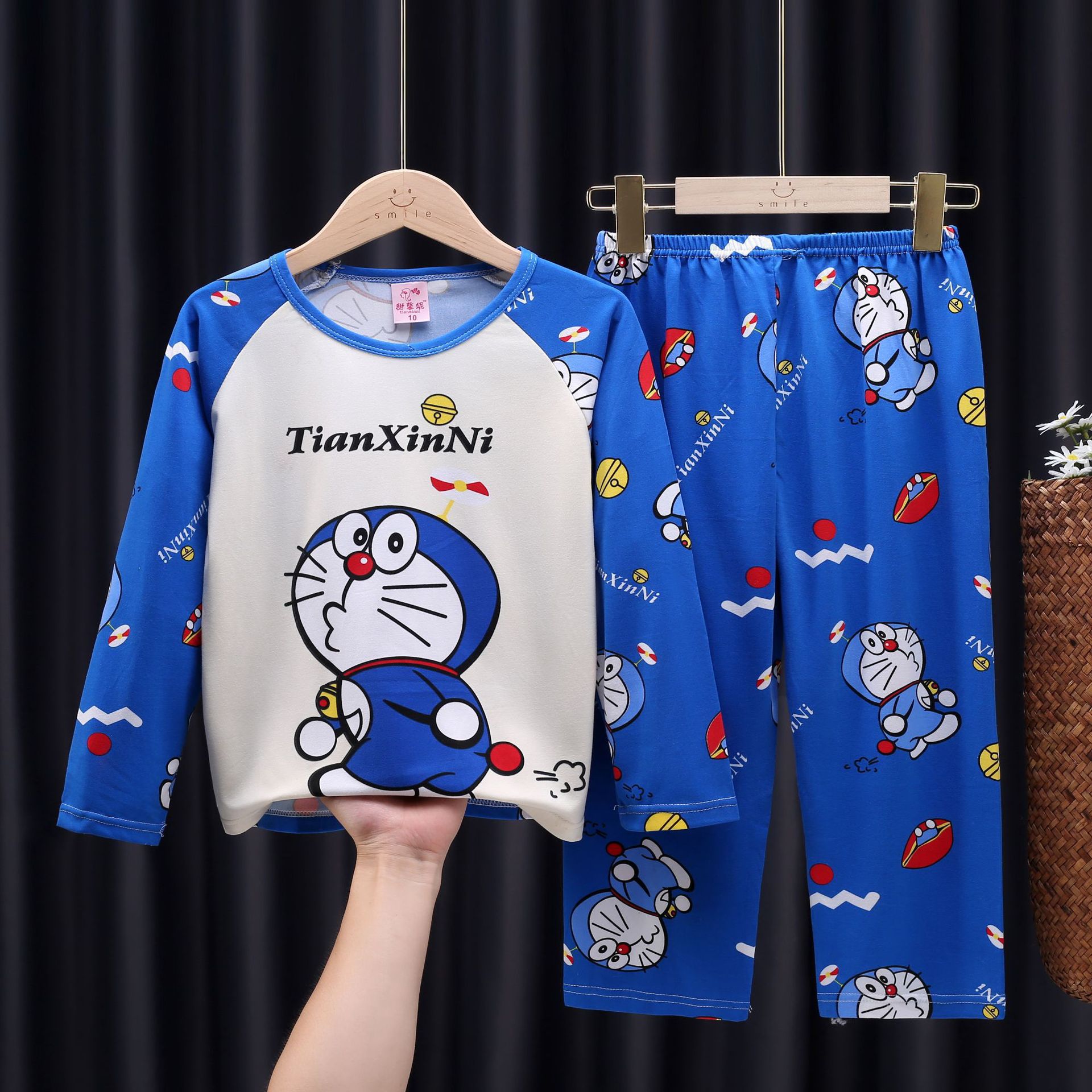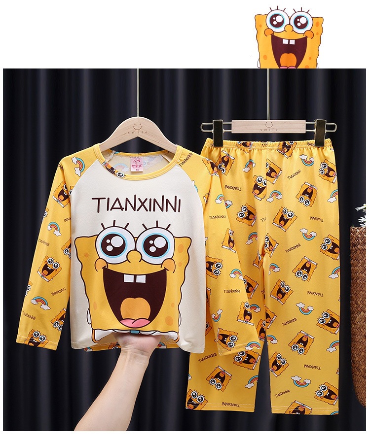 소년 소녀를위한 봄과 가을 어린이 잠옷 얇은 소년과 소녀 에어컨 옷 만화 긴 소매 중 큰 어린이 가정 옷스토어 가기
