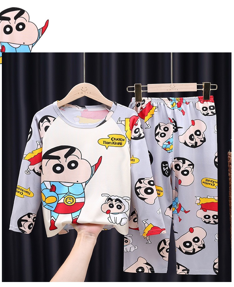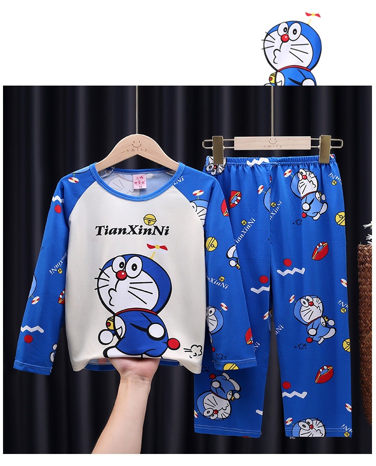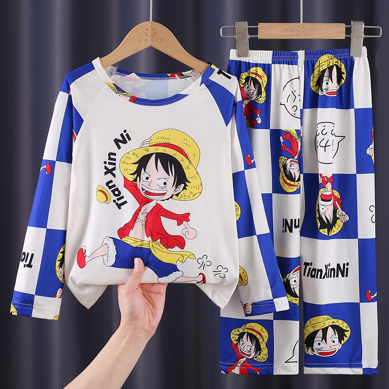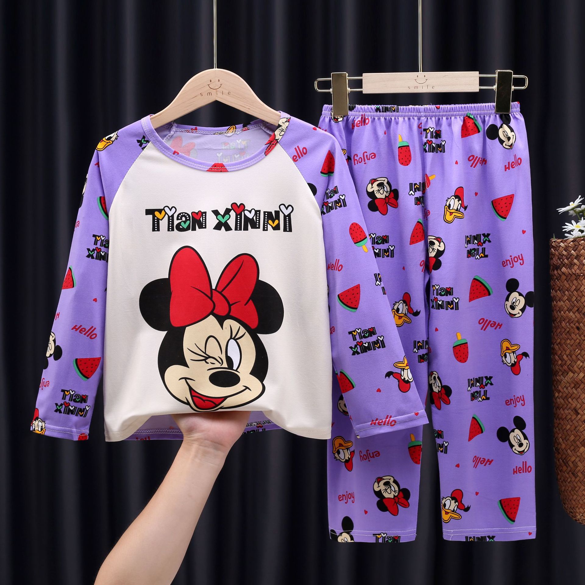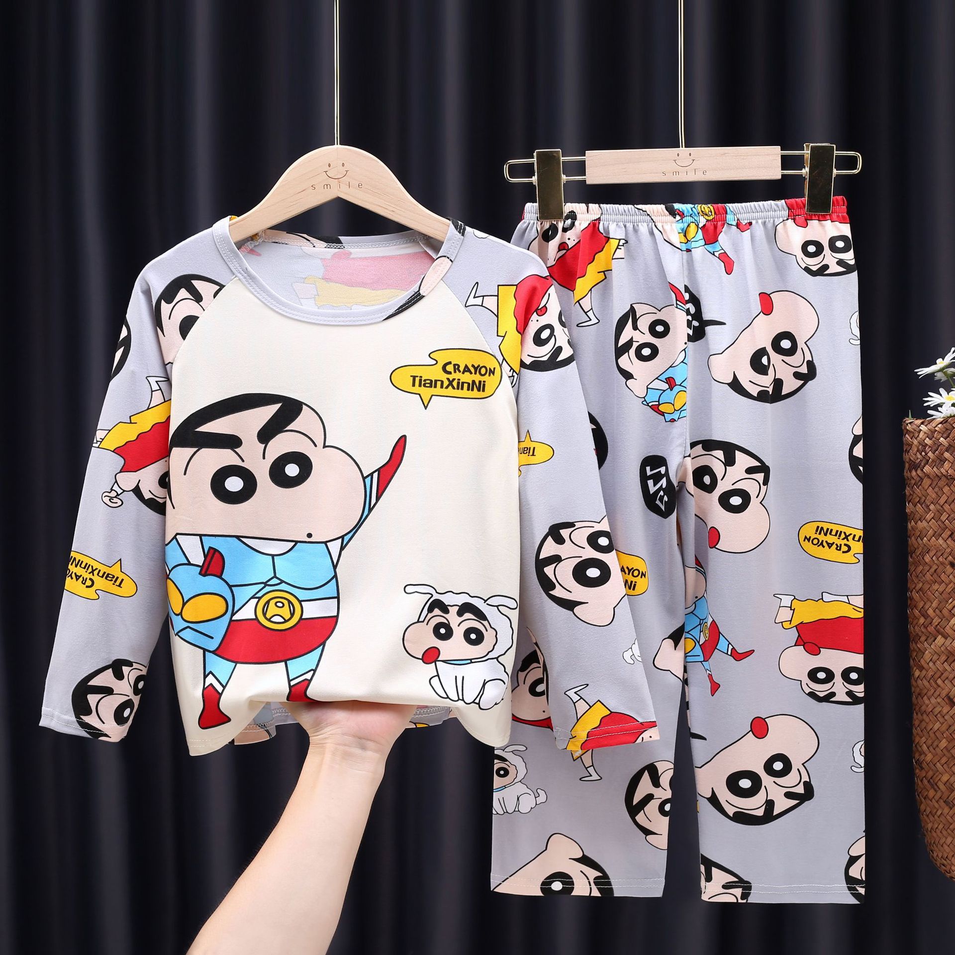 소년 소녀를위한 봄과 가을 어린이 잠옷 얇은 소년과 소녀 에어컨 옷 만화 긴 소매 중 큰 어린이 가정 옷스토어 가기