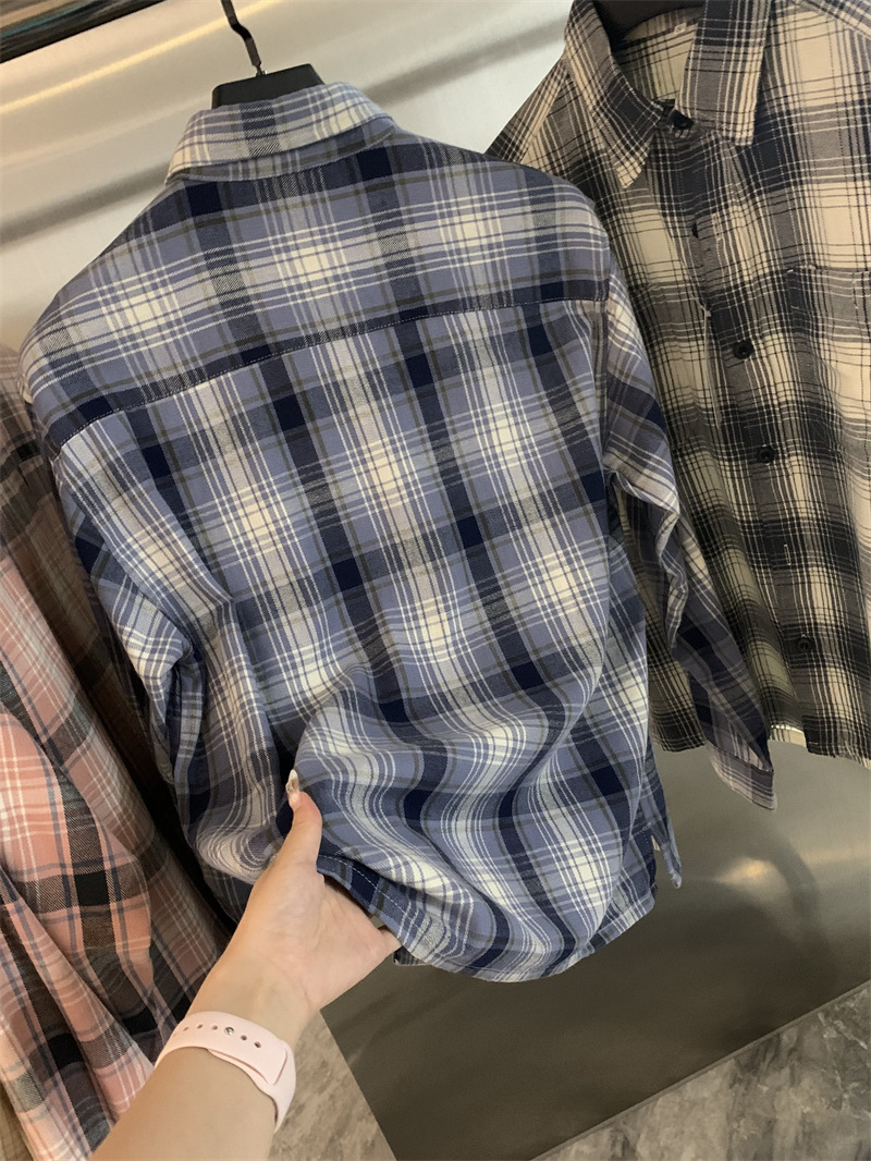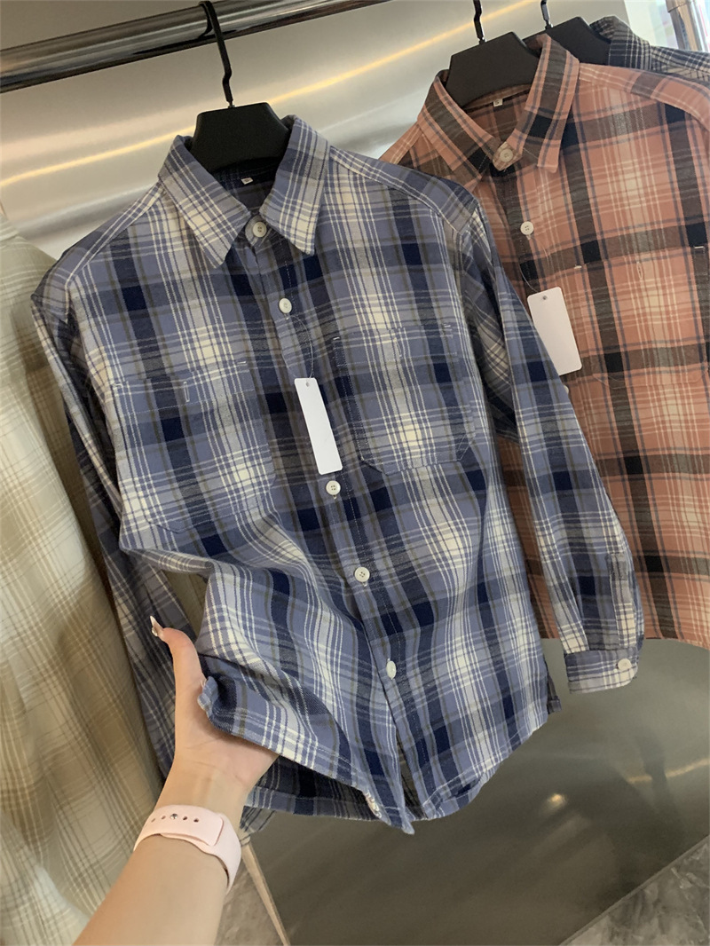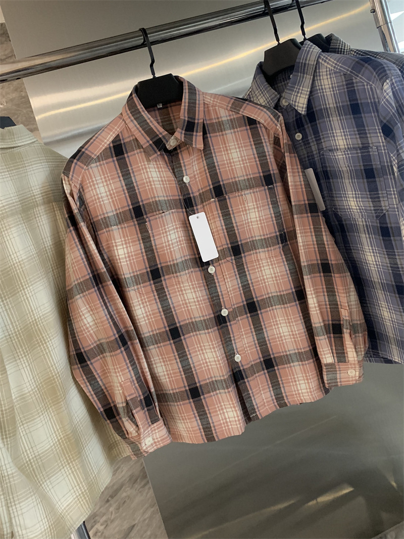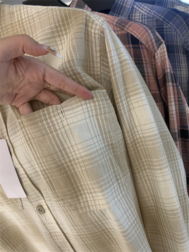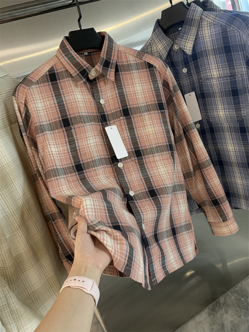 피팅 룸 인기! 씻은 면 부드러운 더블 포켓! 남성 옷깃 체크 무늬 긴 소매 셔츠 패션스토어 가기