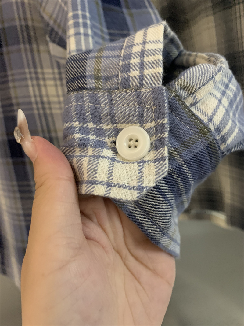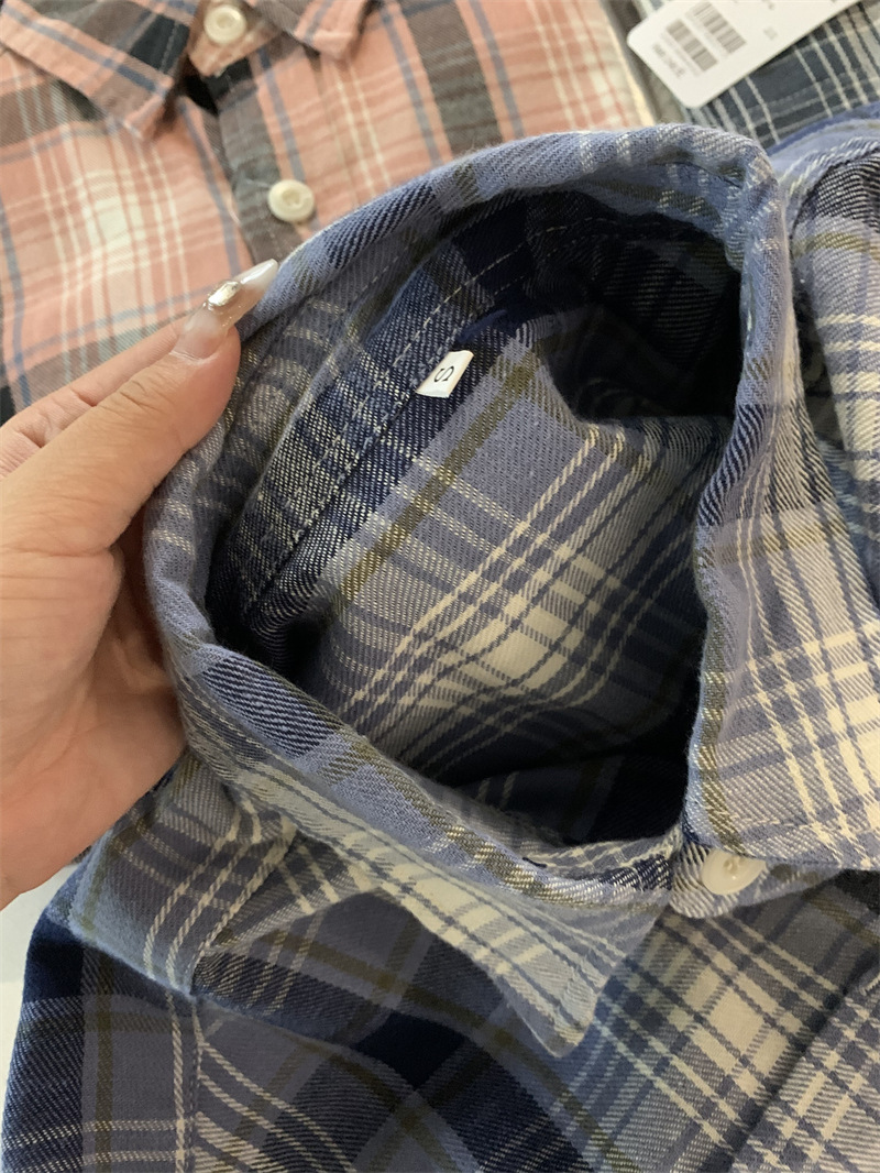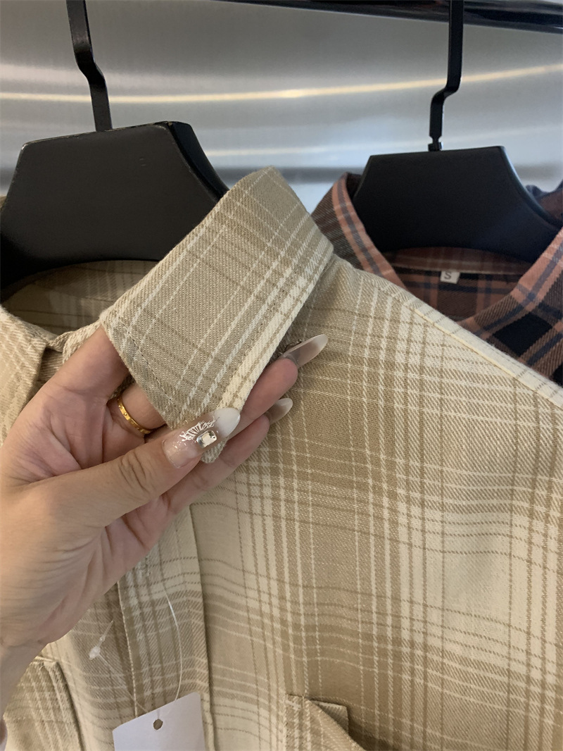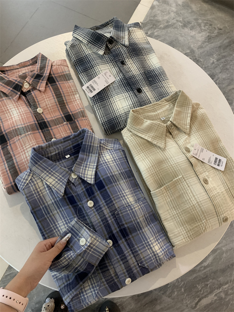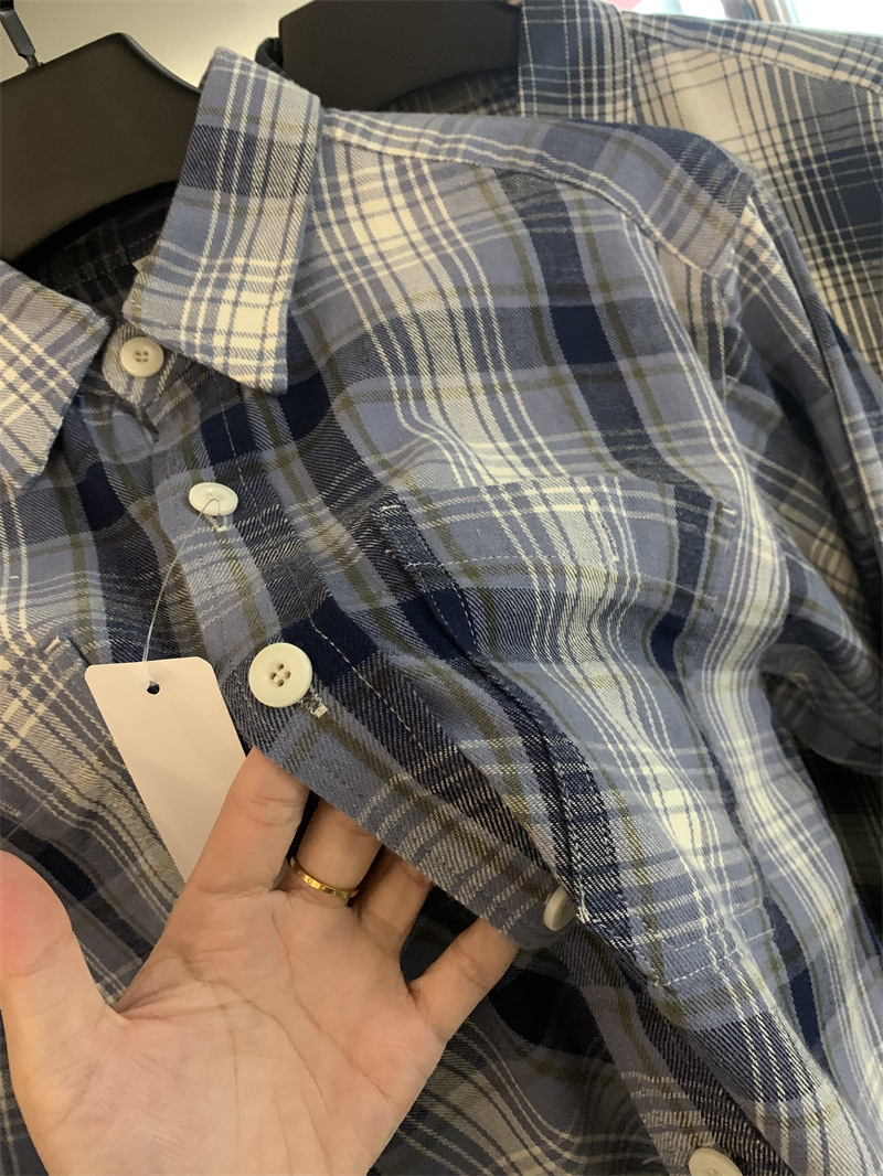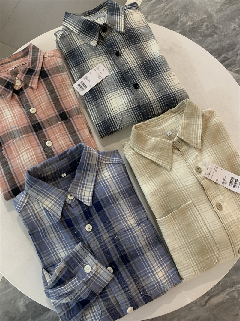 피팅 룸 인기! 씻은 면 부드러운 더블 포켓! 남성 옷깃 체크 무늬 긴 소매 셔츠 패션스토어 가기
