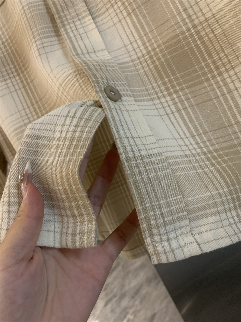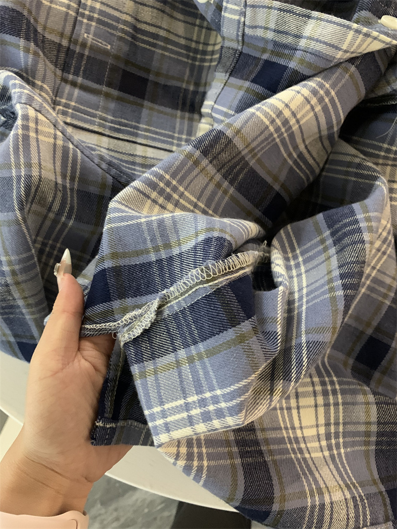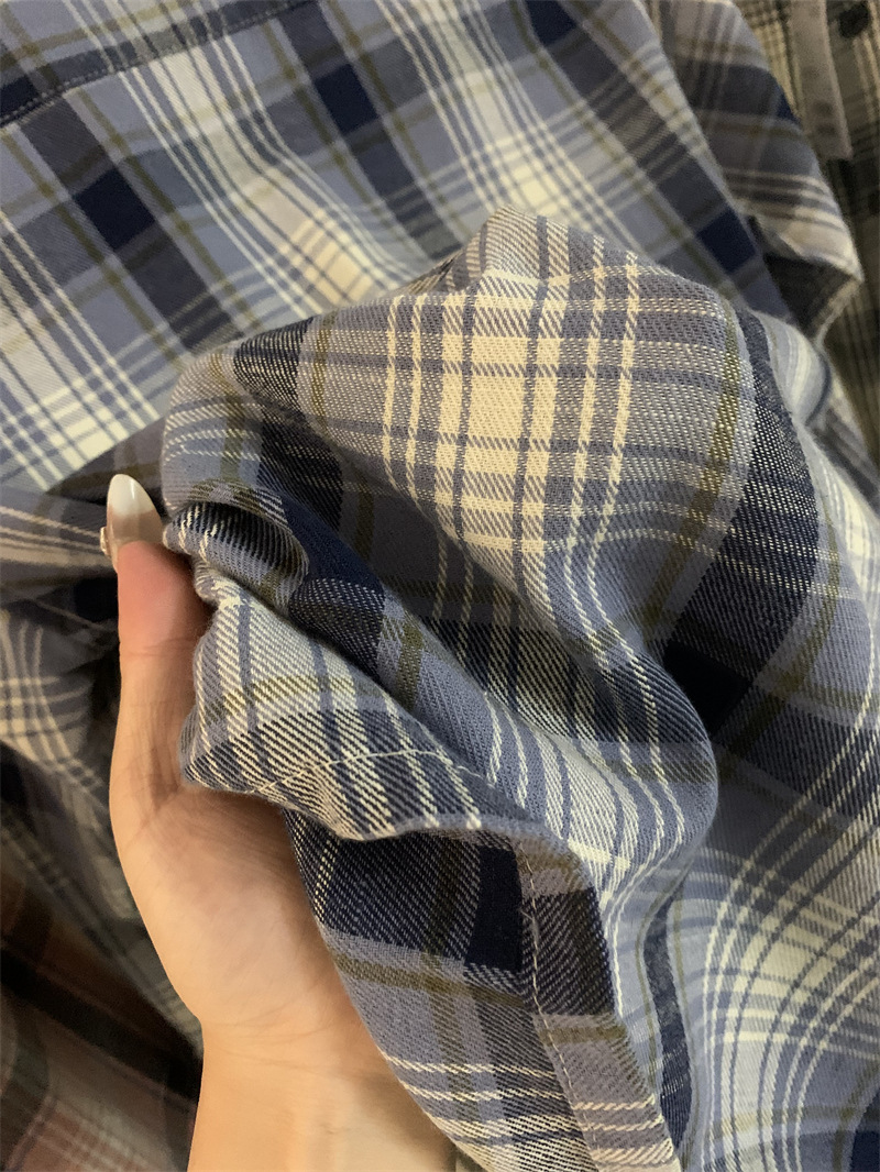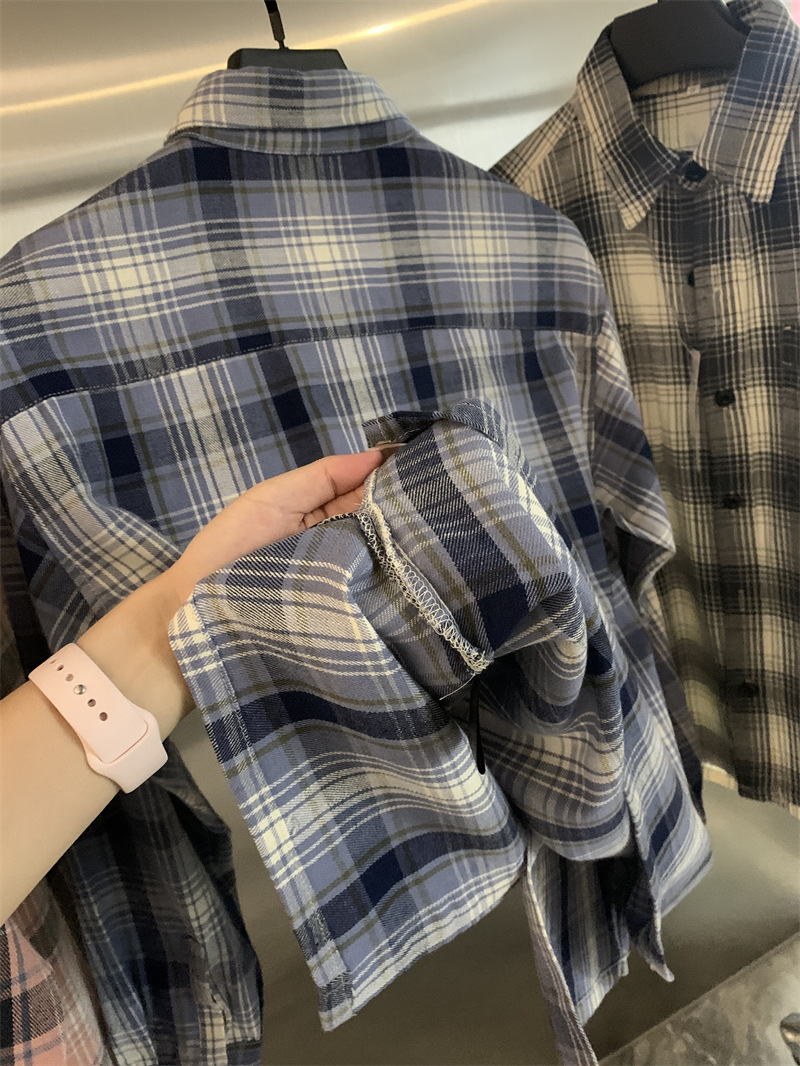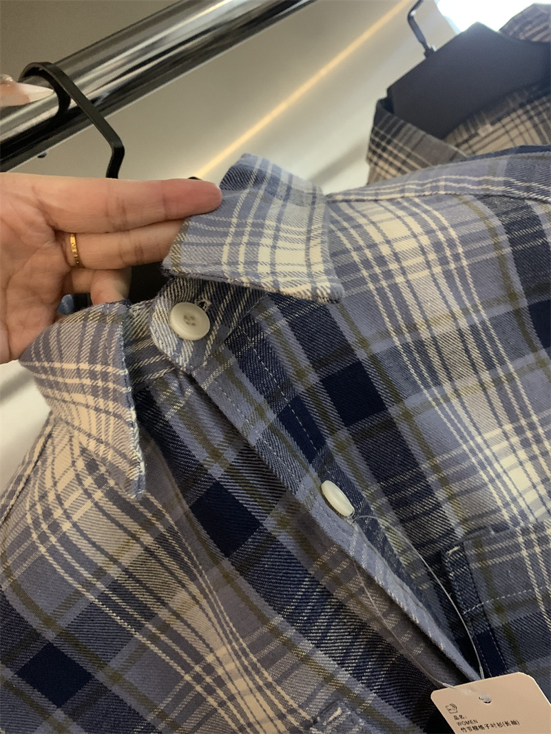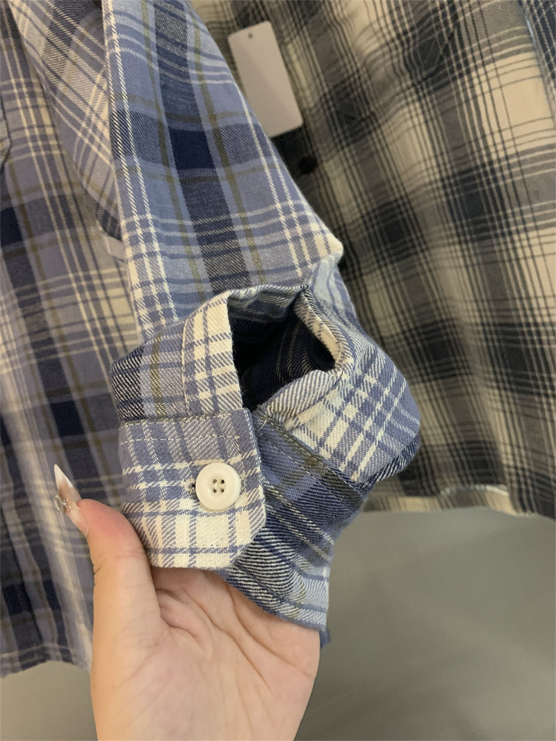 피팅 룸 인기! 씻은 면 부드러운 더블 포켓! 남성 옷깃 체크 무늬 긴 소매 셔츠 패션스토어 가기