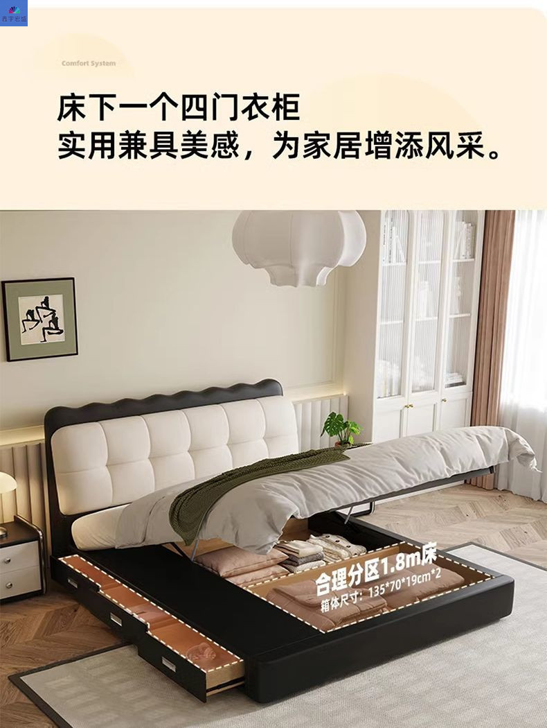 • 플래그십 가죽 침대 + 벨벳 라텍스 매트리스 + 캐비닛 2개