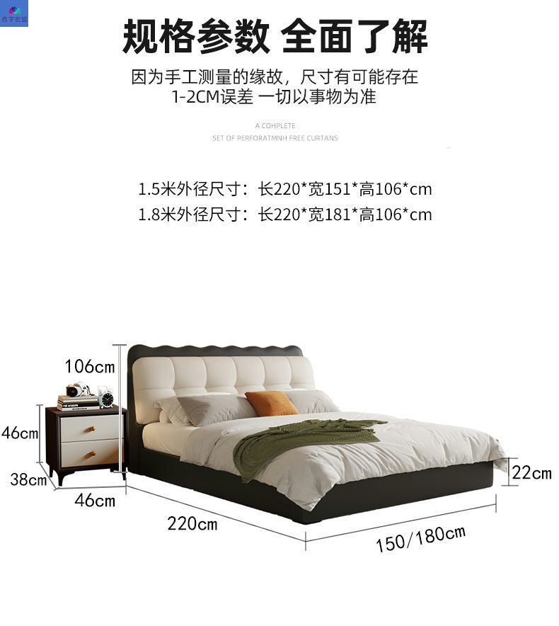 • 플래그십 가죽 침대 + 면 수면 매트리스 + 캐비닛 2개