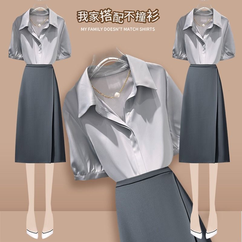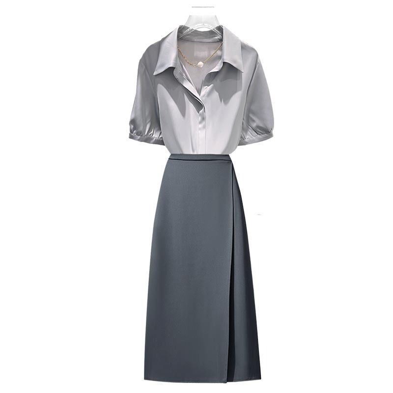 한국 스타일 여자 2024 여름 새로운 한국 스타일 얇은 올 매치 셔츠 스커트 여름 우아한 아우터 투 피스 세트