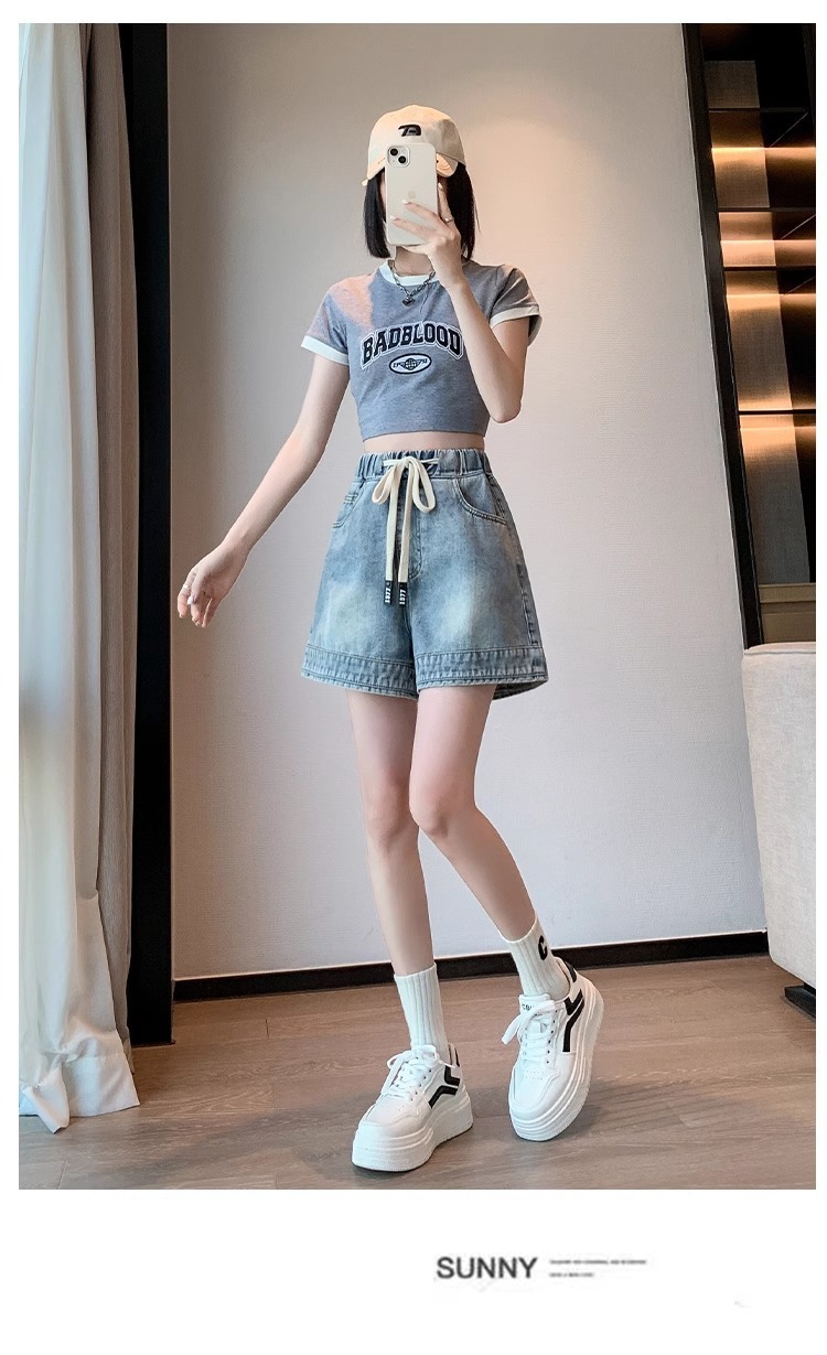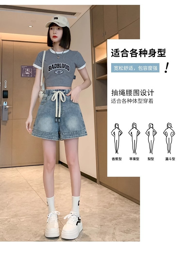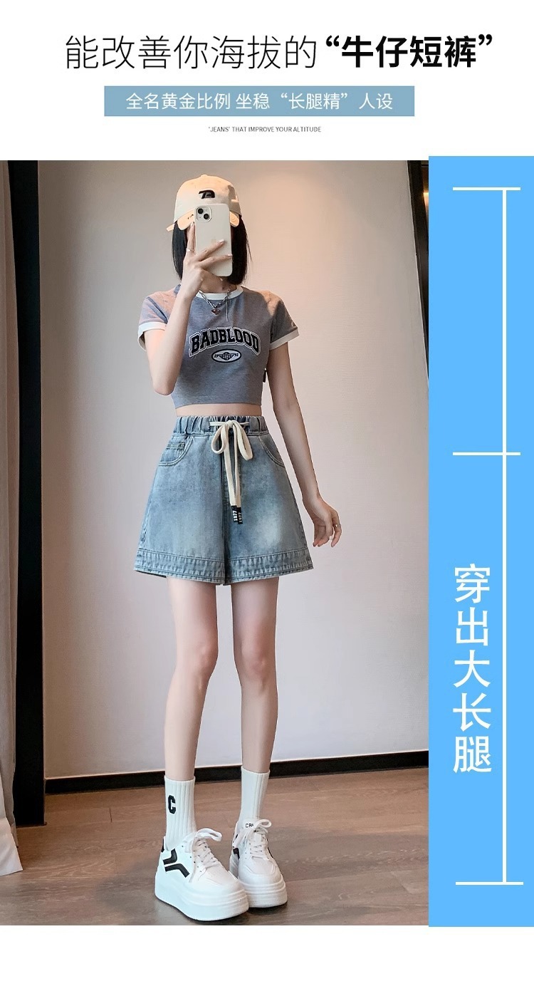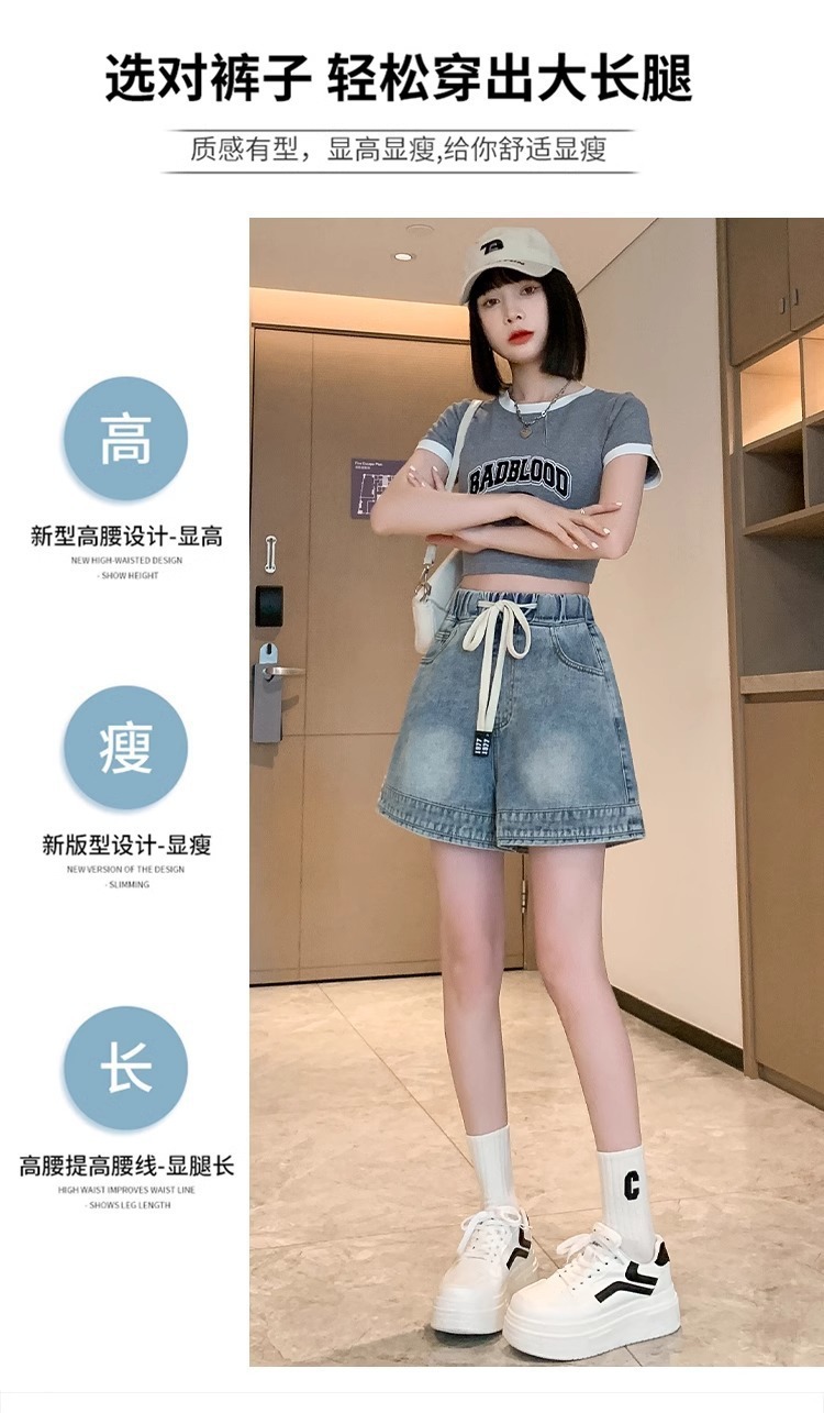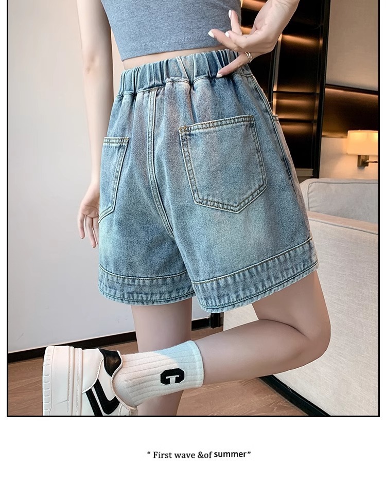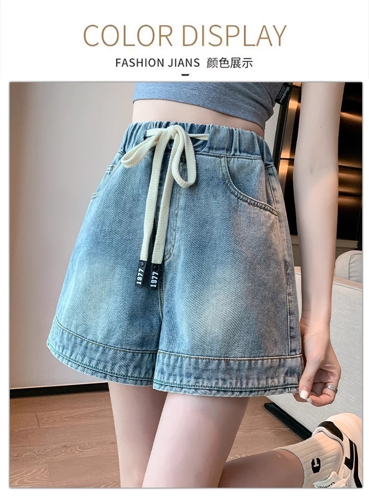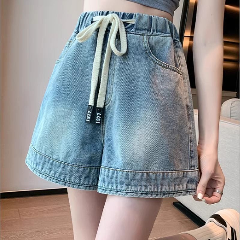 2024 최신 통통한 크기 탄성 허리 얇은 데님 반바지 여성의 느슨한 한국 스타일 높은 허리 넓은 다리 핫팬츠스토어 가기