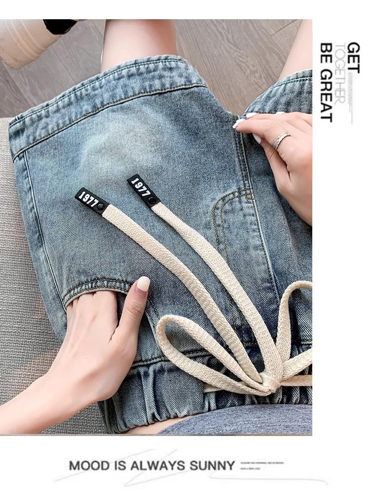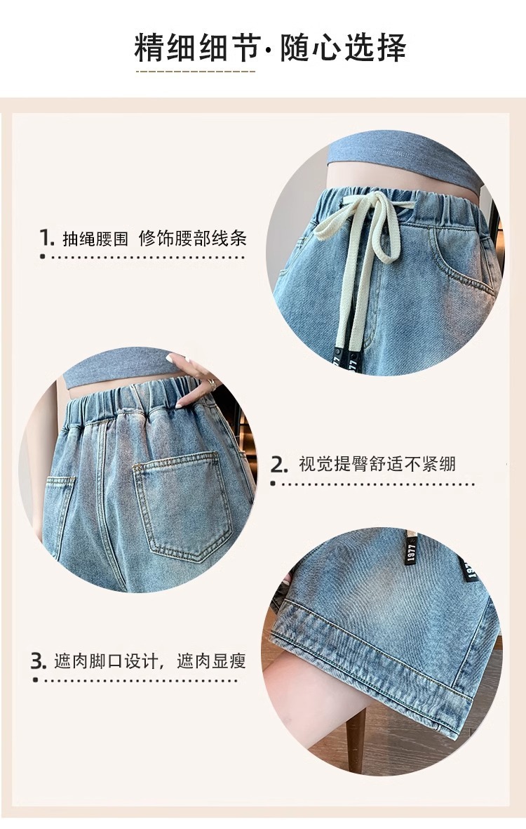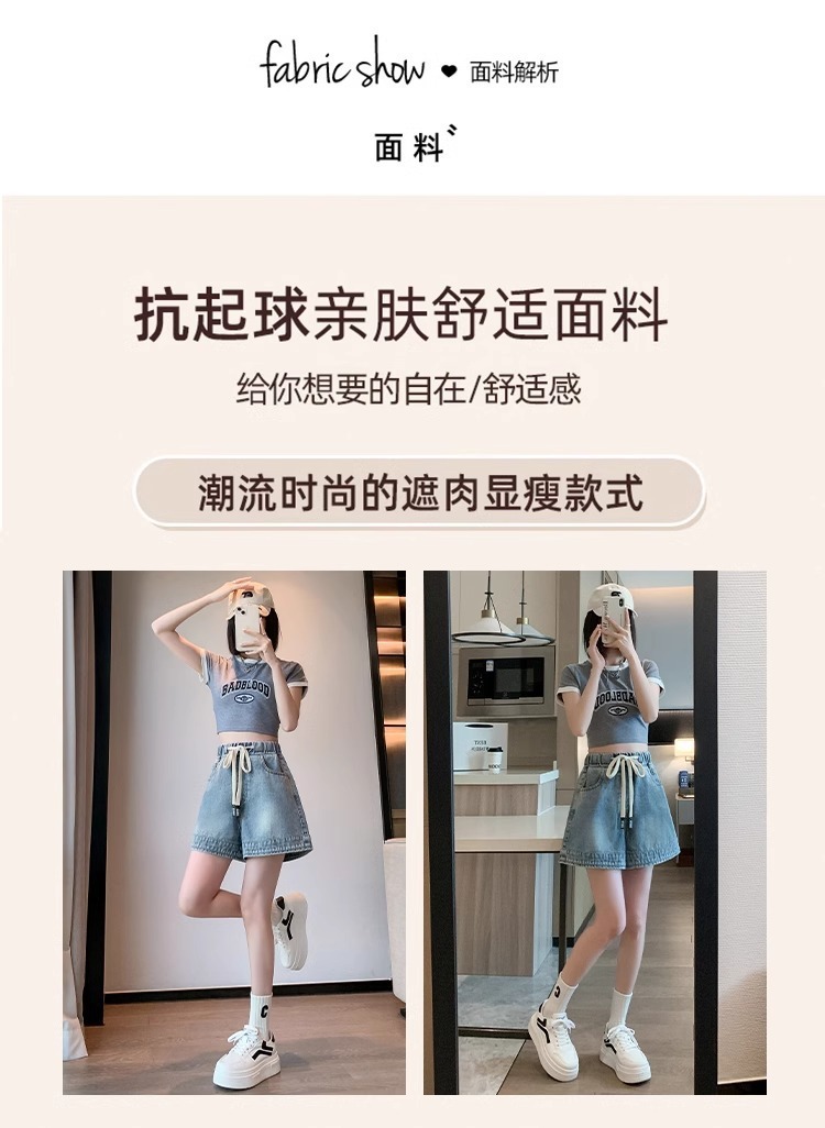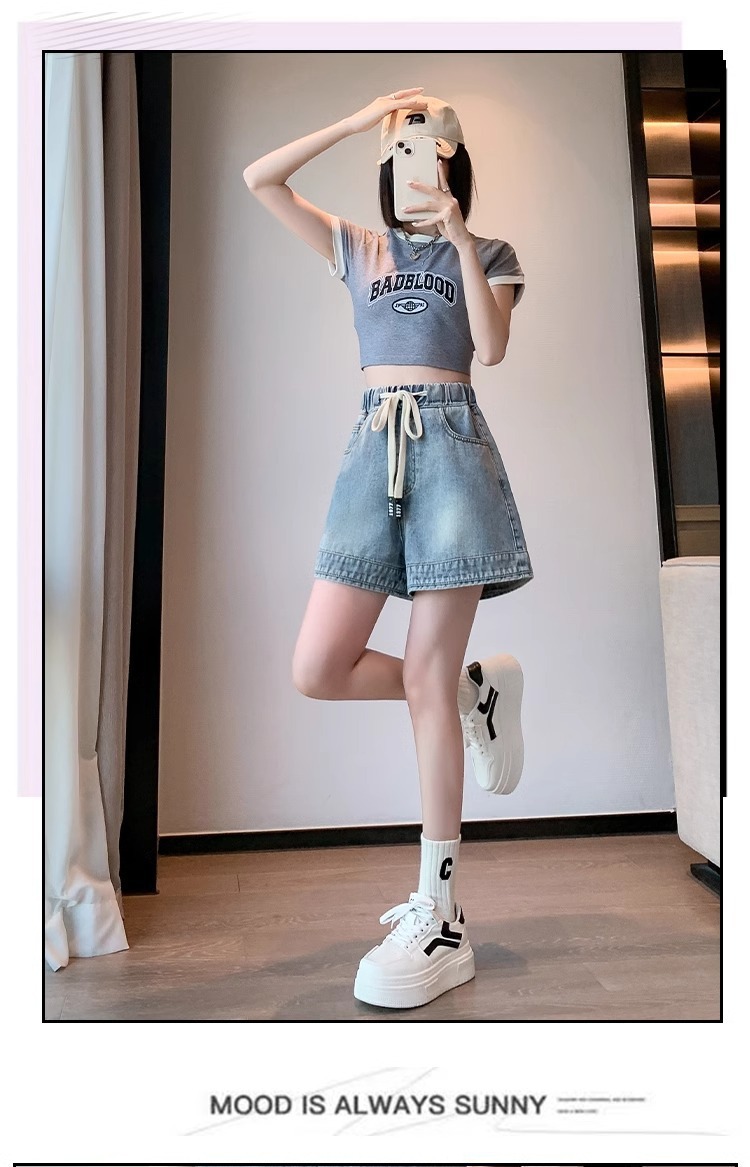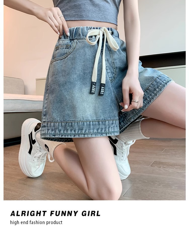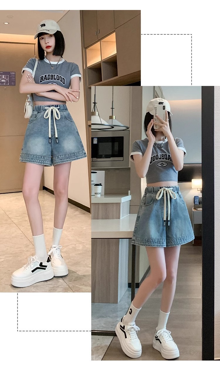 2024 최신 통통한 크기 탄성 허리 얇은 데님 반바지 여성의 느슨한 한국 스타일 높은 허리 넓은 다리 핫팬츠스토어 가기