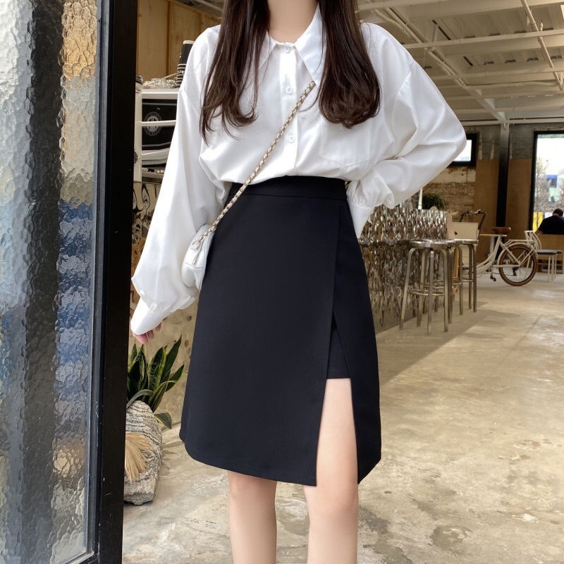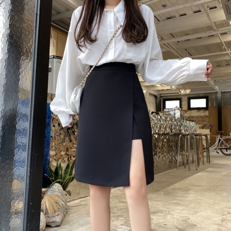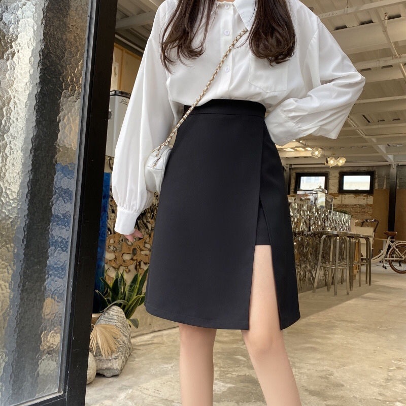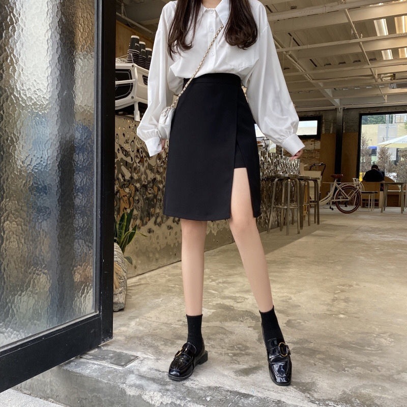 플러스 사이즈 분할 미디 통통녀 높은 허리 슬리밍 A-라인 불규칙한 디자인 틈새 랩 힙합 스커트 다목적 미디 스커트스토어 가기