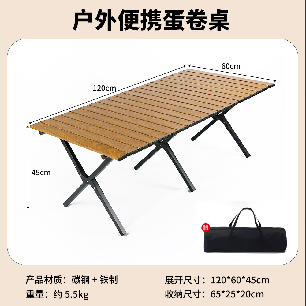 • 탄소강 우드 패턴 [X자 다리 긴 테이블] 120cm + 수납 가방