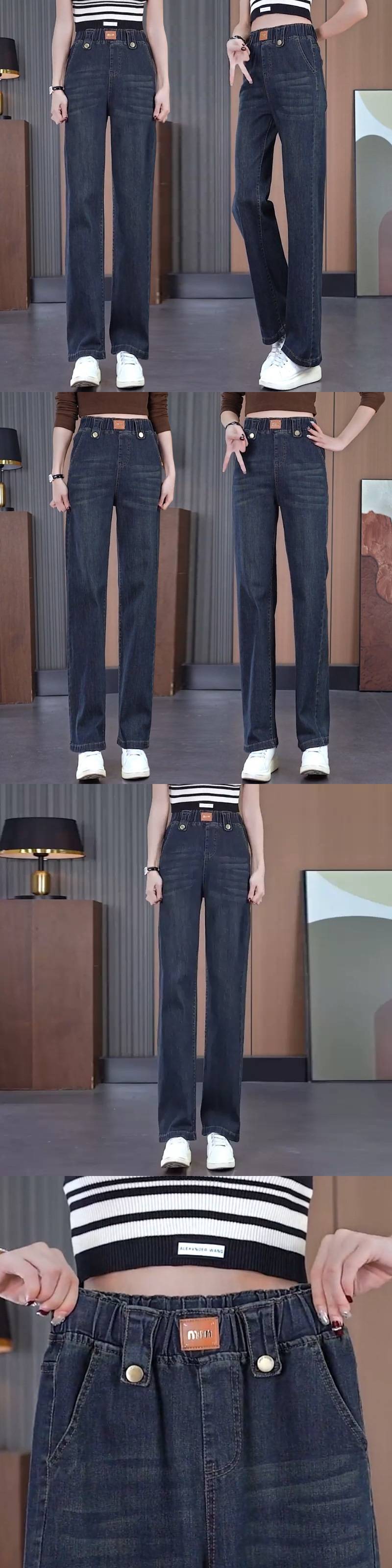 스트레이트 레그 청바지 여성용 2025 년 새 봄과 봄 높은 허리 슬림 핏 루즈 스타일리스트 고기 커버 넓은 다리 바지스토어 가기