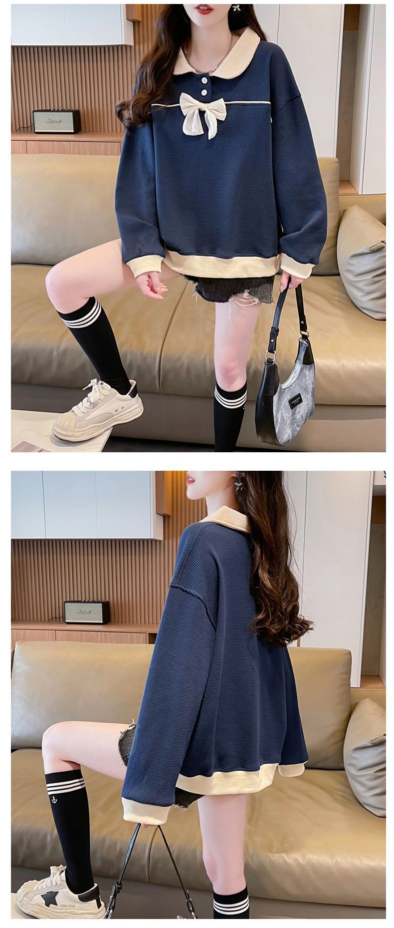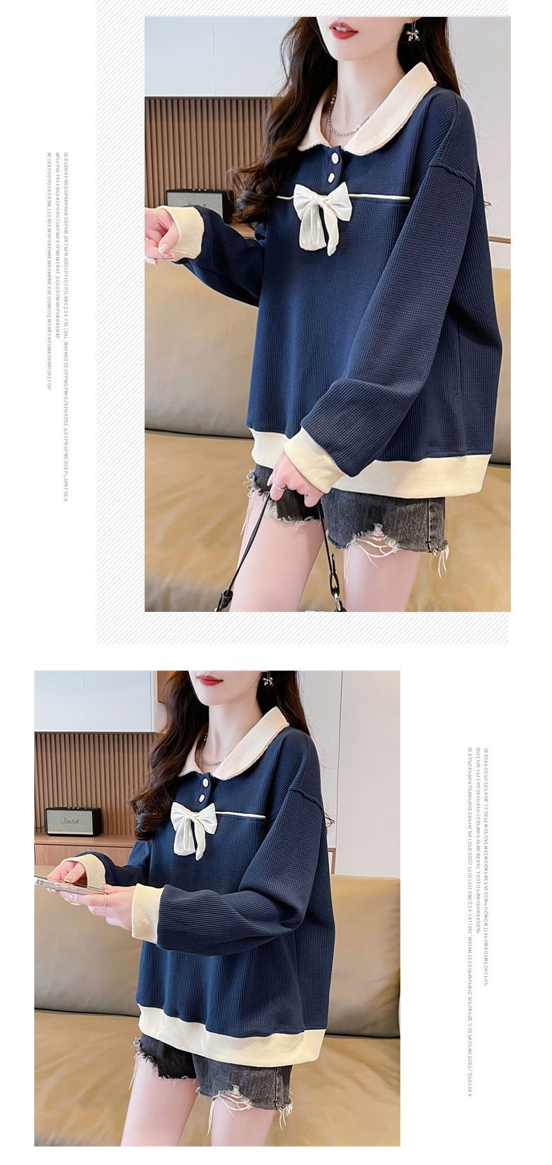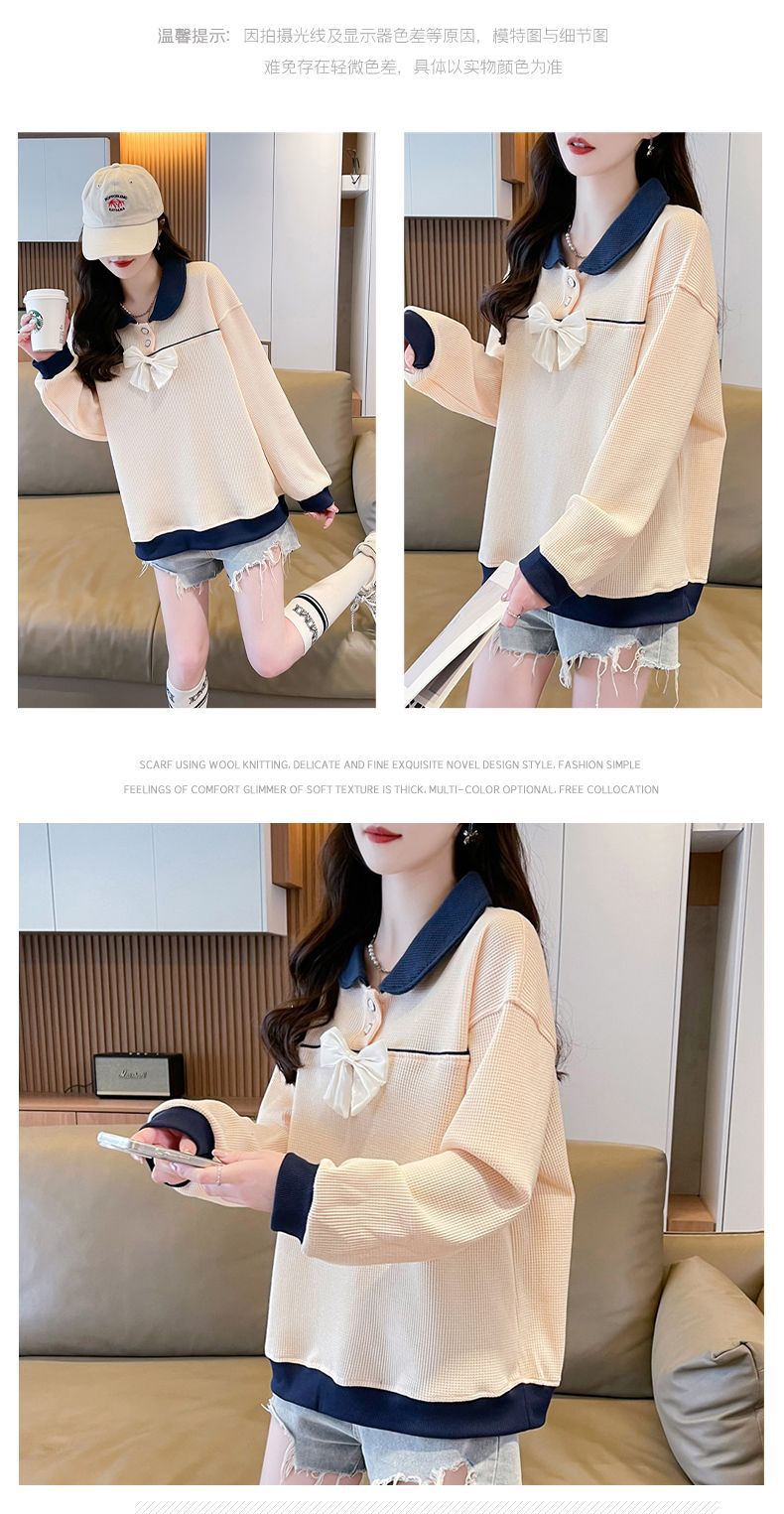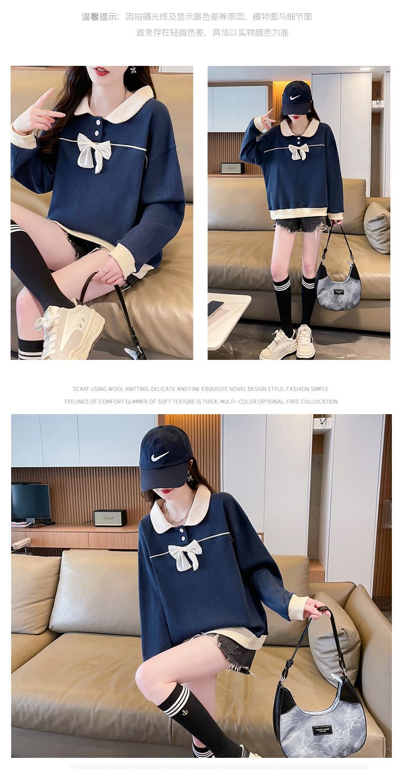 와플 땀 여성의 새로운 2025 폭발적인 패션 세련된 폴로 칼라 3 차원 활 장식 색상 매칭 탑스토어 가기