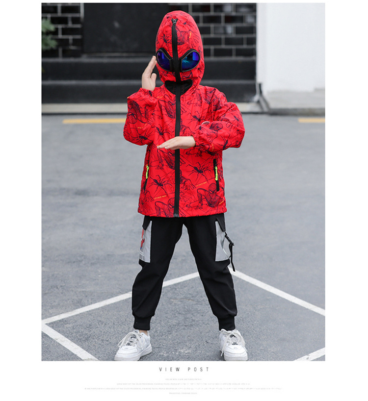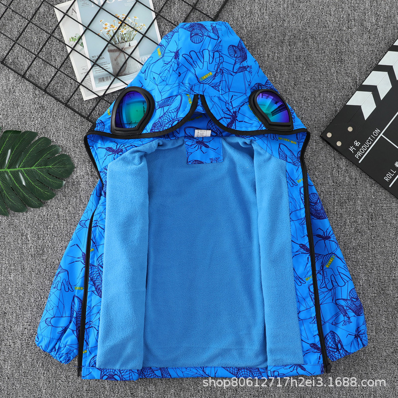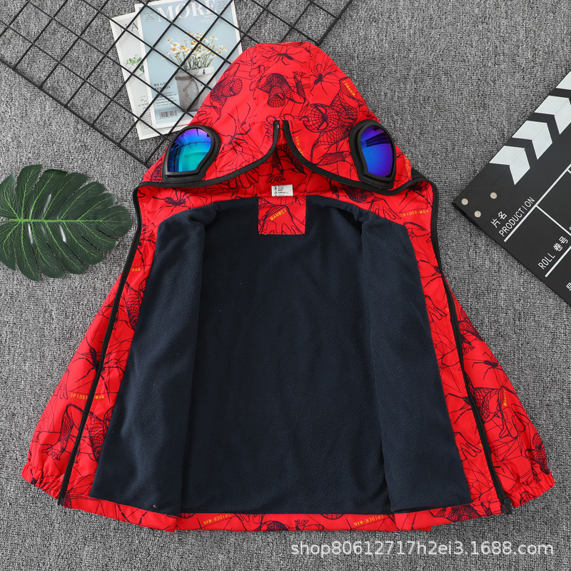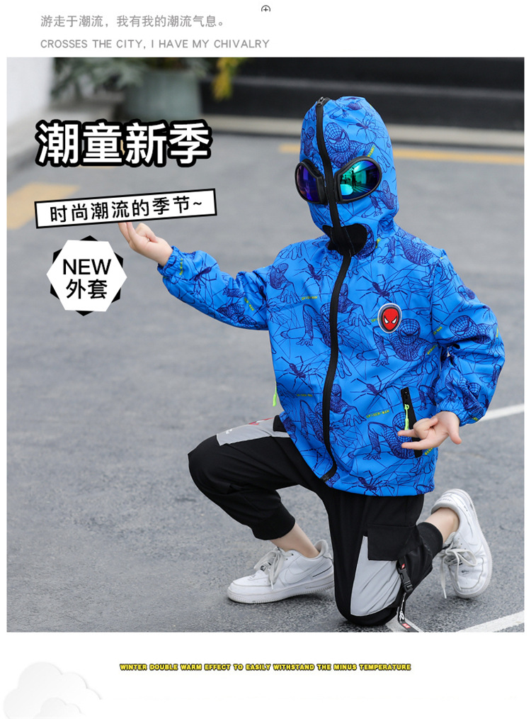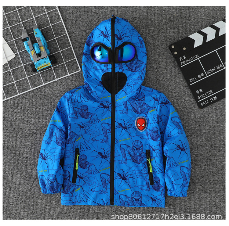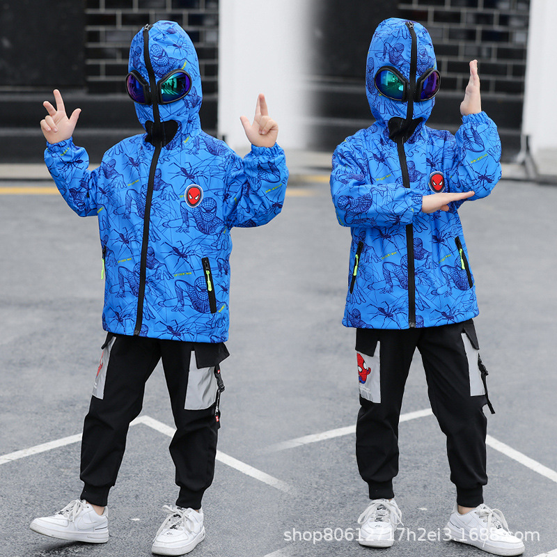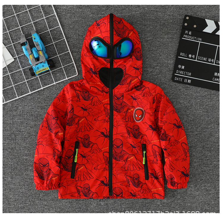 스파이더 맨 아동복 소년 봄과 가을 코트 2025 새로운 방풍 야외 보호 만화 마블 재킷 안경