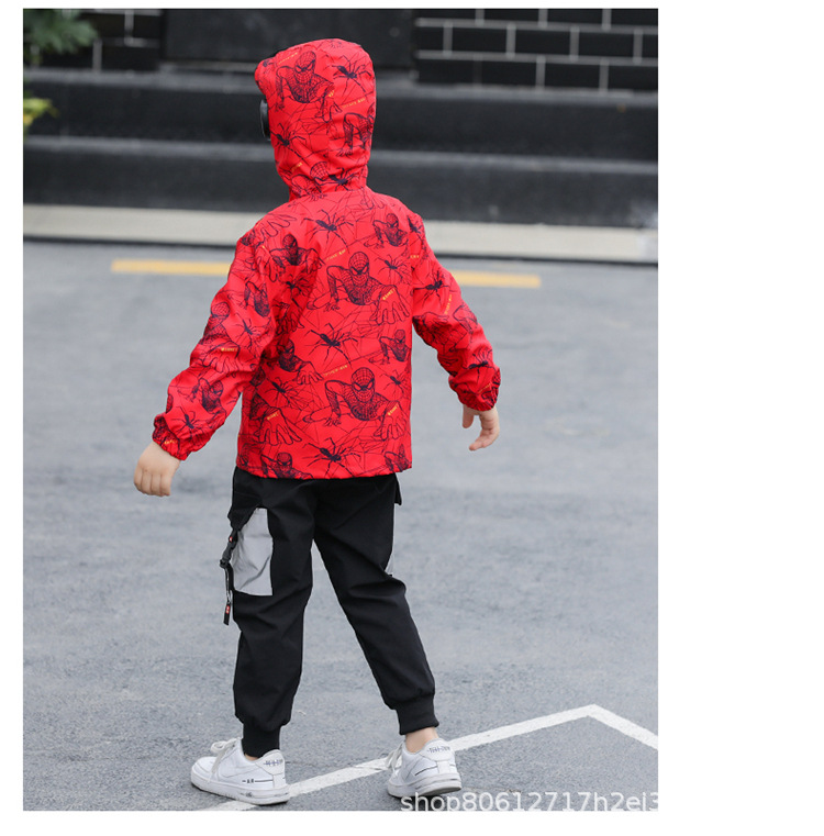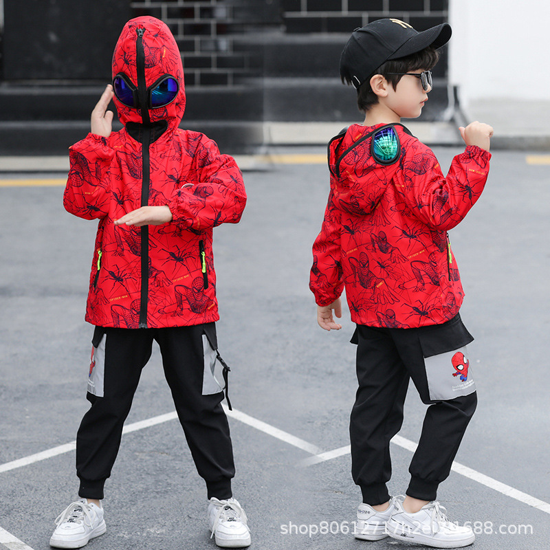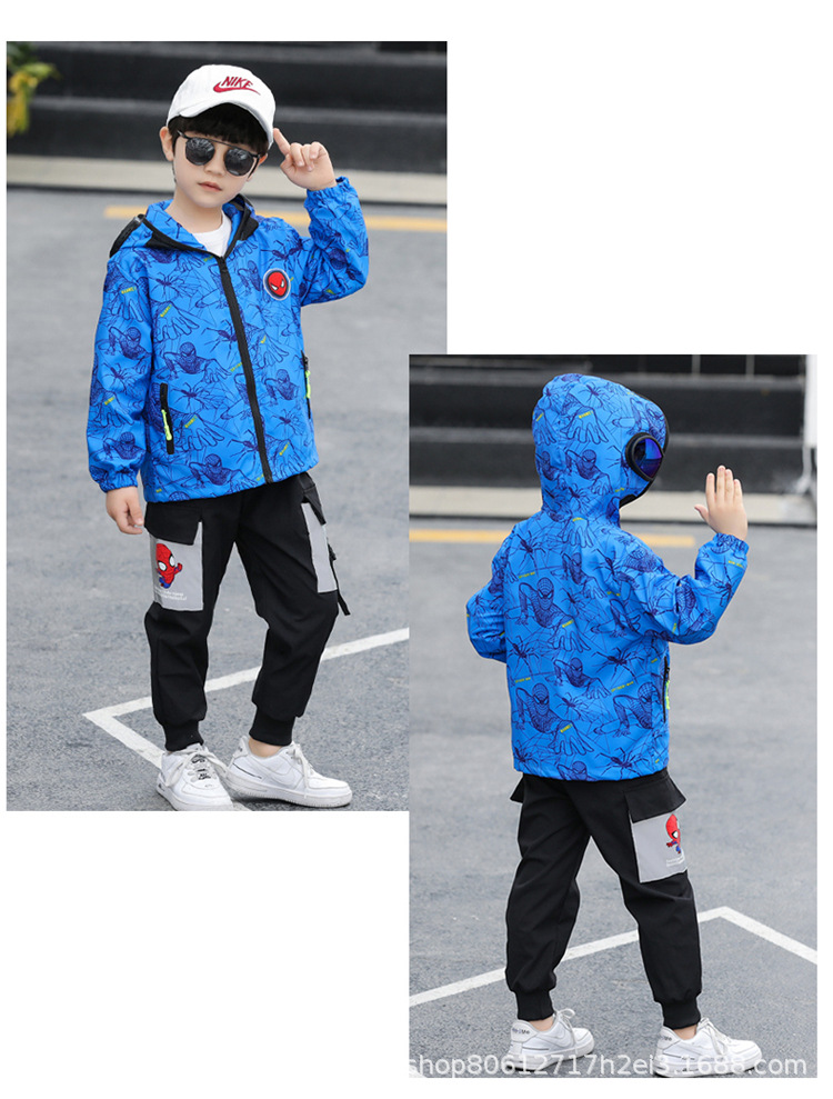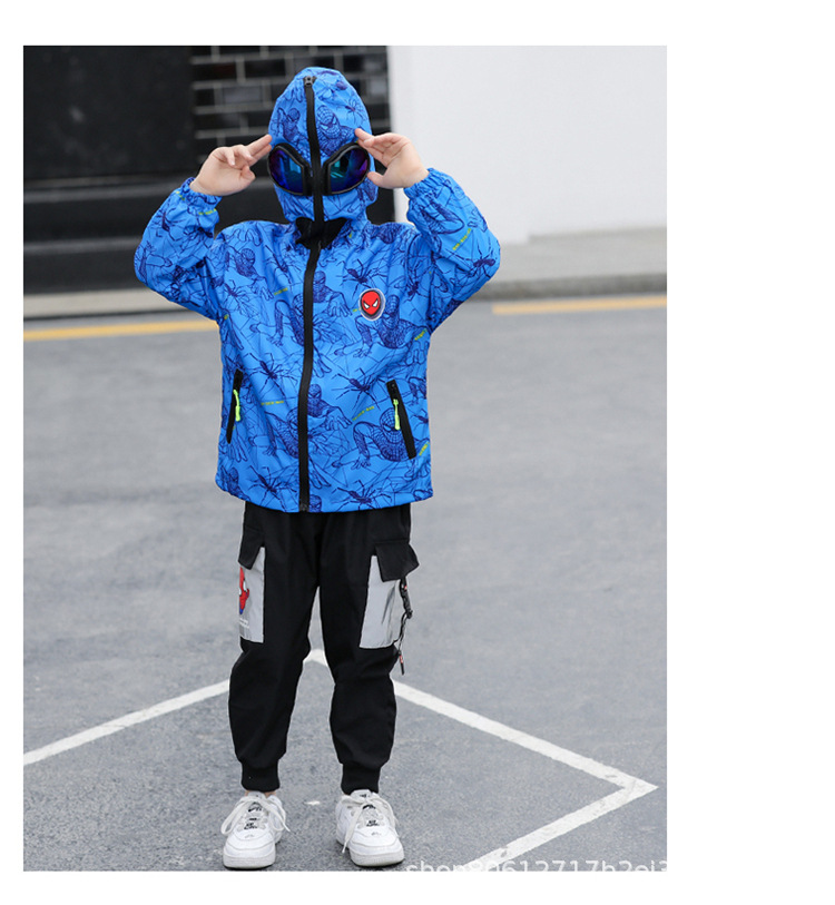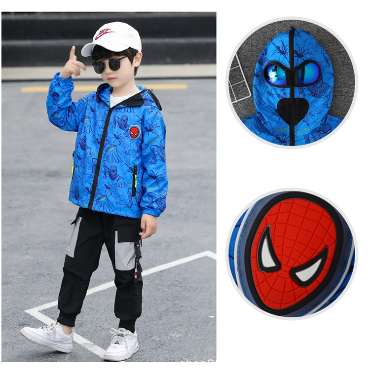 스파이더 맨 아동복 소년 봄과 가을 코트 2025 새로운 방풍 야외 보호 만화 마블 재킷 안경스토어 가기