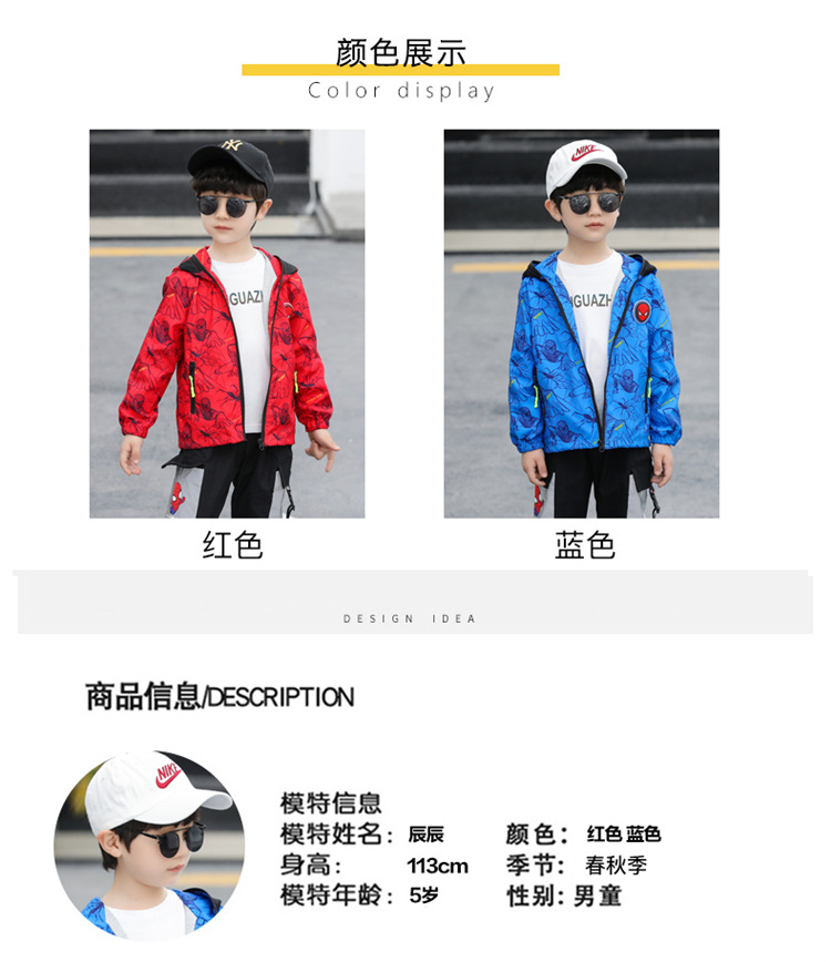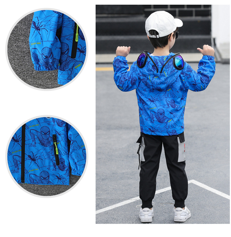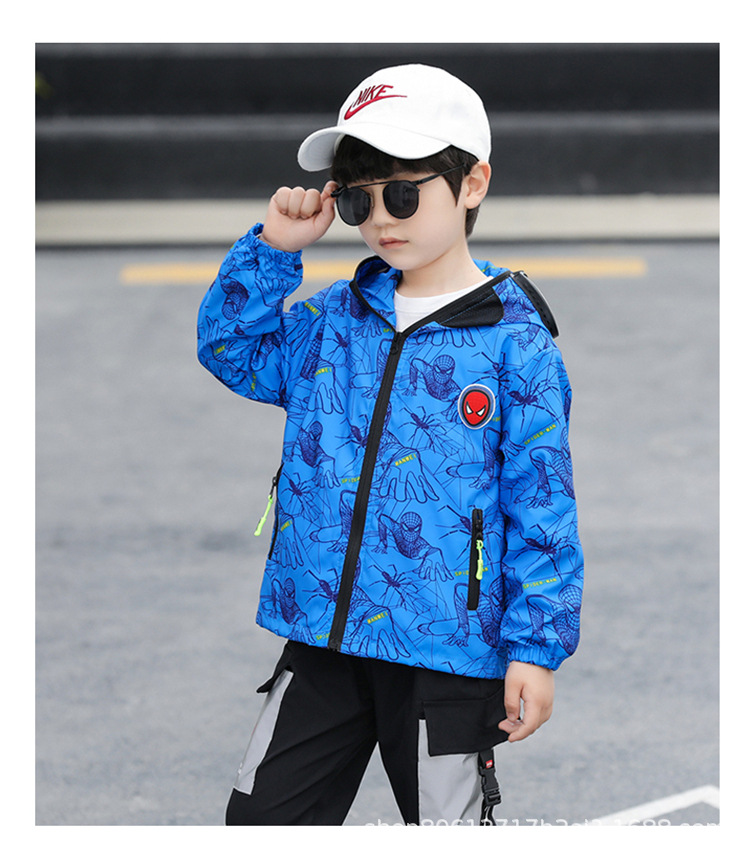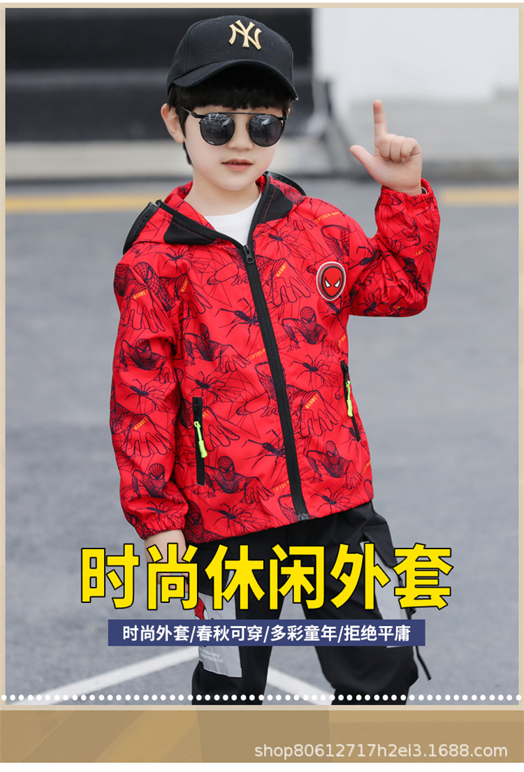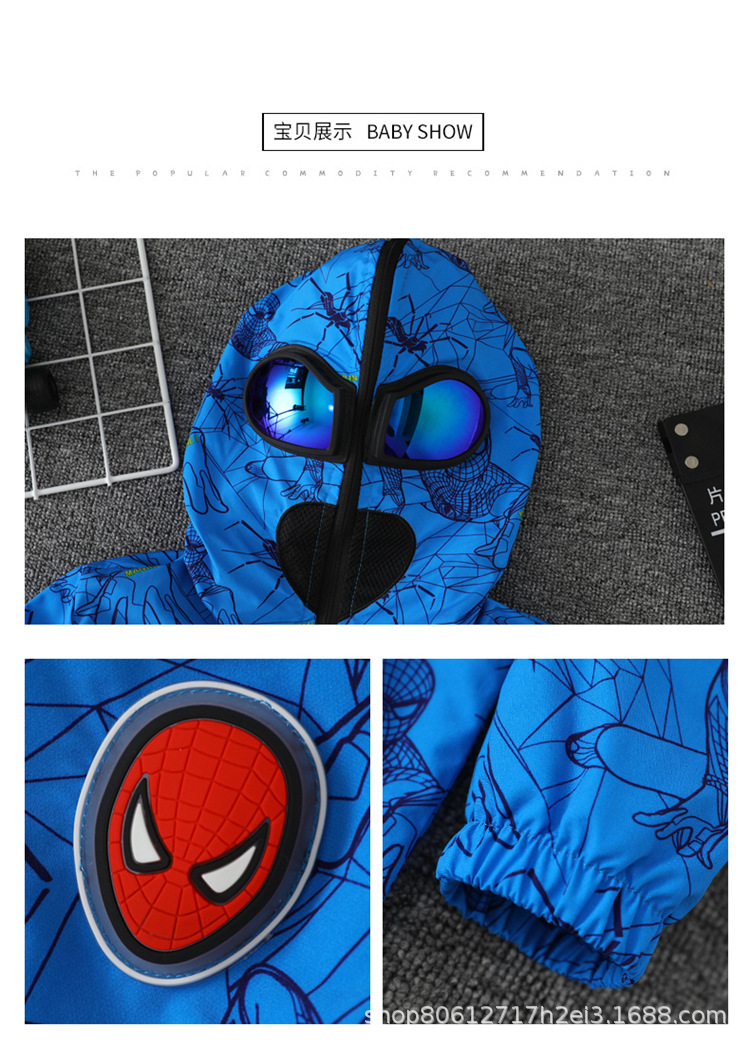 스파이더 맨 아동복 소년 봄과 가을 코트 2025 새로운 방풍 야외 보호 만화 마블 재킷 안경스토어 가기